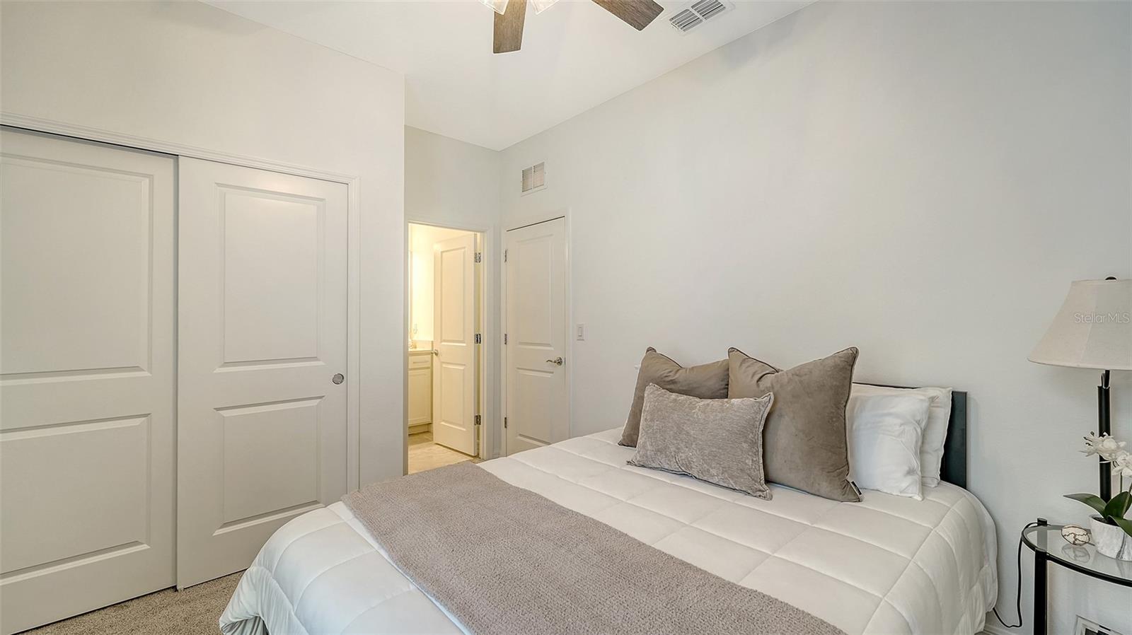 Welcome to effortless elegance in the heart of Ellenton! Nestled within a serene, boutique-style community of just 70 homes and free from CDD fees, this 2024 built single-story, SMART home capable floor plan pairs modern design with everyday comfort. From the moment you arrive, the well-manicured landscaping and inviting curb appeal make a lasting first impression. Step inside to find luxury vinyl plank flooring throughout the main living areas and office/flex room, setting the tone for style and durability. Designed for those who love to live and entertain, the open-concept layout flows seamlessly into a chef-inspired kitchen featuring sleek quartz countertops, a stylish tile backsplash, stainless steel appliances, and a spacious center island with bar seating. Whether you're hosting a dinner party or enjoying a quiet night in, this space truly delivers. Offering three spacious bedrooms plus an office/flex room, this home easily adapts to your lifestyle. The luxurious primary suite includes a generous walk-in closet and a spa-like ensuite, while each of the additional bedrooms enjoys its own private bathroom—perfect for guests or multigenerational living. But the true showstopper? Two sets of sliding doors leading to your private backyard retreat—one of the few homes in the community with peaceful water view and a fenced yard. Whether you're sipping morning coffee or winding down at sunset, this is your personal slice of paradise. This home strikes the perfect balance between modern sophistication and relaxed Florida living—all in a tranquil, low-maintenance neighborhood. Don’t miss your chance to experience this stunning home in person!