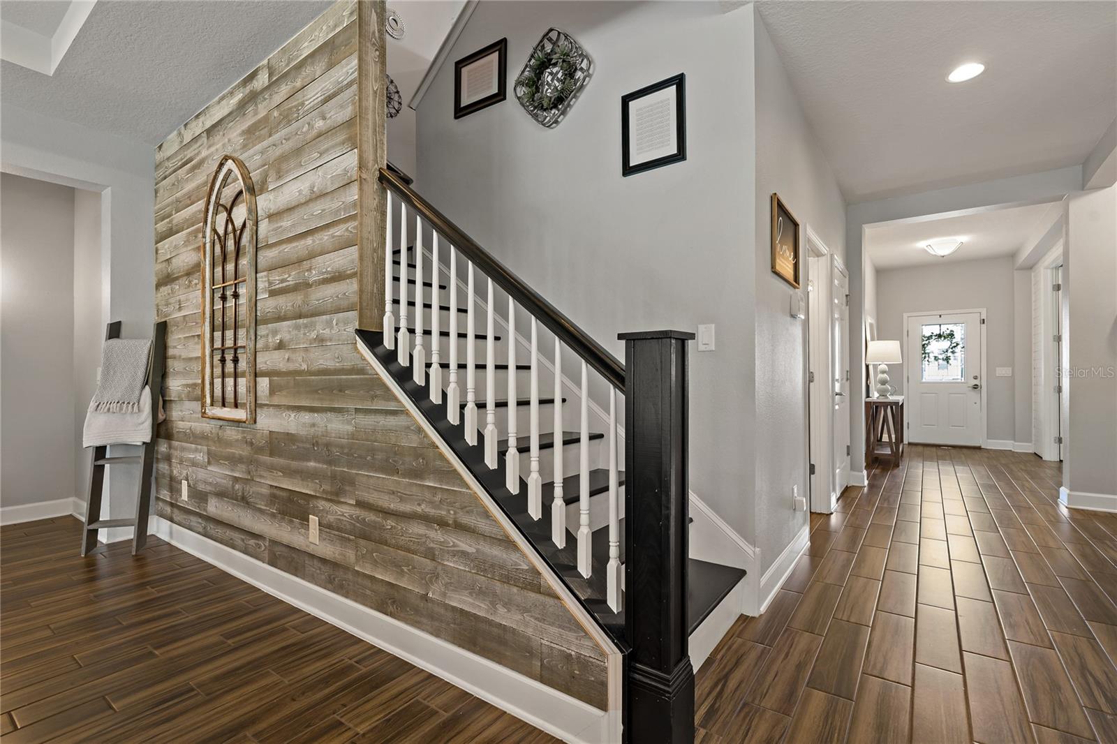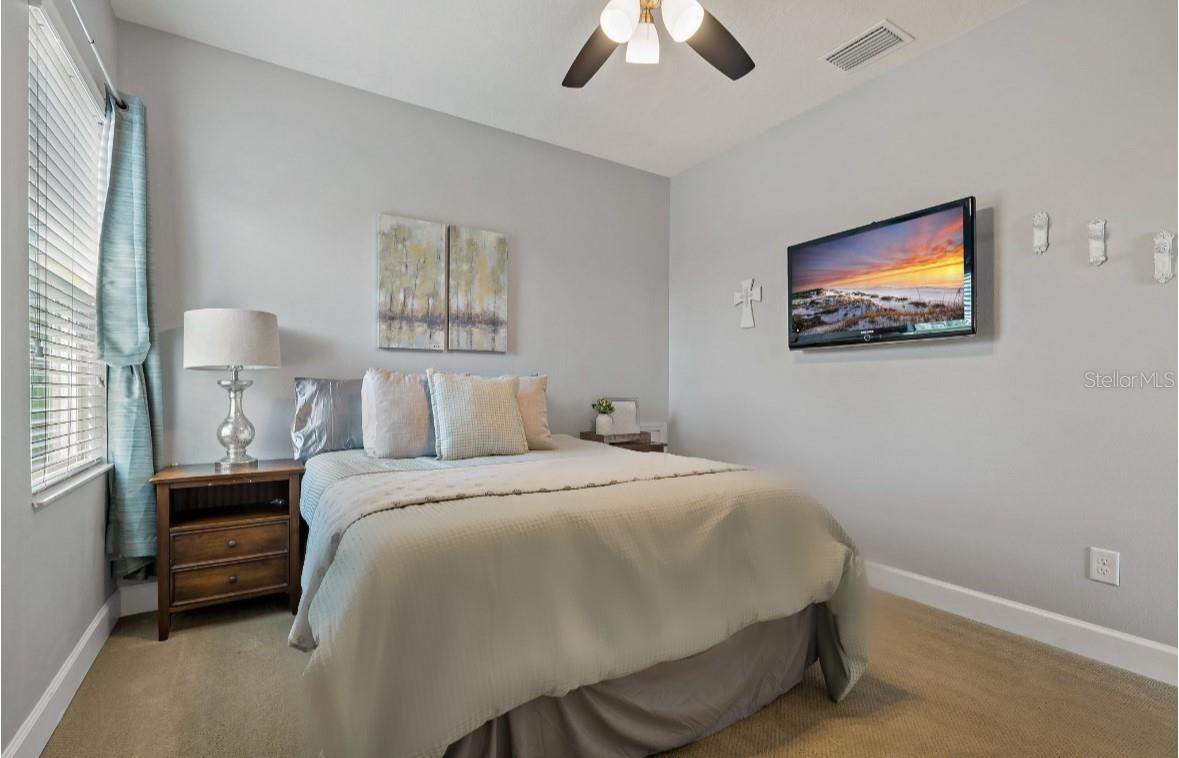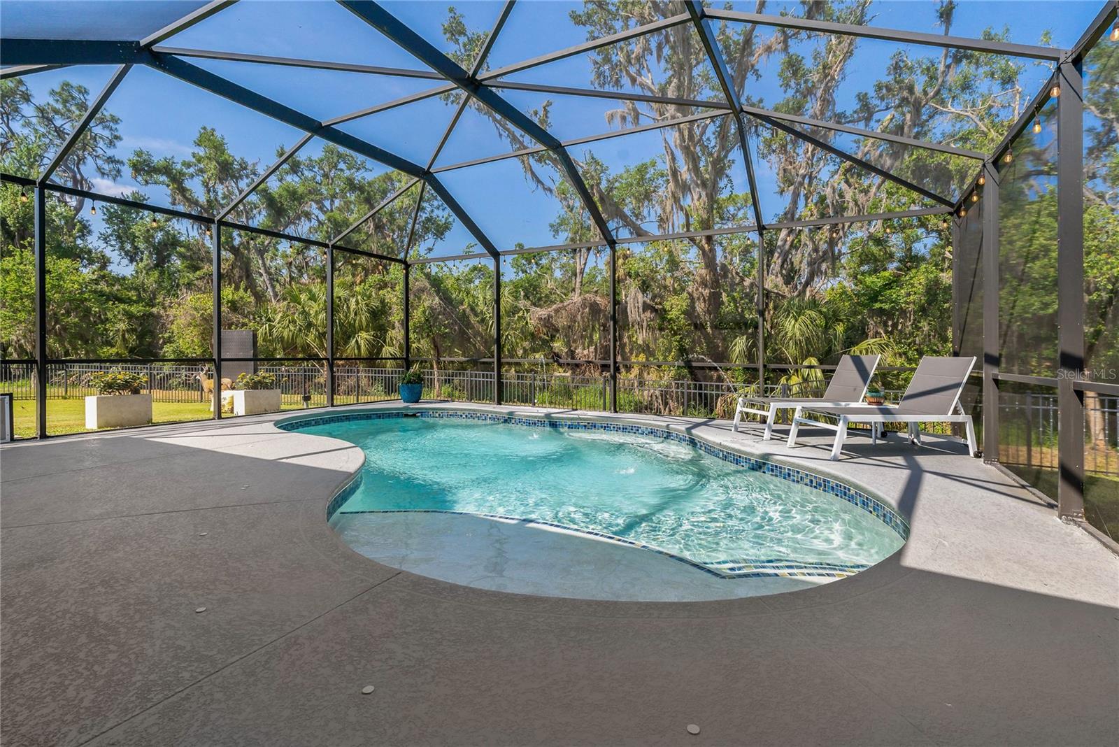 Welcome to this gorgeous two-story home offering 5 bedrooms and 3.5 bathrooms, nestled in the exclusive, gated community of Oakleaf Hammock. Meticulously maintained and filled with high-end upgrades, this home seamlessly blends comfort with elegance. The great voluminous room overlooks a crystal-clear private pool, creating a serene and inviting atmosphere. Enjoy endless relaxation on the extended screened lanai, while the oversized fenced backyard—backing up to tranquil woods—provides ample space for recreation and added privacy. The spacious main-floor primary suite features an expansive walk-in closet, dual sinks, a luxurious soaking tub, and a separate shower. Ceramic tile flooring throughout the first floor adds a touch of modern sophistication. The chef’s kitchen is a true highlight, complete with an oversized island, solid surface counters, 42" wood cabinetry, a walk-in pantry, stainless steel appliances, and a gas range—perfect for creating gourmet meals. Close to dinning, recreation, shopping, Hwy access, and stunning beaches. This exceptional home is truly a must-see. This community is a hidden gem with amenities like an expansive lake to spend the day relaxing and fishing.