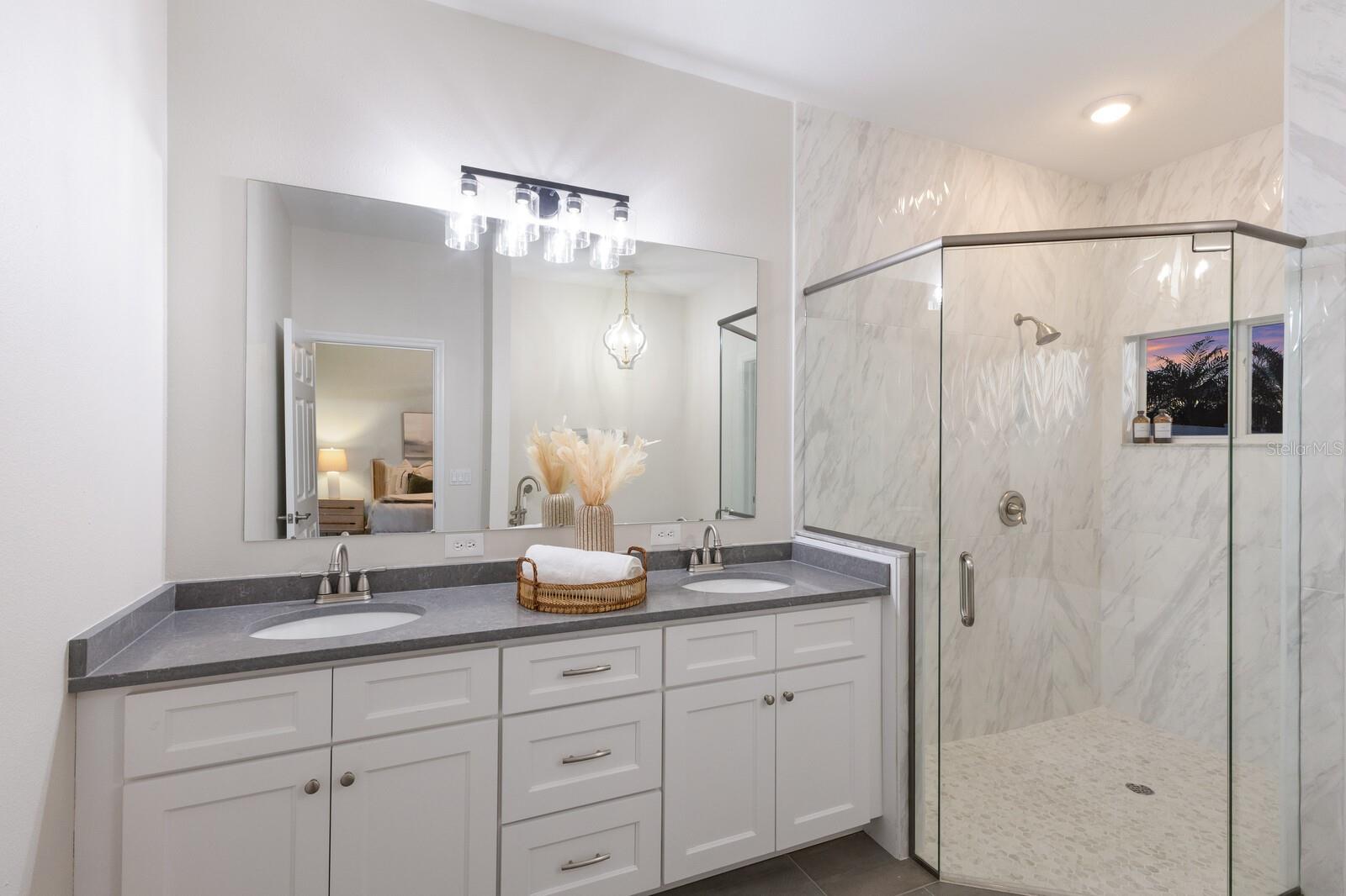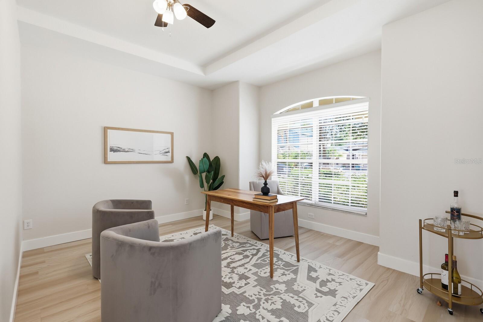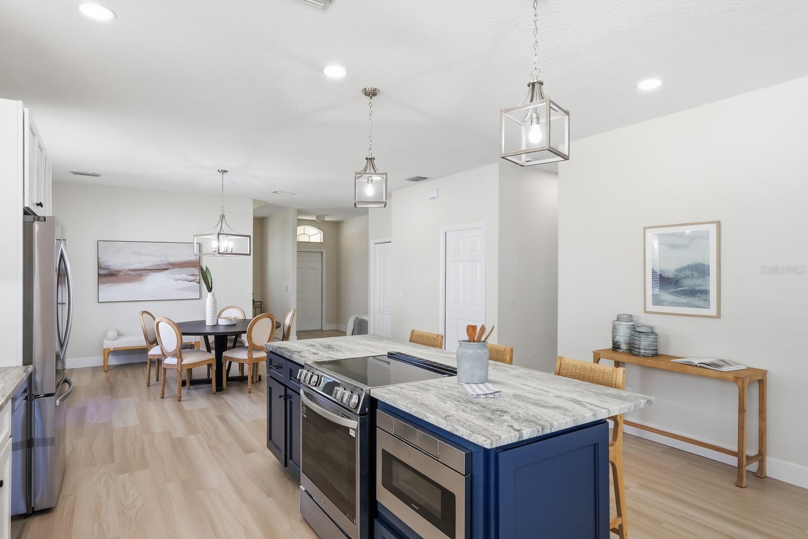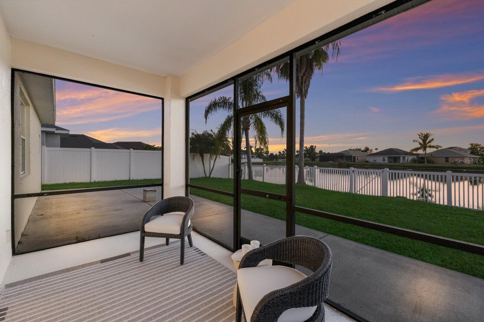 WELCOME to this beautifully REMODELED 4 bedroom, 2.5 bathroom, 2 car garage home with 2,207 sq. ft. located in the desirable community of Covered Bridge Estates!!! From the moment you step inside, you’ll appreciate the open concept design and stunning upgrades throughout. At the front of the home, a flex space/office offers the perfect spot for working from home, a hobby area, or even a home gym. The heart of the home is the MODERN, fully remodeled kitchen featuring an abundance of cabinets, a STYLISH tile backsplash, LEATHERED granite countertops, a large island with a built-in stove for entertaining, stainless steel appliances, and a wine refrigerator. A spacious dining area is conveniently located nearby for casual meals or more formal gatherings. The inviting living room offers plenty of natural light and sliders that lead to the screened in lanai, where you can relax and take in the PEACEFUL pond and backyard views. The primary suite is a true RETREAT, featuring an ENSUITE bathroom with dual sinks, a modern garden tub, and a walk-in tiled glass shower. The additional bedrooms are generously sized and share a full bathroom with dual sinks and a tub/shower combo. The laundry room is equipped with modern, stackable washer and dryer units for added convenience. Step outside to your PRIVATE FENCED in backyard, beautifully landscaped with palm trees, offering a serene setting to enjoy the spectacular sunsets over the pond. This home is truly move-in ready and has been upgraded with a NEW ROOF (2024), NEW LUXURY VINYL FLOORING throughout, fresh interior PAINT, and all NEW APPLIANCES. Residents of Covered Bridge Estates enjoy LOW HOA fees and access to fantastic amenities, including a community pool, fitness center, playground, and more, making it the perfect place for all lifestyles. Conveniently located near the Ellenton Premium Outlets, shopping, dining, and with easy access to I-75, this home provides an easy commute to Sarasota, Bradenton, St. Pete, Tampa and the FAMOUS GULF BEACHES!! Don't wait to make this your home and begin your FLORIDA Lifestyle!