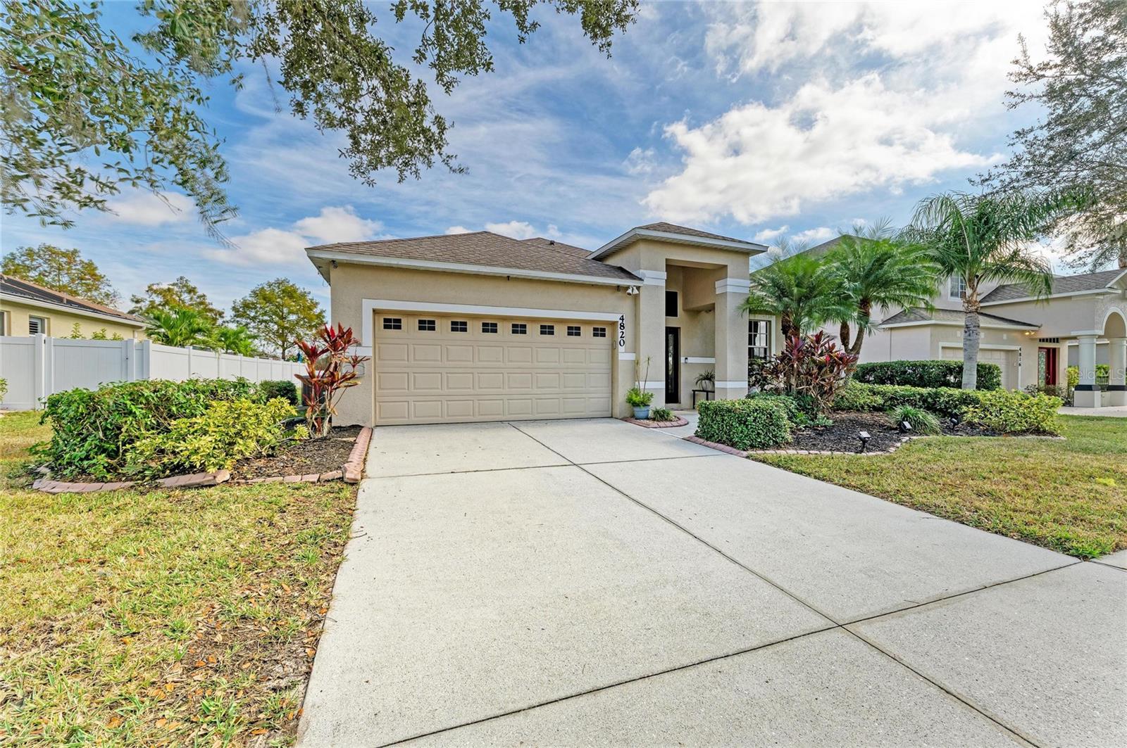 This beautifully maintained 3-bedroom + den, 2-bath POOL home is spotless and truly move-in ready! Step inside to a flexible, open layout with oversized tile throughout the main living areas—perfect for a formal living/dining combo, a spacious great room, or even a game room. You’ll also love the additional living room that opens to the kitchen, giving you endless options for everyday living and entertaining. With over 2,000 sq ft of heated space, this home offers room to spread out plus an expansive screened-in lanai with a heated pool and spa. The updated kitchen is a delight with stylish cabinetry, Corian countertops, stainless steel appliances, and fresh, muted tones that create a light and airy atmosphere. The generous primary suite features a stunning ensuite bath with dual vanities, a soaking tub, and a separate shower—complete with updated counters and cabinetry. Additional perks include ceiling fans throughout, a spacious indoor laundry room, a NEWER roof, and a newer HVAC system. Located in highly desirable Covered Bridge Estates, you’ll enjoy fantastic community amenities such as a pool, tennis courts, clubhouse, and playground. Low HOA fees, no CDD, and on-site RV/boat parking too. All just 5 minutes from Ellenton Premium Outlets, great dining, the public boat ramp, and convenient I-75 access for easy travel to Sarasota, Tampa, and St. Pete.
