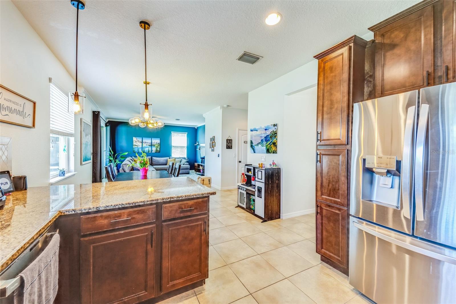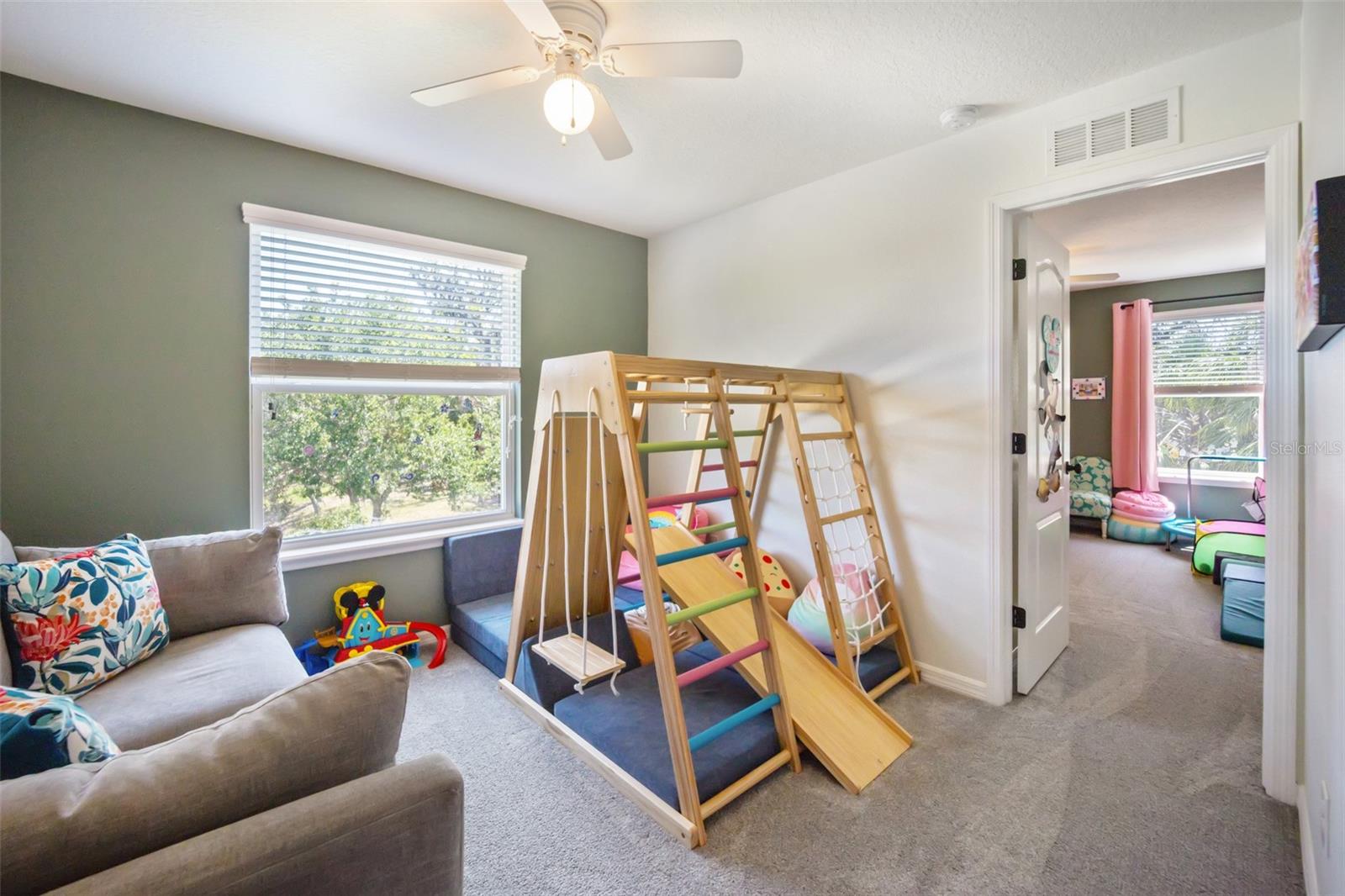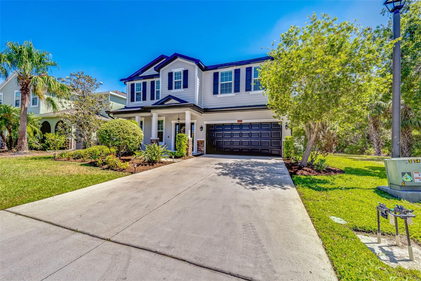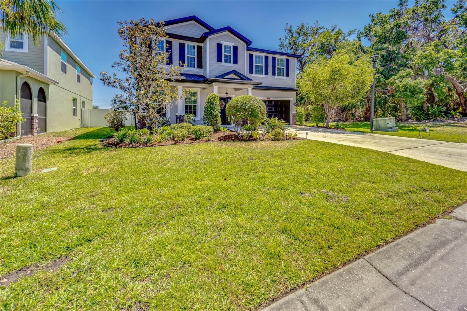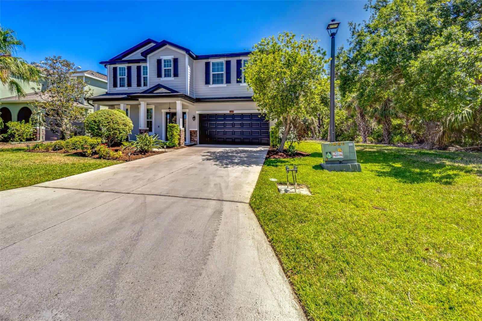 Nestled in the serene and desirable Covered Bridge Estates community in Ellenton, FL, this charming two-story home at 5703 New Paris Way offers a perfect blend of comfort and style. With no neighbors on the right, enjoy a peaceful wooded view. Built with attention to detail, this spacious residence features four well-sized bedrooms and two and a half bathrooms, making it ideal for family living. The open-concept floor plan seamlessly connects the living, dining, and kitchen areas, creating an inviting atmosphere for both entertaining and everyday living. The kitchen is equipped with modern appliances, stone countertops, and ample cabinetry, making it a chef’s delight. Upstairs, you’ll find all four bedrooms and a conveniently located laundry room. The primary suite offers a tranquil retreat with a generous bedroom, office, walk-in closet, and an en suite bathroom with dual sinks, a soaking tub, and a separate shower. Outside, the well-maintained large fenced-in yard is perfect for relaxation with its serene pond and wooded view, and screened-in lanai. Upgrades to the home include a new AC in 2024, new water heater (2024), new roof (2023), new washing machine (2025), interior paint (2022), exterior paint (2023), renovated half bath (2022), carpet replacement (2022), new fridge (2022) updated interior and exterior light fixtures and ceiling fans (2023). Community amenities include a heated saltwater pool, clubhouse, fitness center, playground, and tennis courts, which enhance the living experience. With easy access to major roads, shopping, and dining, this home provides both convenience and comfort in a peaceful setting. Whether you're enjoying the local amenities or unwinding in your private space, this home is the perfect place to call your own.