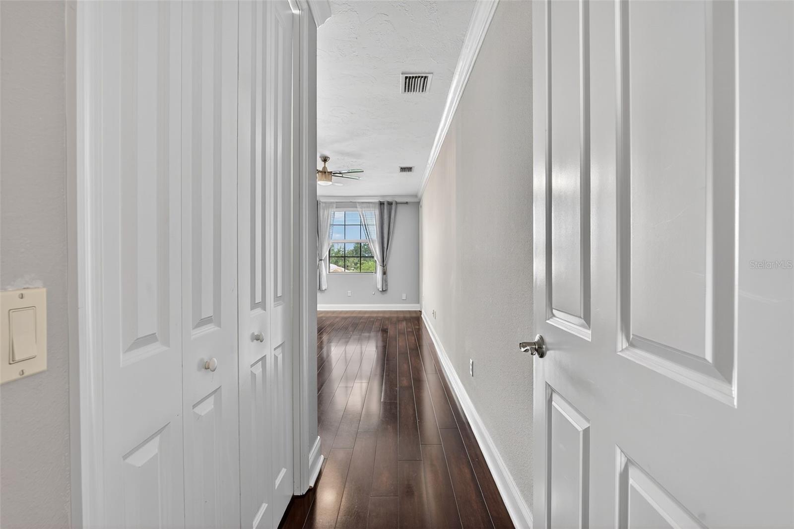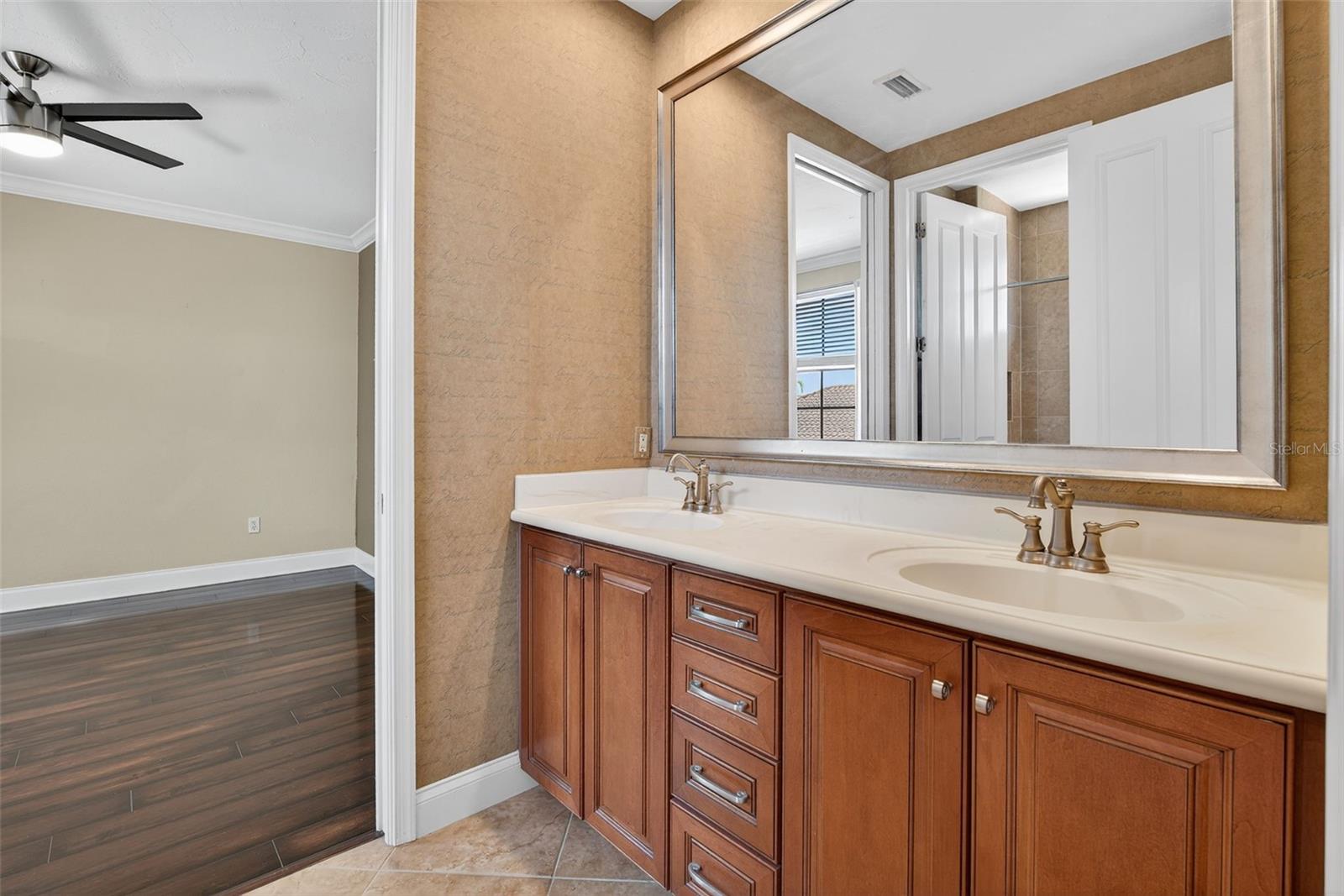 PRICE IMPROVEMENT!! SELLER OFFERING 5K BUYER CONCESSION!! Welcome to Bougainvillea Place—a gated, Mediterranean-inspired community where luxury meets low-maintenance living. This stunning former model home offers over 2,400 square feet of beautifully upgraded space, including 4 bedrooms and 3.5 baths, all designed for comfort, privacy, and effortless entertaining. From the moment you step inside, soaring ceilings, elegant tile flooring, and upgraded finishes set the tone for a home that’s anything but ordinary. Thoughtfully designed with impact windows, central vacuum, whole-house surround sound, and custom lighting and plumbing fixtures, no detail was overlooked. The gourmet kitchen features granite countertops, maple cabinetry with roll-out shelves, under-cabinet lighting, and stainless steel appliances (less than a year old). The spacious first-floor primary suite offers convenience and retreat, while upstairs you'll find generously sized guest bedrooms—each with its own attached bathroom for ultimate privacy. Relax on your private screened-in patio and enjoy tranquil lake views, or take a short stroll (just 120 feet!) to the heated community pool with private cabanas, fitness center, dog park, and community garden. Additional upgrades include a barrel tile roof, paver driveway and walkways, modern HVAC system with transferable 10-year warranty, and metal stud construction. Located just minutes from I-75 and within walking distance to the Ellenton Outlet Mall, restaurants, and shops, this home offers exceptional value and an unbeatable location. If you're looking for move-in ready elegance in a gated, maintenance-free community—this is it.