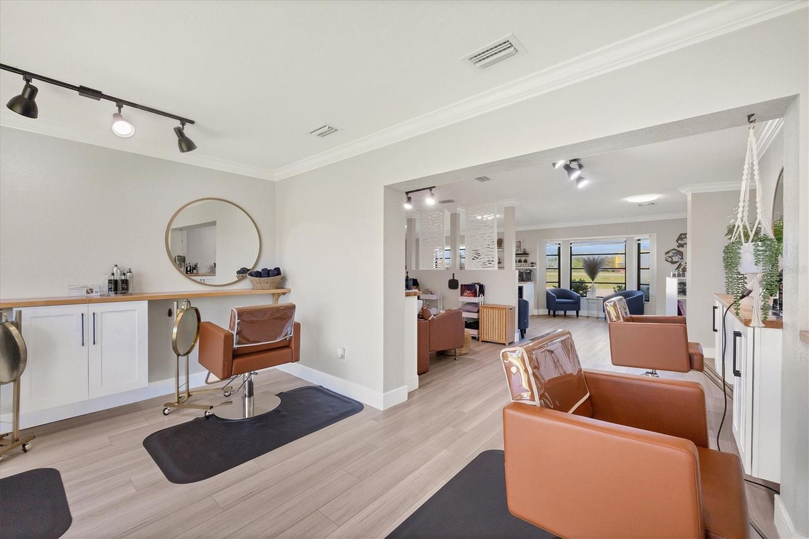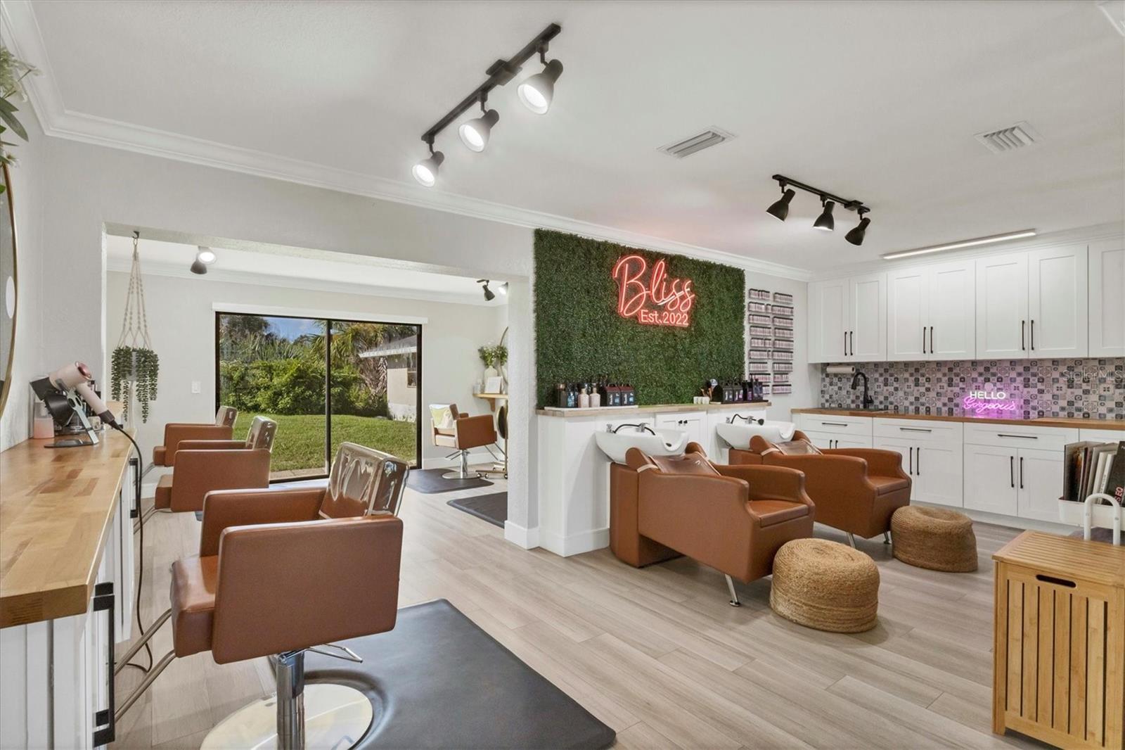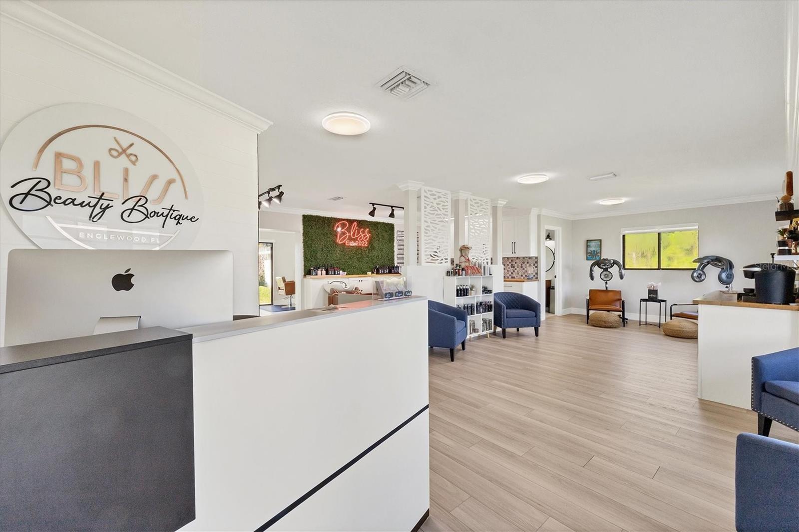 Unlock the potential of this fully renovated commercial building, currently configured as a modern office but easily adaptable for a hair salon or other service-based business. Located directly on high-traffic SR-776, this property offers exceptional visibility, accessibility, and convenience for clients and staff alike. The interior features a sleek, contemporary design with high-quality finishes throughout. The layout includes multiple open work areas (formerly 8 styling stations), three plumbed wash areas, a spacious reception desk, and a welcoming lounge or waiting area—making it perfectly suited for professional services, wellness, or beauty-based businesses. On-site parking ensures ease of access for visitors and staff. With a history of successful operation as a salon, the space retains all infrastructure needed for a seamless salon setup, yet remains flexible for other commercial uses. Whether you're expanding your office footprint or launching a new venture in the beauty industry, this turnkey property offers unmatched versatility and location advantages.