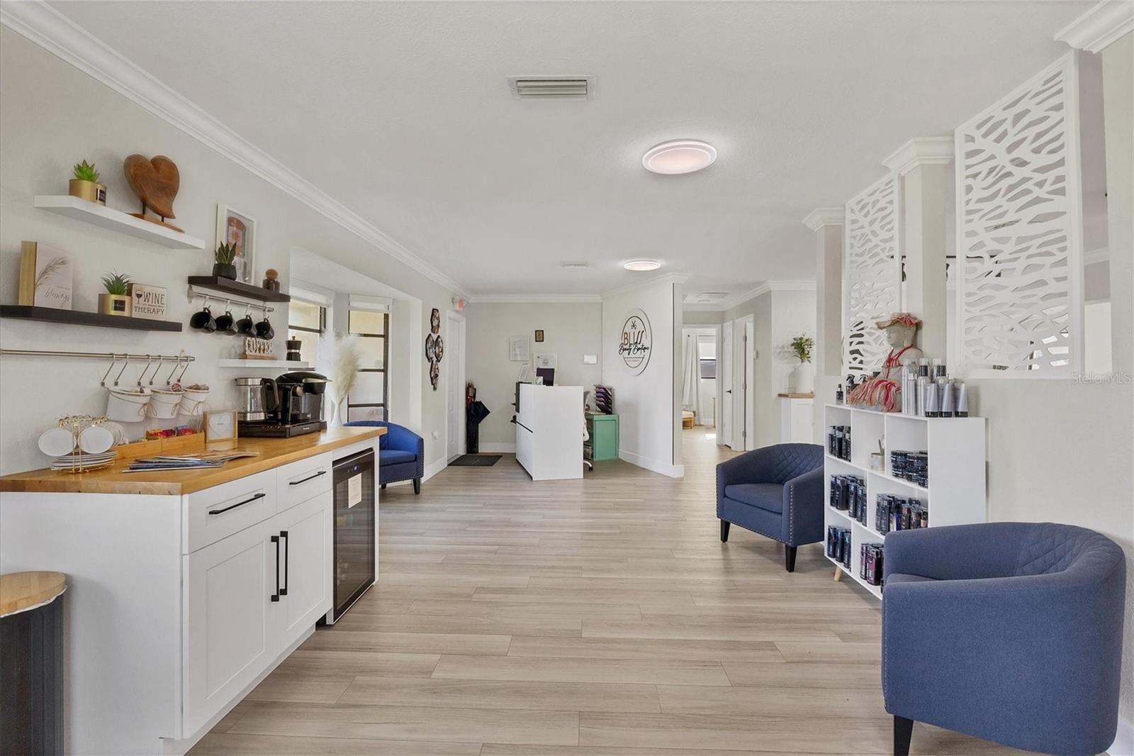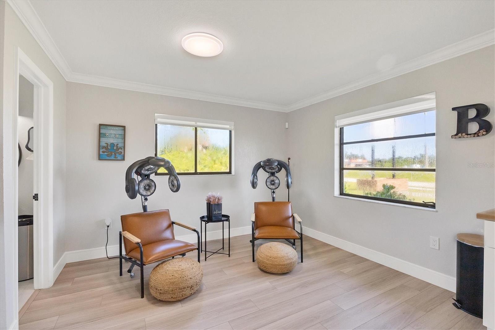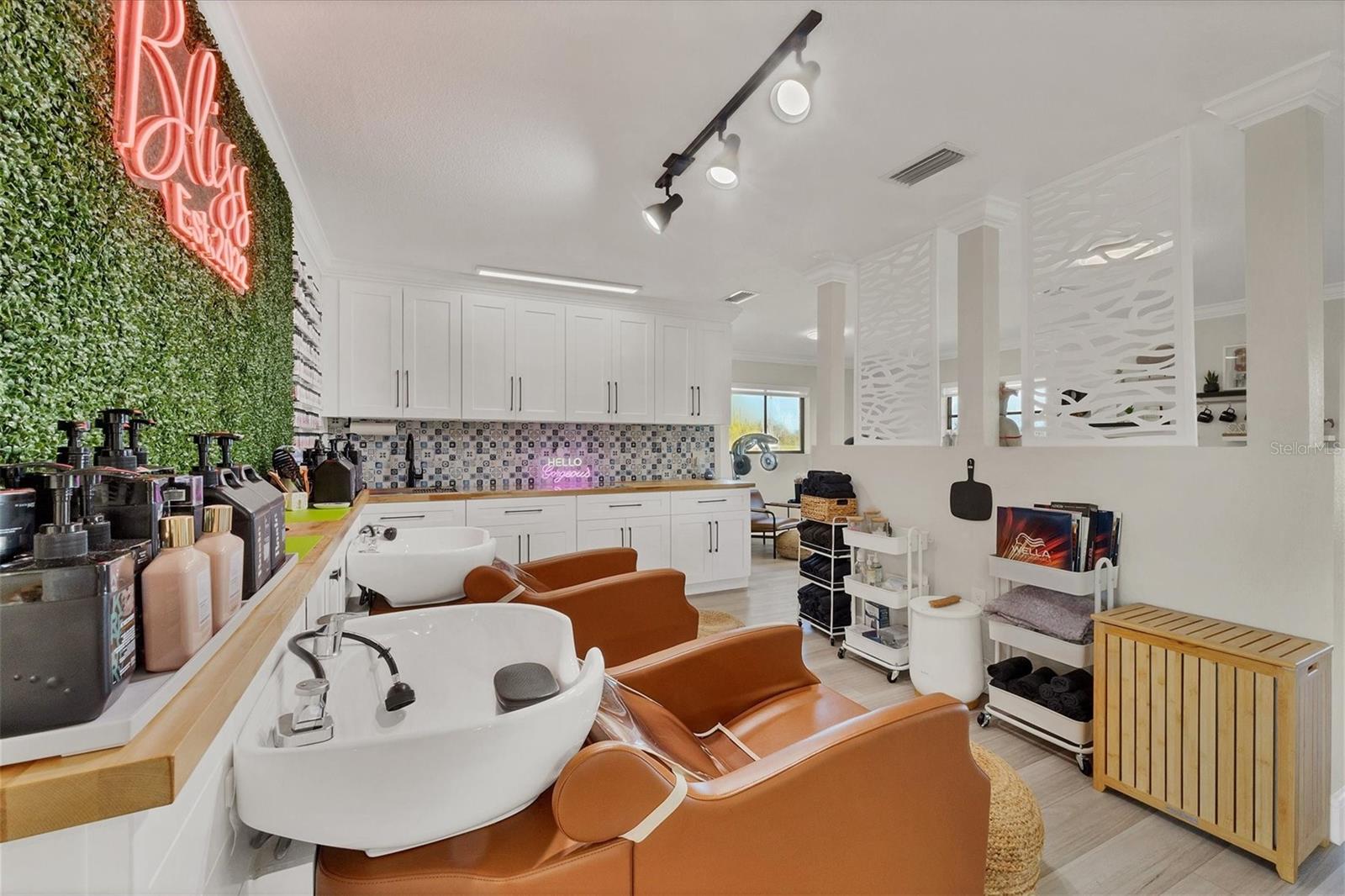 Unlock the potential of this fully renovated commercial building, currently configured as a modern office but easily adaptable for a hair salon or other service-based business. Located directly on high-traffic SR-776, this property offers exceptional visibility, accessibility, and convenience for clients and staff alike. The interior features a sleek, contemporary design with high-quality finishes throughout. The layout includes multiple open work areas (formerly 8 styling stations), three plumbed wash areas, a spacious reception desk, and a welcoming lounge or waiting area—making it perfectly suited for professional services, wellness, or beauty-based businesses. On-site parking ensures ease of access for visitors and staff. With a history of successful operation as a salon, the space retains all infrastructure needed for a seamless salon setup, yet remains flexible for other commercial uses. Whether you're expanding your office footprint or launching a new venture in the beauty industry, this turnkey property offers unmatched versatility and location advantages.