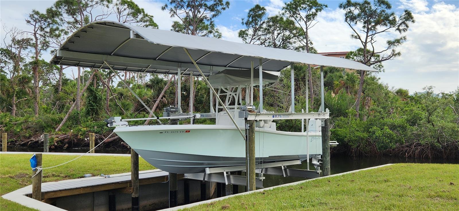 Seller will entertain any offer. Time to snag your waterfront dream property just opposite Stump Pass and the Gulf of Mexico in the fishing, boating paradise of sunny SW Florida. This extraordinary nearly half-acre, newly cleared lot is ideally located just two lots away from the Intercoastal Waterway. This area is renowned for its world-class Tarpon fishing, recreational boating, sunny beaches and golf courses galore. The jewels of this property are its 2022 concrete seawall lining the water's edge, complete with a private 2023 boat-slip, 16,000 pound boat lift and 2023 canopy. It's a boater's dream come true, to jump in the boat every day and explore the waterways. Build your dream house, and you'll find yourself effortlessly balancing days of adventure on the water with evenings of culinary delights and relaxation. This prime location is just minutes from the Gulf of Mexico's exquisite beaches and the renowned town of Boca Grande for restaurants or designer shopping. Whether you want to soak up the sun, swim in the crystal-clear waters, or take a leisurely stroll along the coastline, your enjoyment here will be endless. Make this slice of paradise yours and start living the Florida dream today!