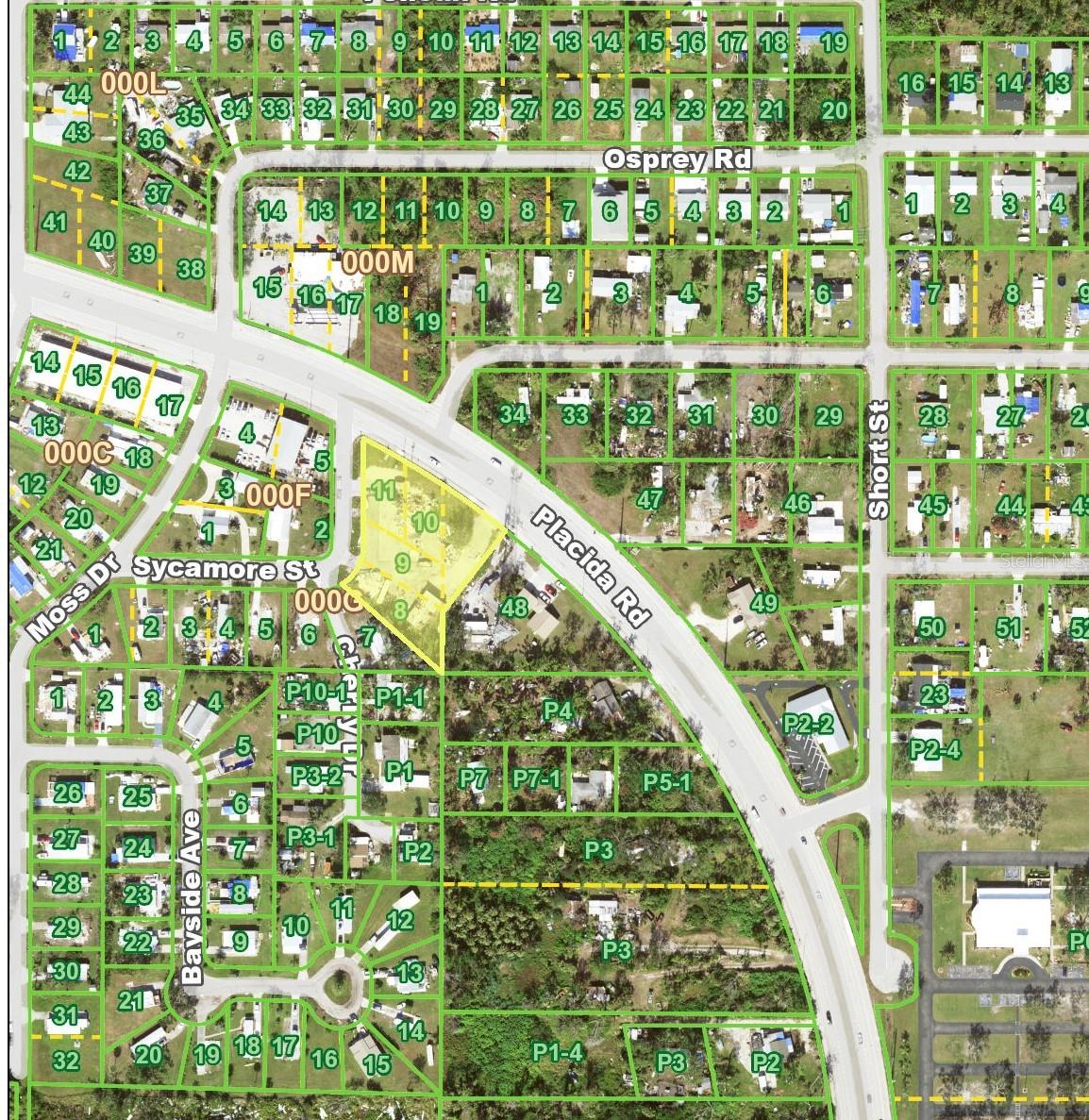 HIGH EXPOSURE COMMERCIAL LOCATION FOR DEVELOPEMENT 1.05 acres zoned CG with 267 feet of frontage on Placida Road with AADT traffic count of 15,900. Property contains a small tract zoned CI as well. Utilities available include water, sewer and 3 phase electric.