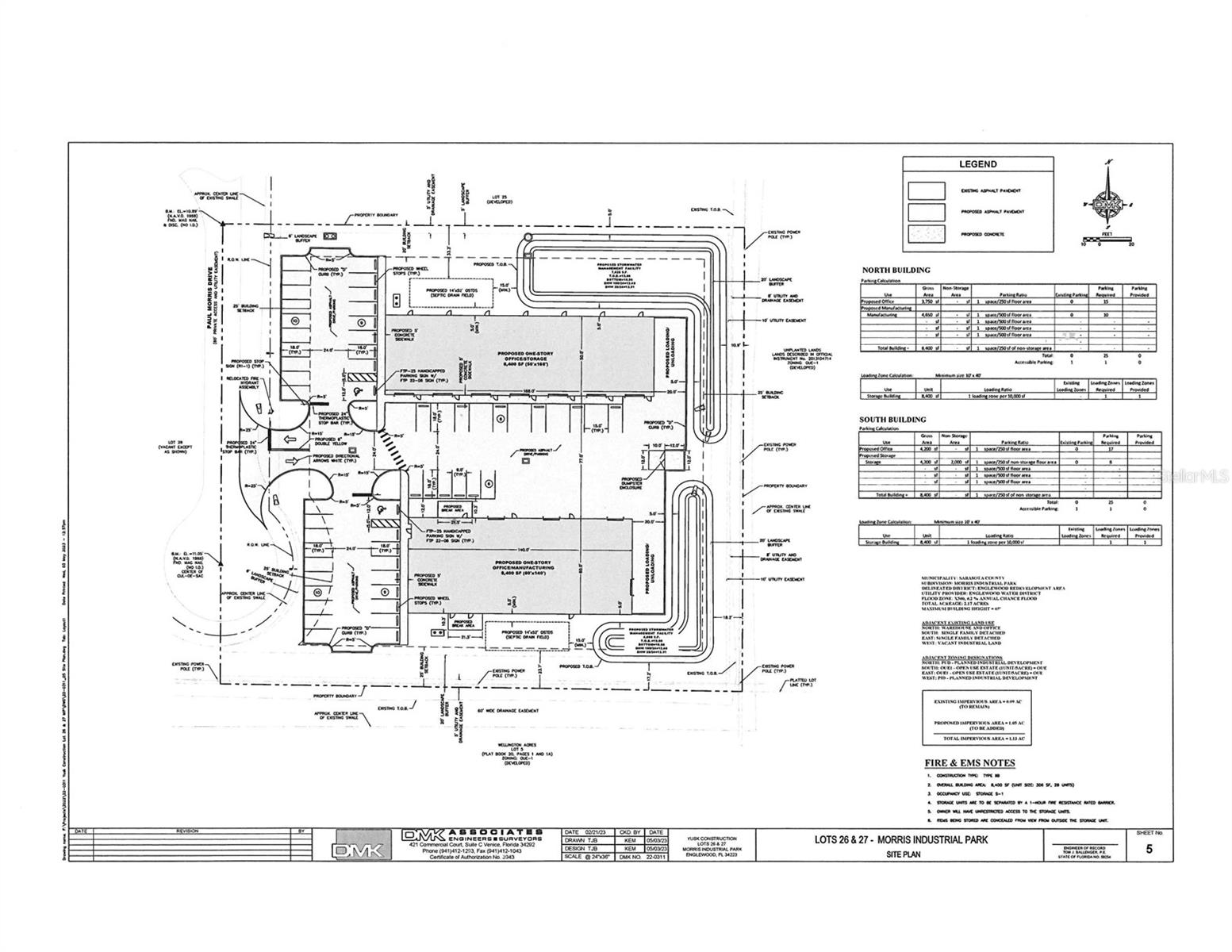 2-acre industrial development opportunity in Morris Industrial Park with a full set of building plans included and permitting achievable in approximately 30–45 days. Skip the 18–24 months of engineering, environmental studies, and design work and move straight toward construction. The approved site plan features two one-story buildings, each approximately 8,400 square feet. The north building is 50’ x 168’ and designed for seven RV or storage units, while the south building is 60’ x 140’ and designed for office and light manufacturing use. Environmental studies are available, and full engineering and site planning have already been completed. Located off River Road with direct access to US-41 and I-75 in a high-demand industrial corridor. This is a permit-ready project that saves significant time and money for investors or owner-users looking to fast-track development.
