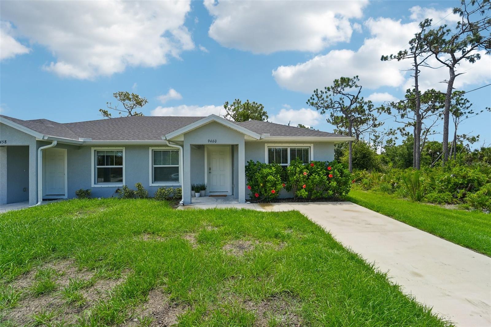 Welcome to this charming home located at 9458 and 9460 Ace Rd., Englewood, FL. This unique property offers a total of 4 bedrooms and 4 bathrooms, perfect for families or investors looking for a spacious and versatile living space. Step inside to discover a well-designed interior featuring a combination of amenities and stylish details. The kitchen comes fully equipped with essential appliances, including a dishwasher, disposal, range, and refrigerator. Enjoy meals in the cozy eating space within the kitchen or entertain guests in the open living room/dining room combo. The interior boasts solid wood cabinets and elegant stone counters, providing both functionality and aesthetic appeal. Window treatments throughout the home add a touch of elegance and privacy. Whether you're looking for a comfortable home or an investment property, this duplex offers the perfect blend of convenience and style. Don't miss the opportunity to make this versatile property yours!