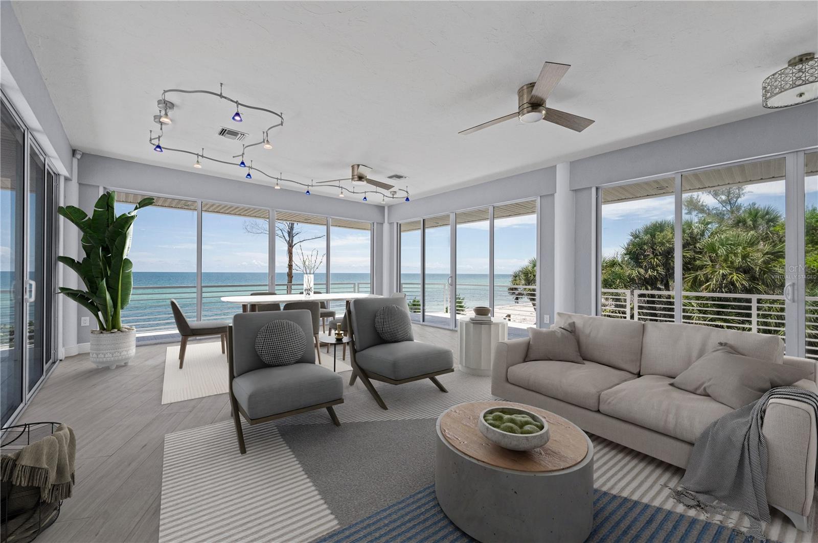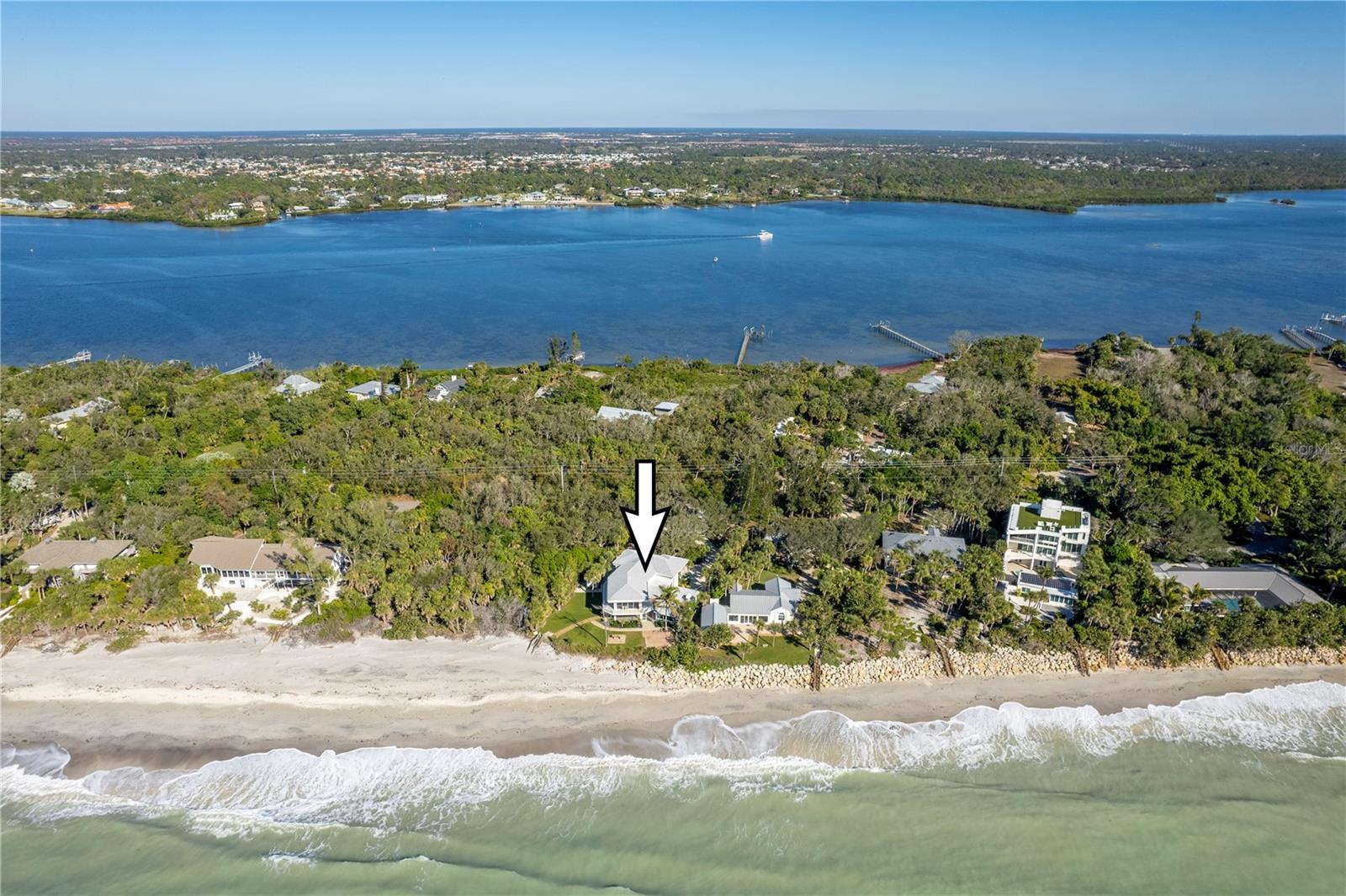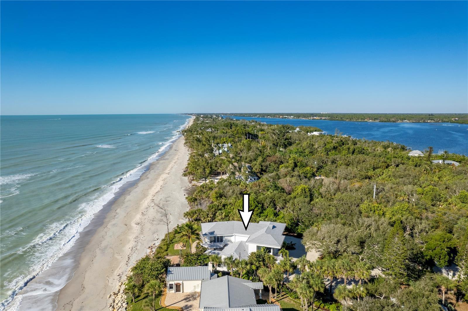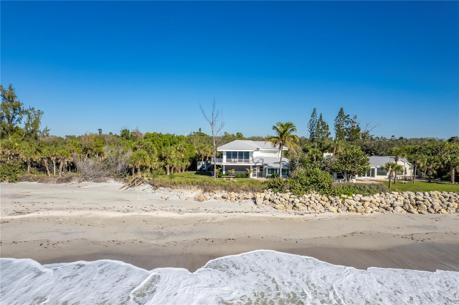 One or more photo(s) has been virtually staged. SOME PHOTOS ARE VIRTUALLY STAGED. A SHADY OAK CANOPY WILL WELCOME YOU TO YOUR NEW TROPICAL PARADISE. COME ENJOY MAJESTIC SUNSETS, COOL BREEZES AND CRYSTAL CLEAR WARM GULF WATERS ON YOUR PRISTINE PRIVATE BEACH NESTLED ON 2/3 OF AN ACRE LOT WITH A BOTNAICAL GARDEN A TROPICAL PLANTS. THIS LUXURY PROPERTY FEATURES HIGH-END NORFOLK MAPLE OYSTER BRUSH GRAY CABINETS AND A MYRIAD OF QUARTZ COUNTERTOPS. HUGE ISLAND AND BREAKFAST BAR. BUILT-IN WINE COOLER, SEPARATE KITENAIDE DOUBLE OVEN AND COOKTOP. STELLAR PANORAMIC VIEW OF THE BEACH FROM MOST EVERY ROOM IN THE HOUSE. DELUXE-WASHED GRAY CERAMIC WOOD PLANK STYLE CERAMICE TILE THROUGHOUT GIVES YOU A NEUTRAL PALATE TO DECORATE YOUR BEACH HOUSE. TWO HOMES HAS TWO FIREPLACES ONE IN THE LOWER APARTMENT AND AN ELECTRIFIED VIDEO FIREPLACE FOR GREAT ATMOSPHERE. NEW SCEENED PATIO IN THE REAR OF THE HOUSE HAS LOTS OF ROOM FOR AND OUTDOOR KITCHEN AND OUTDOOR LIVINGROOM. HUGE 4 CAR GARAGE AND PLENTY OF PARKING SPACES FOR BOATS, RVS AND OTHER TOYS. WRAP AROUND BALCONY ON TOP FLOOR WILL GIVE YOU A BIRD EYE VIEW OF THE SERENE TROPICAL WATERS. THE GATED ENTRY GIVES YOU SECURITY AND PRIVACY WITH NEWLY INSTALLED GREEN FENCING. NEW ROOF INSTALLED IN 2023. FRESHLY PAINTED INSIDE AND OUT. NEW CHANDELIER, ISLAND-STYLE CEILING FANS, AND NEW LIGHTS FIXTURES. ALL NEW VANITIES THROUGHOUT AND BATHS REMODELED. HUGE COVERED SCREEN LANAI IS PERFECT FOR ENTERTAINING. ESCAPE FROM THE HECTIC WORLD TO ISLAND PARADISE TWO SEPARATE LIVING AREAS MAKE THIS FLOOR PLAN FLEXIBLE FOR GUESTS AND A HOME OFFICE. MASTER ON SECOND FLOOR AND 2 BEDROOMS ON THE FIRST FLOOR APT WITH KITCHEN AND DEN.) THERE IS AN EASEMENT TO THE BAY WHERE YOU CAN BUILD A FUTURE SHARED DOCK, FISH OR LAUNCH A KAYAK.LOCATED 10 MINUTES FROM THE ENGLEWOOD BEACH ENTERTAINMENT DISTRICT GIVES YOU ACCESS TO SEVERAL COASTAL RESTAURANTS, BEACH BARS WITH LIVE MUSIC, OLD FLORIDA FISH MARKET, SHOPPING AND MORE.