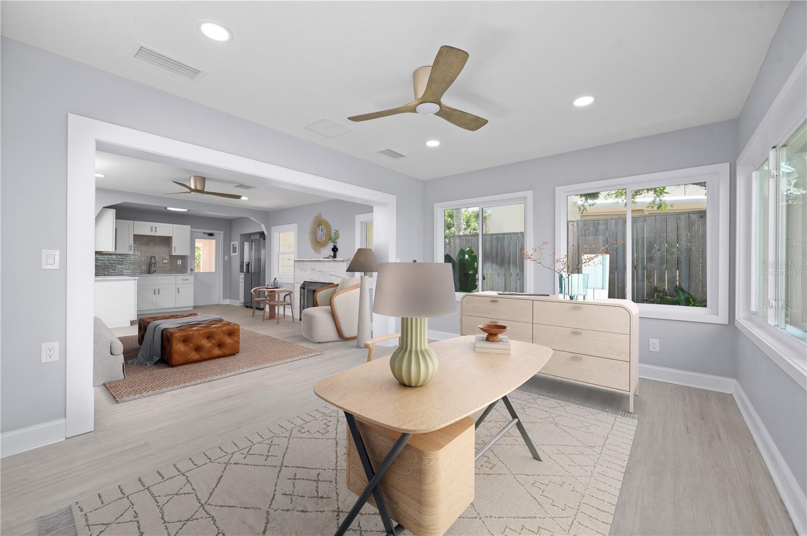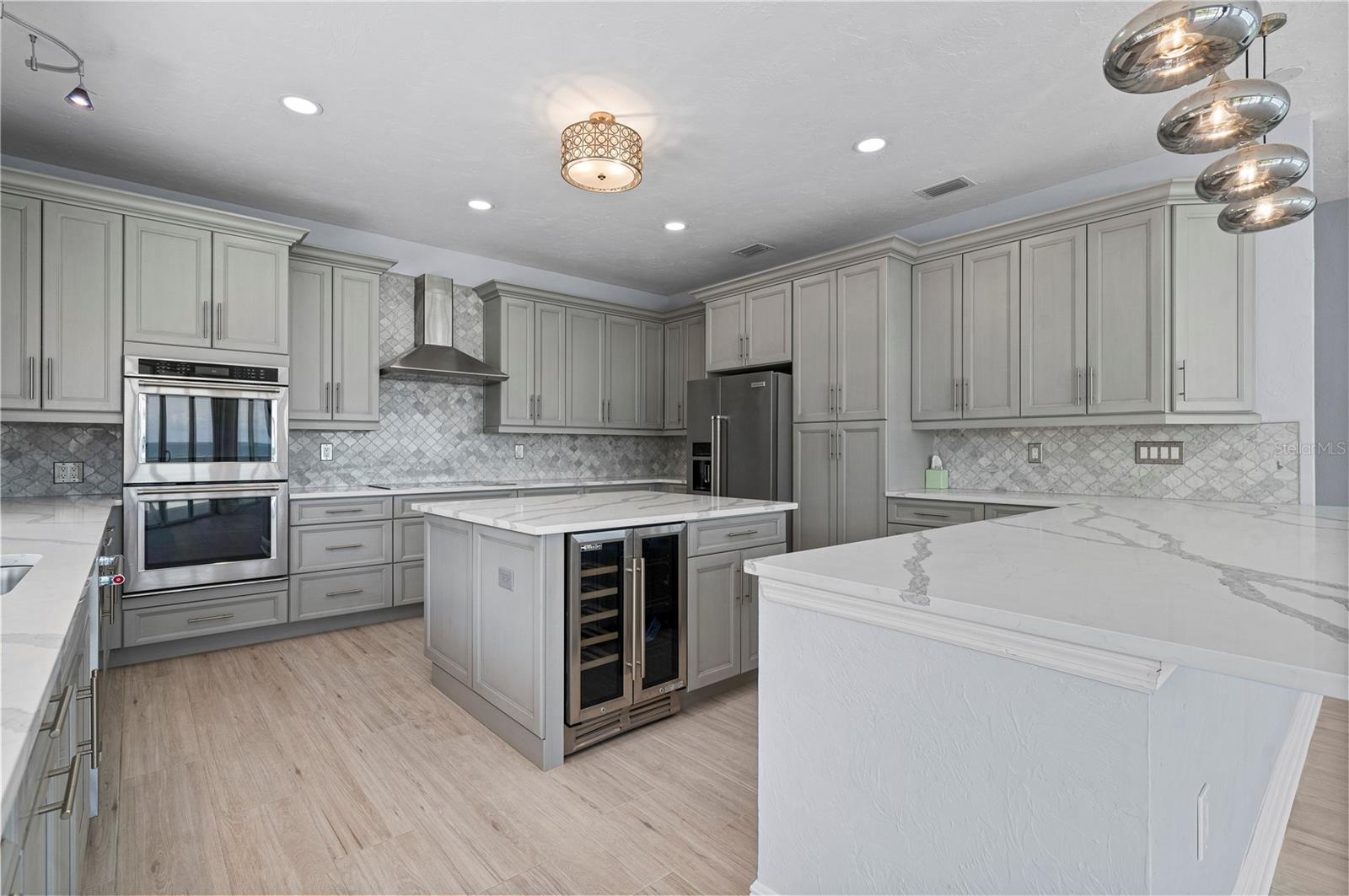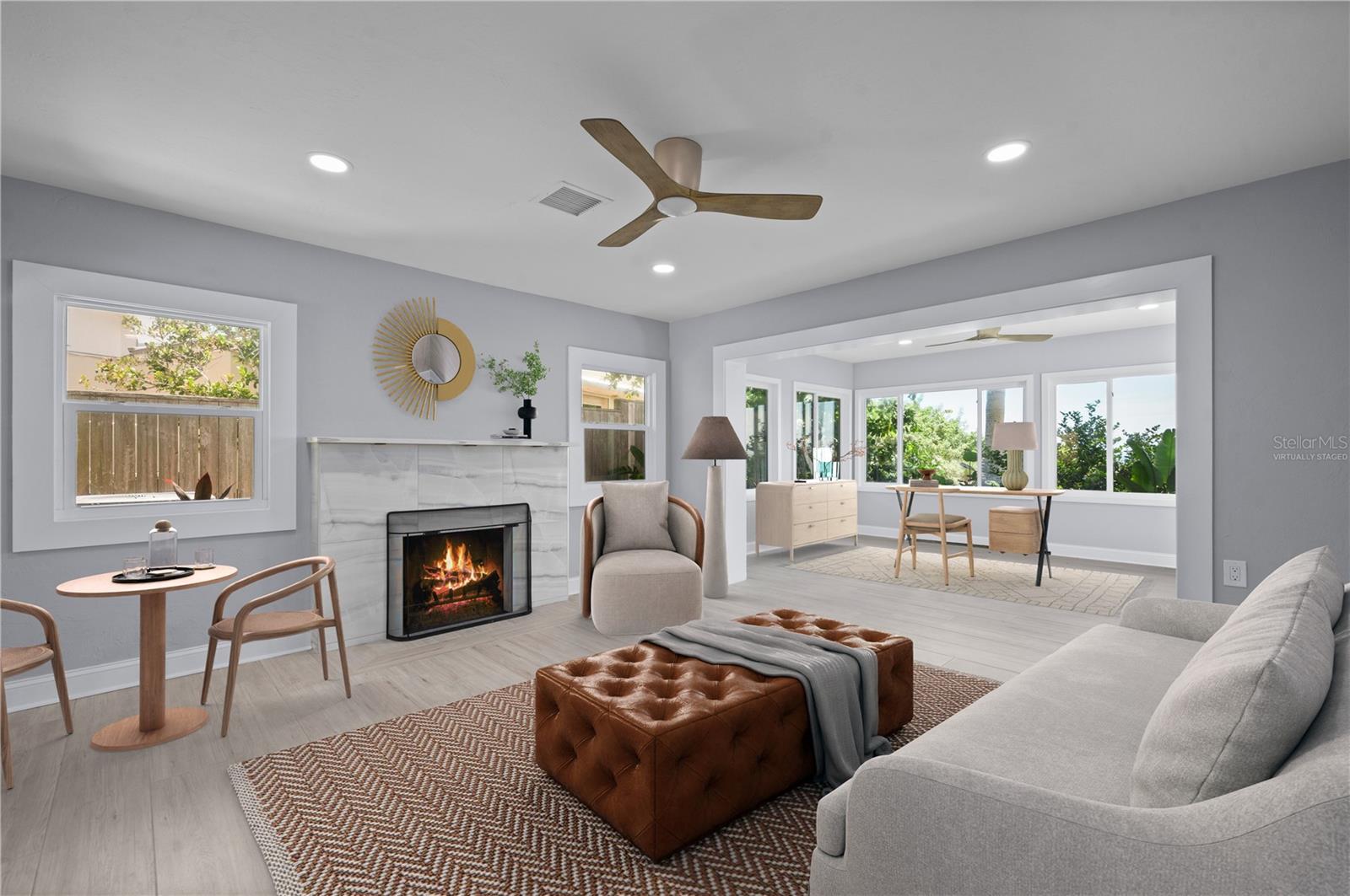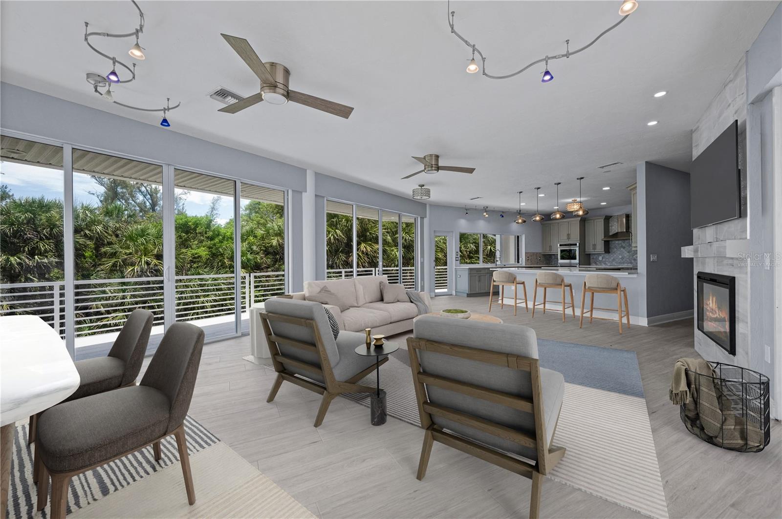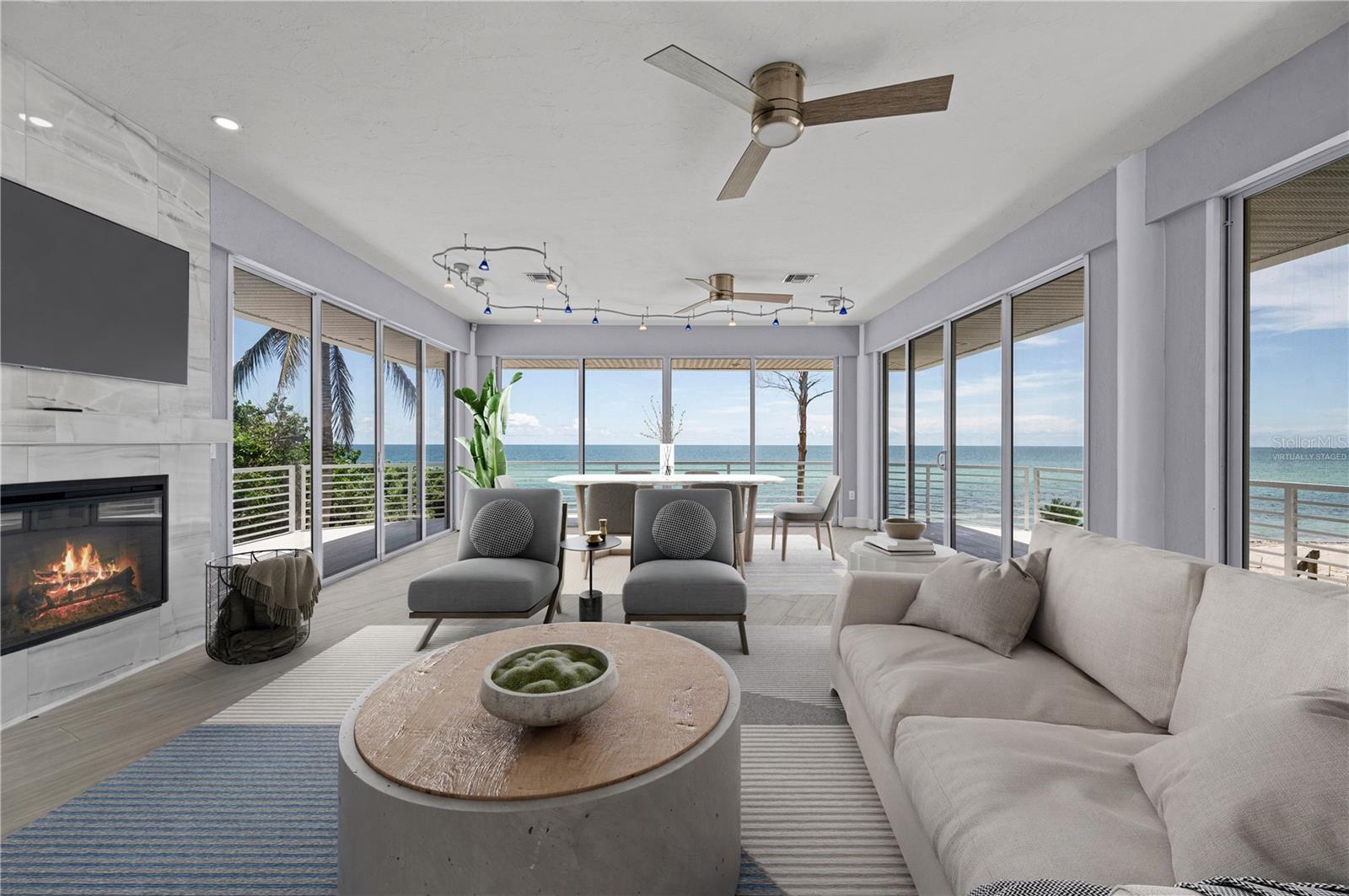 One or more photo(s) has been virtually staged. SOME PHOTOS ARE VIRTUALLY STAGED. A SHADY OAK CANOPY WILL WELCOME YOU TO YOUR NEW TROPICAL PARADISE. COME ENJOY MAJESTIC SUNSETS, COOL BREEZES AND CRYSTAL CLEAR WARM GULF WATERS ON YOUR PRISTINE PRIVATE BEACH NESTLED ON 2/3 OF AN ACRE LOT WITH A BOTNAICAL GARDEN A TROPICAL PLANTS. THIS LUXURY PROPERTY FEATURES HIGH-END NORFOLK MAPLE OYSTER BRUSH GRAY CABINETS AND A MYRIAD OF QUARTZ COUNTERTOPS. HUGE ISLAND AND BREAKFAST BAR. BUILT-IN WINE COOLER, SEPARATE KITENAIDE DOUBLE OVEN AND COOKTOP. STELLAR PANORAMIC VIEW OF THE BEACH FROM MOST EVERY ROOM IN THE HOUSE. DELUXE-WASHED GRAY CERAMIC WOOD PLANK STYLE CERAMICE TILE THROUGHOUT GIVES YOU A NEUTRAL PALATE TO DECORATE YOUR BEACH HOUSE. TWO HOMES HAS TWO FIREPLACES ONE IN THE LOWER APARTMENT AND AN ELECTRIFIED VIDEO FIREPLACE FOR GREAT ATMOSPHERE. NEW SCEENED PATIO IN THE REAR OF THE HOUSE HAS LOTS OF ROOM FOR AND OUTDOOR KITCHEN AND OUTDOOR LIVINGROOM. HUGE 4 CAR GARAGE AND PLENTY OF PARKING SPACES FOR BOATS, RVS AND OTHER TOYS. WRAP AROUND BALCONY ON TOP FLOOR WILL GIVE YOU A BIRD EYE VIEW OF THE SERENE TROPICAL WATERS. THE GATED ENTRY GIVES YOU SECURITY AND PRIVACY WITH NEWLY INSTALLED GREEN FENCING. NEW ROOF INSTALLED IN 2023. FRESHLY PAINTED INSIDE AND OUT. NEW CHANDELIER, ISLAND-STYLE CEILING FANS, AND NEW LIGHTS FIXTURES. ALL NEW VANITIES THROUGHOUT AND BATHS REMODELED. HUGE COVERED SCREEN LANAI IS PERFECT FOR ENTERTAINING. ESCAPE FROM THE HECTIC WORLD TO ISLAND PARADISE TWO SEPARATE LIVING AREAS MAKE THIS FLOOR PLAN FLEXIBLE FOR GUESTS AND A HOME OFFICE. MASTER ON SECOND FLOOR AND 2 BEDROOMS ON THE FIRST FLOOR APT WITH KITCHEN AND DEN.) THERE IS AN EASEMENT TO THE BAY WHERE YOU CAN BUILD A FUTURE SHARED DOCK, FISH OR LAUNCH A KAYAK.LOCATED 10 MINUTES FROM THE ENGLEWOOD BEACH ENTERTAINMENT DISTRICT GIVES YOU ACCESS TO SEVERAL COASTAL RESTAURANTS, BEACH BARS WITH LIVE MUSIC, OLD FLORIDA FISH MARKET, SHOPPING AND MORE.