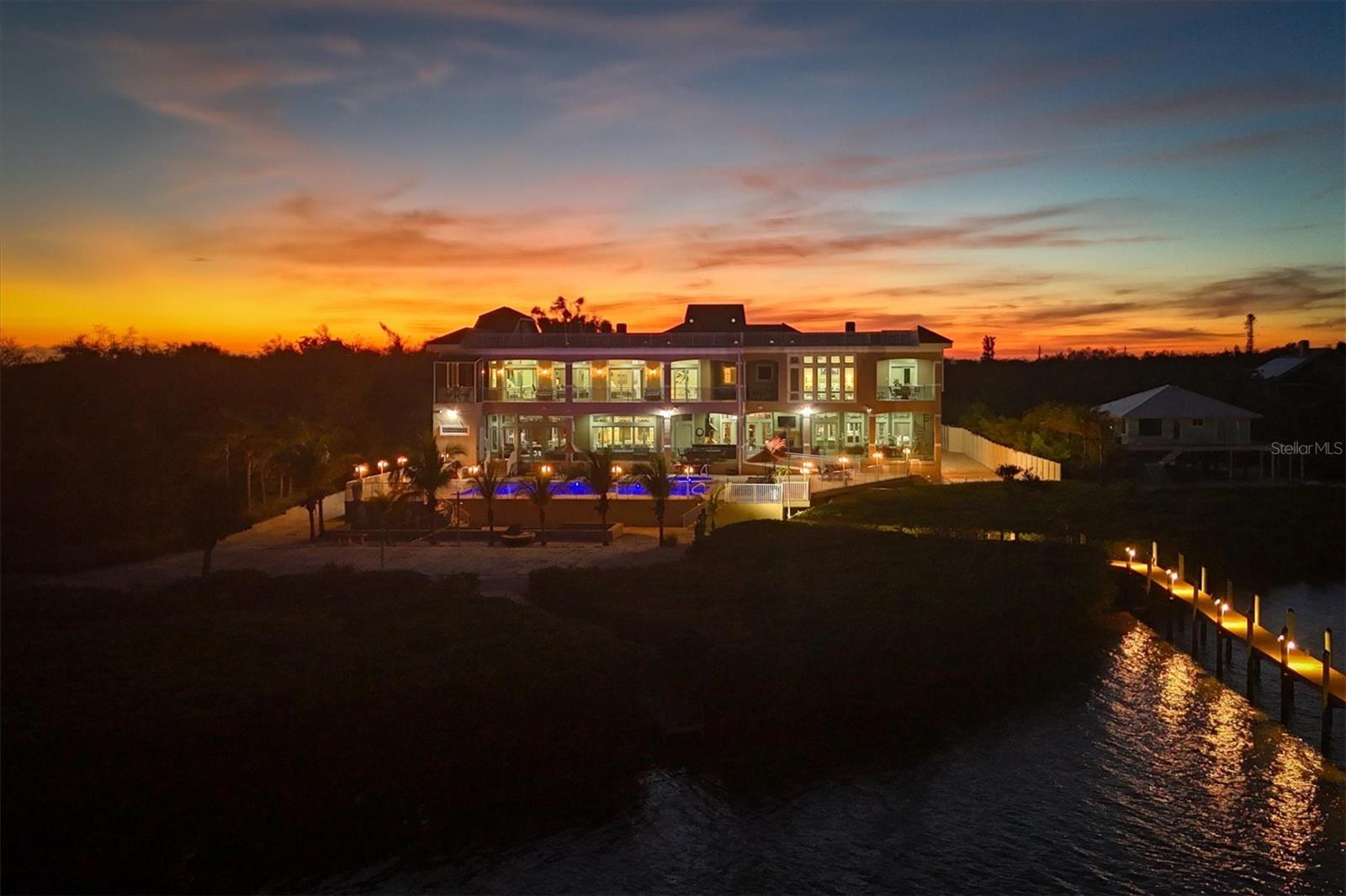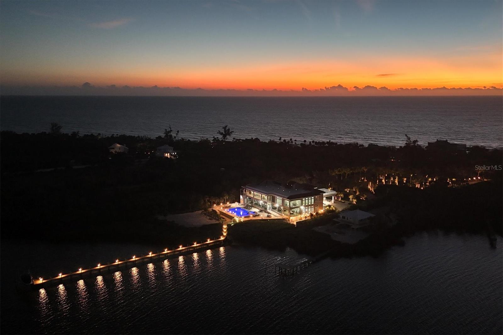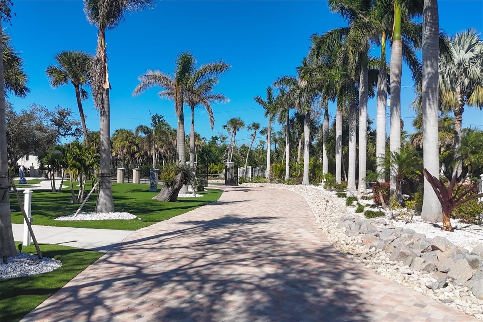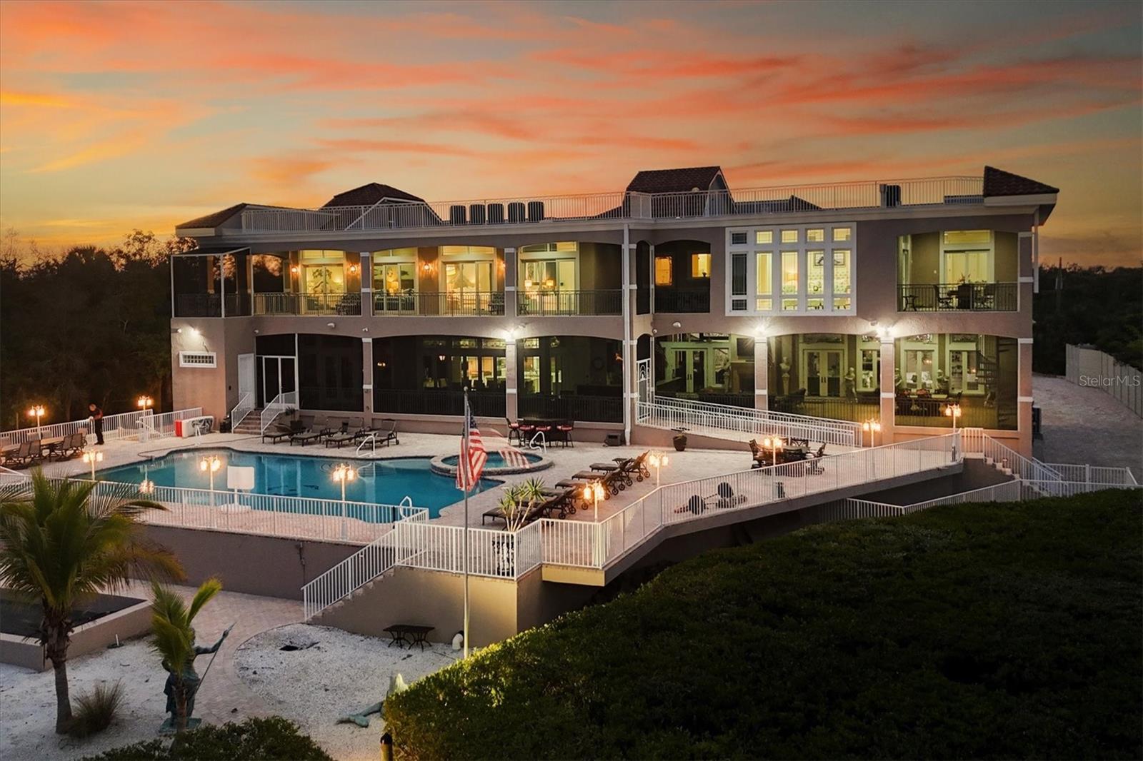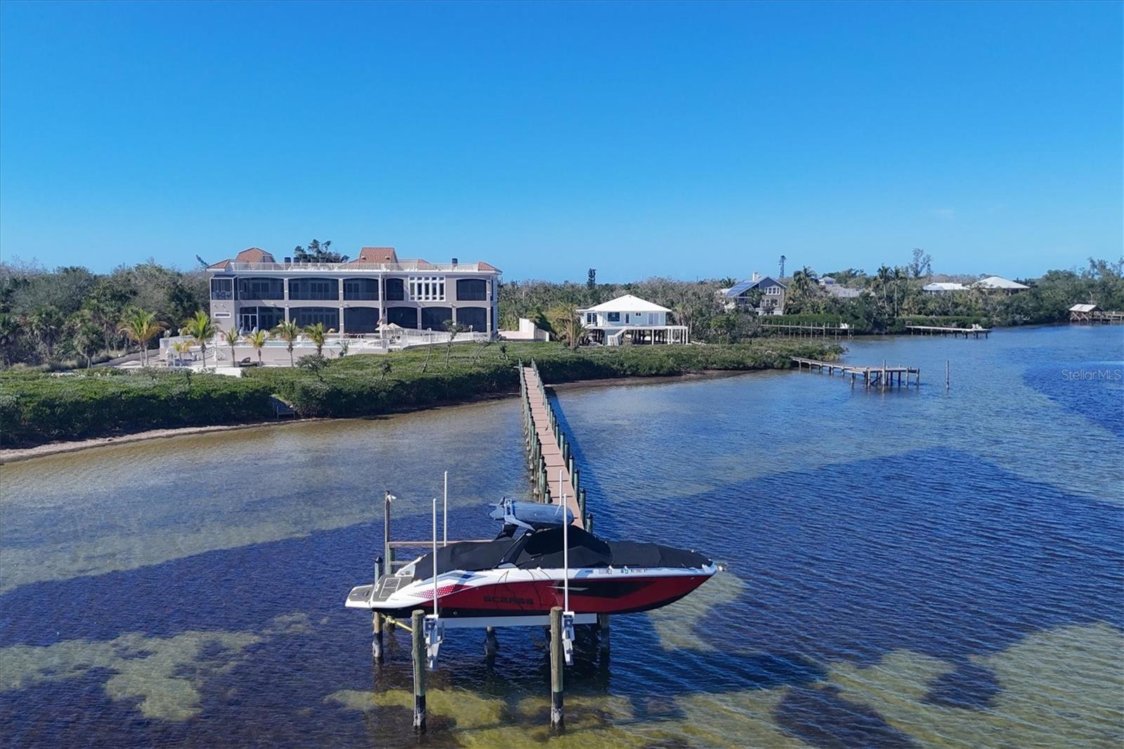 This stunning and sophisticated custom waterfront home, designed for welcoming family and friends, awaits on a luxurious 3-acre property on Manasota Key's idyllic Lemon Bay. Enter through the gates and meander along the long driveway through gardens with waterfalls, sculptures, and manicured putting greens. Arrive at the stately porte cochere – the entrance to this magnificent estate. The architectural details are striking, from the double leaded glass front entry doors to the glowing custom stained glass transom windows encircling the first floor, all leading to over 12,000 square feet of resort style living space. A glass elevator is conveniently located in the two-story foyer, completing the remarkable lobby space. Meticulous attention to detail, optimal comfort, and thoughtful design are evident in every room of this home. The residence boasts six bedrooms, ten full bathrooms, one half bathroom, and features two well-organized laundry rooms for convenience. The impressive library is adorned with floor-to-ceiling built-in bookshelves and a well-appointed bar, creating an inviting and stylish space. The family room offers multiple glass doors that lead to the terrace, providing an abundance of natural light, complemented by two closets equipped with built-in sinks, cabinets, and beverage coolers. High tray ceilings and a movie screen with projector enhance the ambiance of this space, while a bonus room, an office, an expansive living room, a state-of-the-art gym, and a formal dining room collectively ensure ample accommodation for guests. The kitchen is a professional chef’s dream, with two islands, Sub-Zero appliances, a ten-burner Wolf cooking range, wine refrigerator, beverage cooler drawers, an ice maker, a massive walk-in pantry, and a dining area overlooking the outdoor area and bay. Retreat to the primary suite, with unparalleled views of the bay from the private screened-in terrace, a cozy fireplace, a separate sitting room, elegant bath amenities, ample custom closets and a spiral staircase down to the library. Each ensuite bedroom has access to the expansive upper terrace or the rooftop deck for ultimate views and relaxation. An additional 15,000 square feet of space includes the oversized and newly resurfaced saltwater pool, spa, full outdoor kitchen, outdoor dining and entertaining space, multiple terraces, a bocce court, and a volleyball court, all leading to the dock with boat lift. Entertain grandly, with ample space for parking, or create the ultimate car collection in the ground-level newly tiled garage that can easily accommodate 20 cars. Deeded access to the beach and the sparkling waters of the Gulf of Mexico completes this grand estate. This home is perfect for those who value privacy and opulence yet love to entertain. Conveniently located on Manasota Key, yet only a short drive to all that Venice and Sarasota have to offer. This home and property are truly one of a kind! Bedroom Closet Type: Walk-in Closet (Primary Bedroom).
