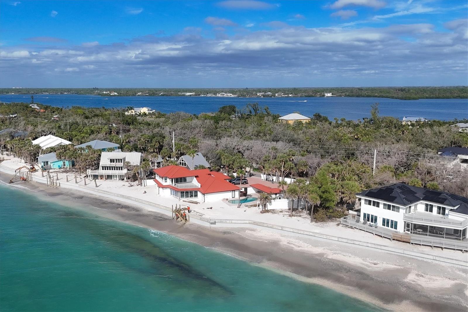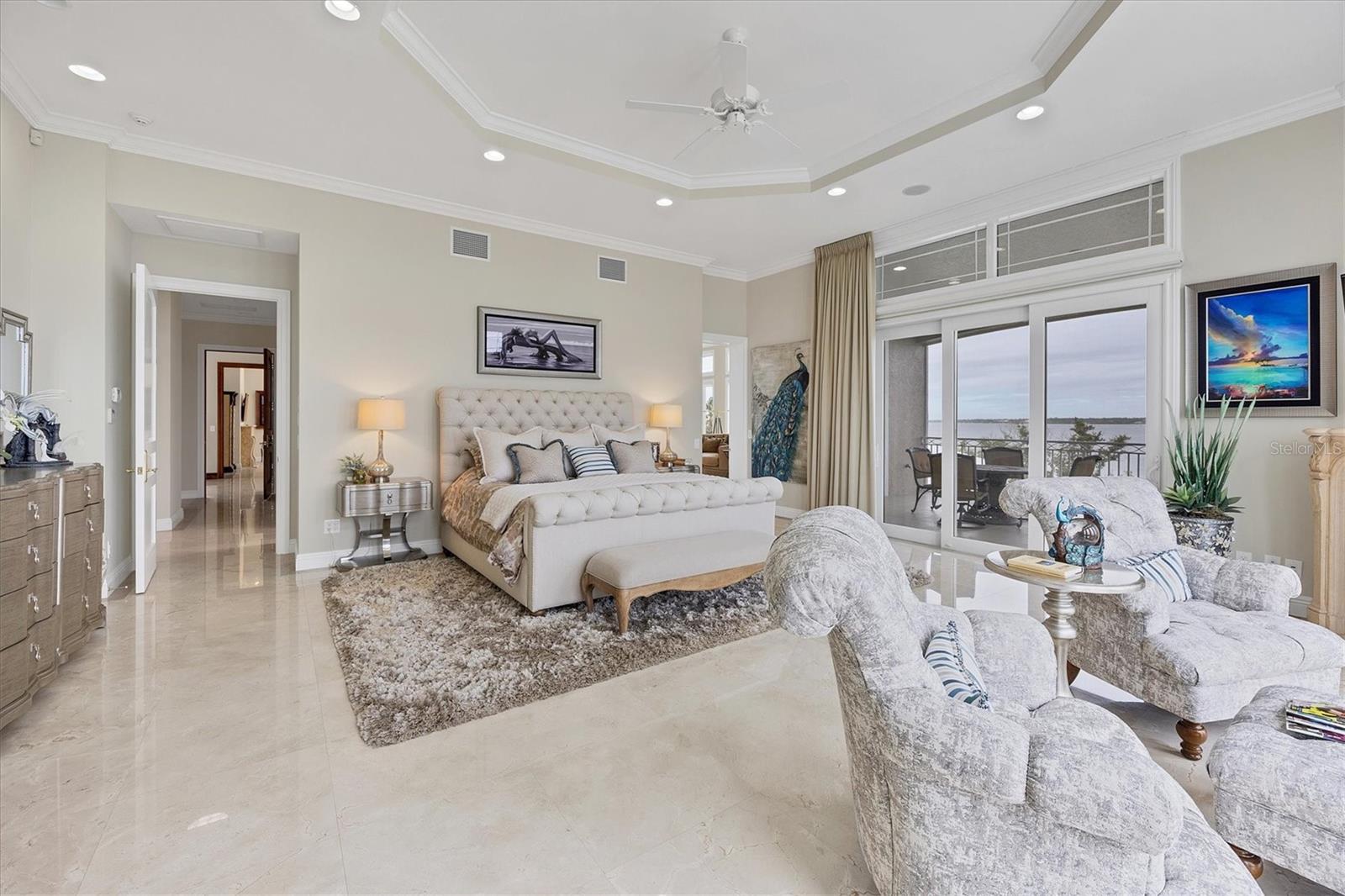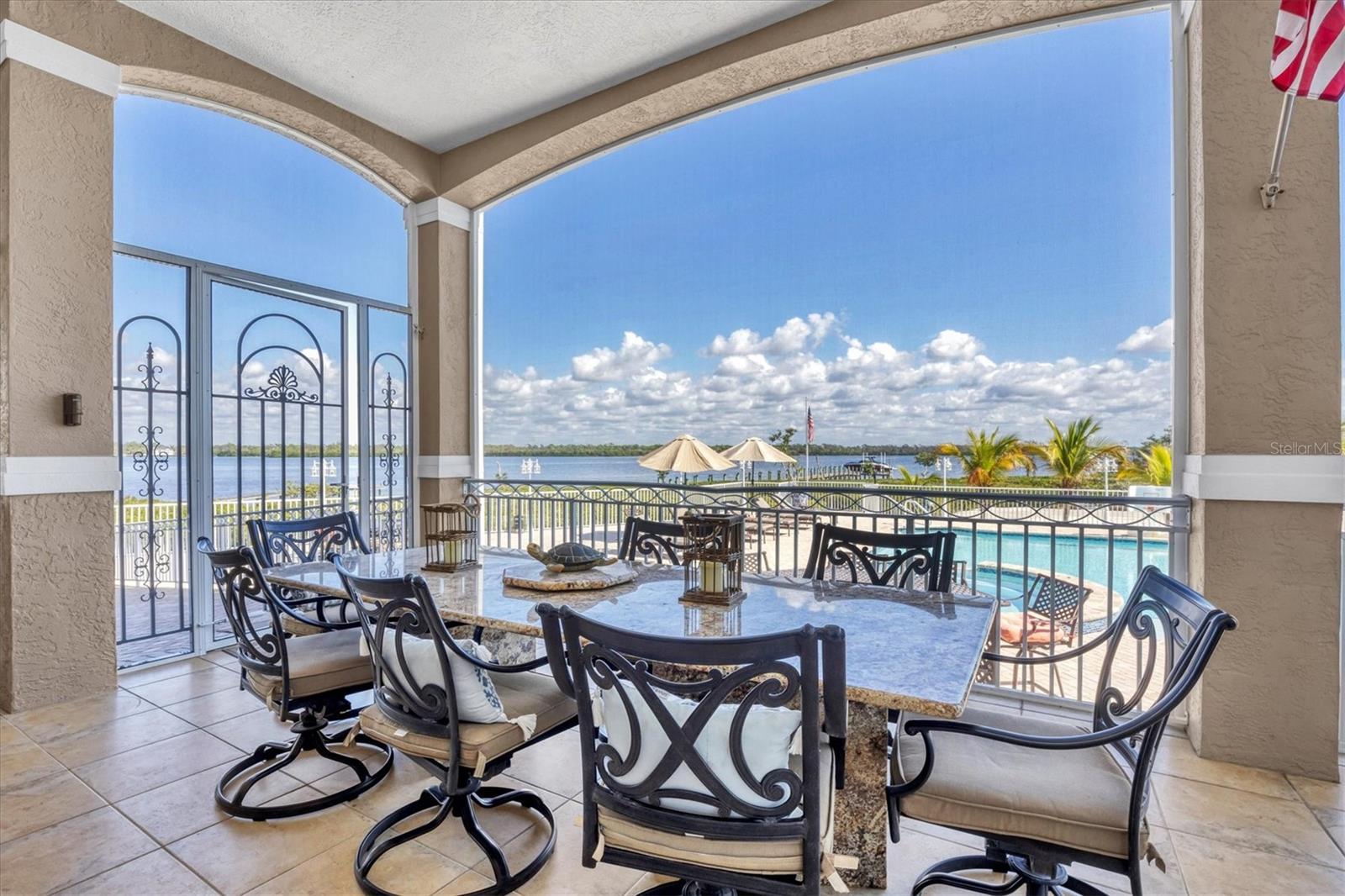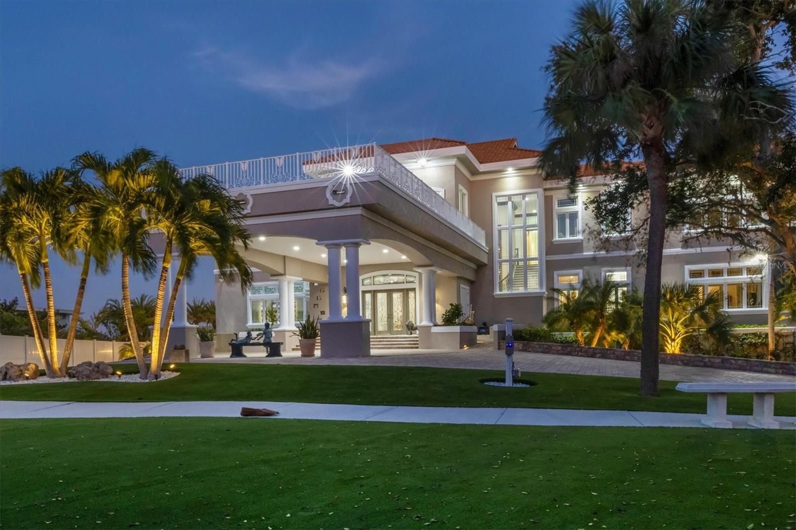 This stunning and sophisticated custom waterfront home, designed for welcoming family and friends, awaits on a luxurious 3-acre property on Manasota Key's idyllic Lemon Bay. Enter through the gates and meander along the long driveway through gardens with waterfalls, sculptures, and manicured putting greens. Arrive at the stately porte cochere – the entrance to this magnificent estate. The architectural details are striking, from the double leaded glass front entry doors to the glowing custom stained glass transom windows encircling the first floor, all leading to over 12,000 square feet of resort style living space. A glass elevator is conveniently located in the two-story foyer, completing the remarkable lobby space. Meticulous attention to detail, optimal comfort, and thoughtful design are evident in every room of this home. The residence boasts six bedrooms, ten full bathrooms, one half bathroom, and features two well-organized laundry rooms for convenience. The impressive library is adorned with floor-to-ceiling built-in bookshelves and a well-appointed bar, creating an inviting and stylish space. The family room offers multiple glass doors that lead to the terrace, providing an abundance of natural light, complemented by two closets equipped with built-in sinks, cabinets, and beverage coolers. High tray ceilings and a movie screen with projector enhance the ambiance of this space, while a bonus room, an office, an expansive living room, a state-of-the-art gym, and a formal dining room collectively ensure ample accommodation for guests. The kitchen is a professional chef’s dream, with two islands, Sub-Zero appliances, a ten-burner Wolf cooking range, wine refrigerator, beverage cooler drawers, an ice maker, a massive walk-in pantry, and a dining area overlooking the outdoor area and bay. Retreat to the primary suite, with unparalleled views of the bay from the private screened-in terrace, a cozy fireplace, a separate sitting room, elegant bath amenities, ample custom closets and a spiral staircase down to the library. Each ensuite bedroom has access to the expansive upper terrace or the rooftop deck for ultimate views and relaxation. An additional 15,000 square feet of space includes the oversized and newly resurfaced saltwater pool, spa, full outdoor kitchen, outdoor dining and entertaining space, multiple terraces, a bocce court, and a volleyball court, all leading to the dock with boat lift. Entertain grandly, with ample space for parking, or create the ultimate car collection in the ground-level newly tiled garage that can easily accommodate 20 cars. Deeded access to the beach and the sparkling waters of the Gulf of Mexico completes this grand estate. This home is perfect for those who value privacy and opulence yet love to entertain. Conveniently located on Manasota Key, yet only a short drive to all that Venice and Sarasota have to offer. This home and property are truly one of a kind! Bedroom Closet Type: Walk-in Closet (Primary Bedroom).