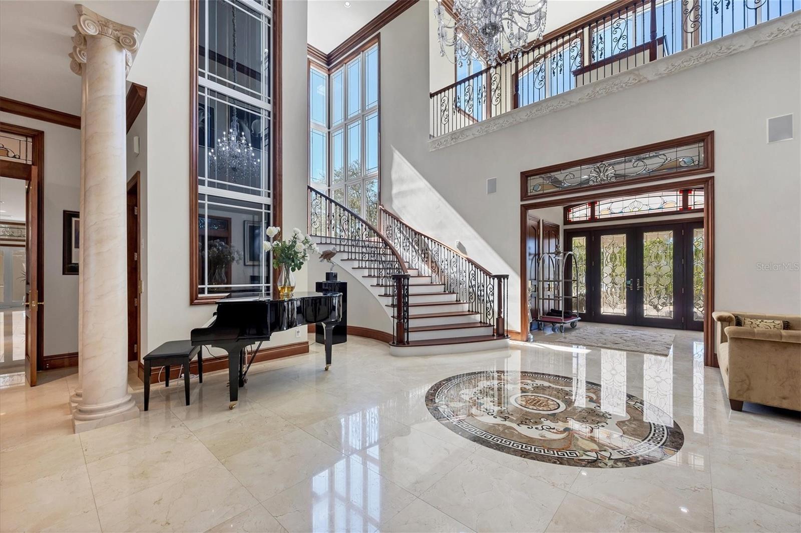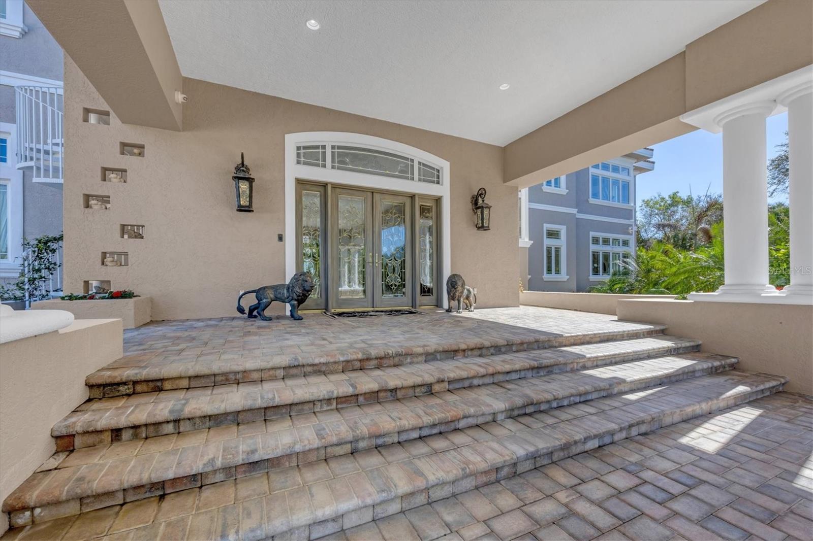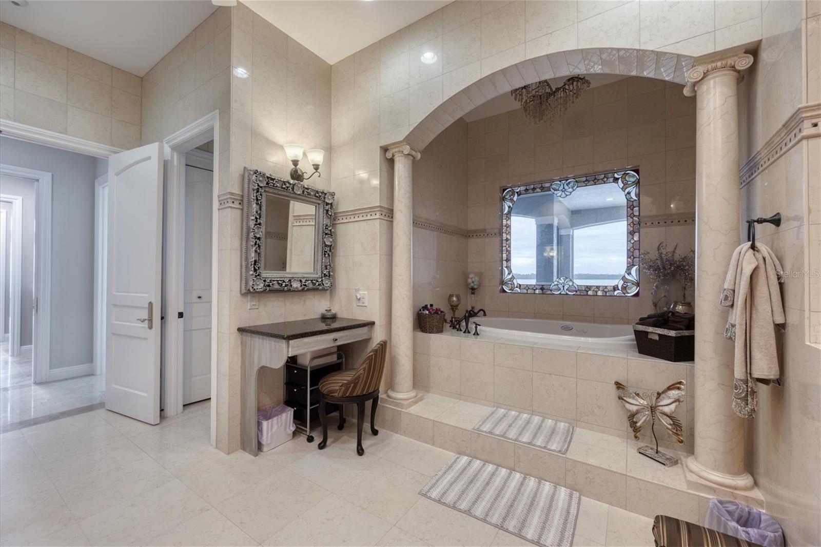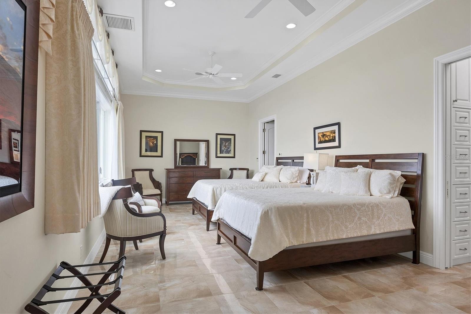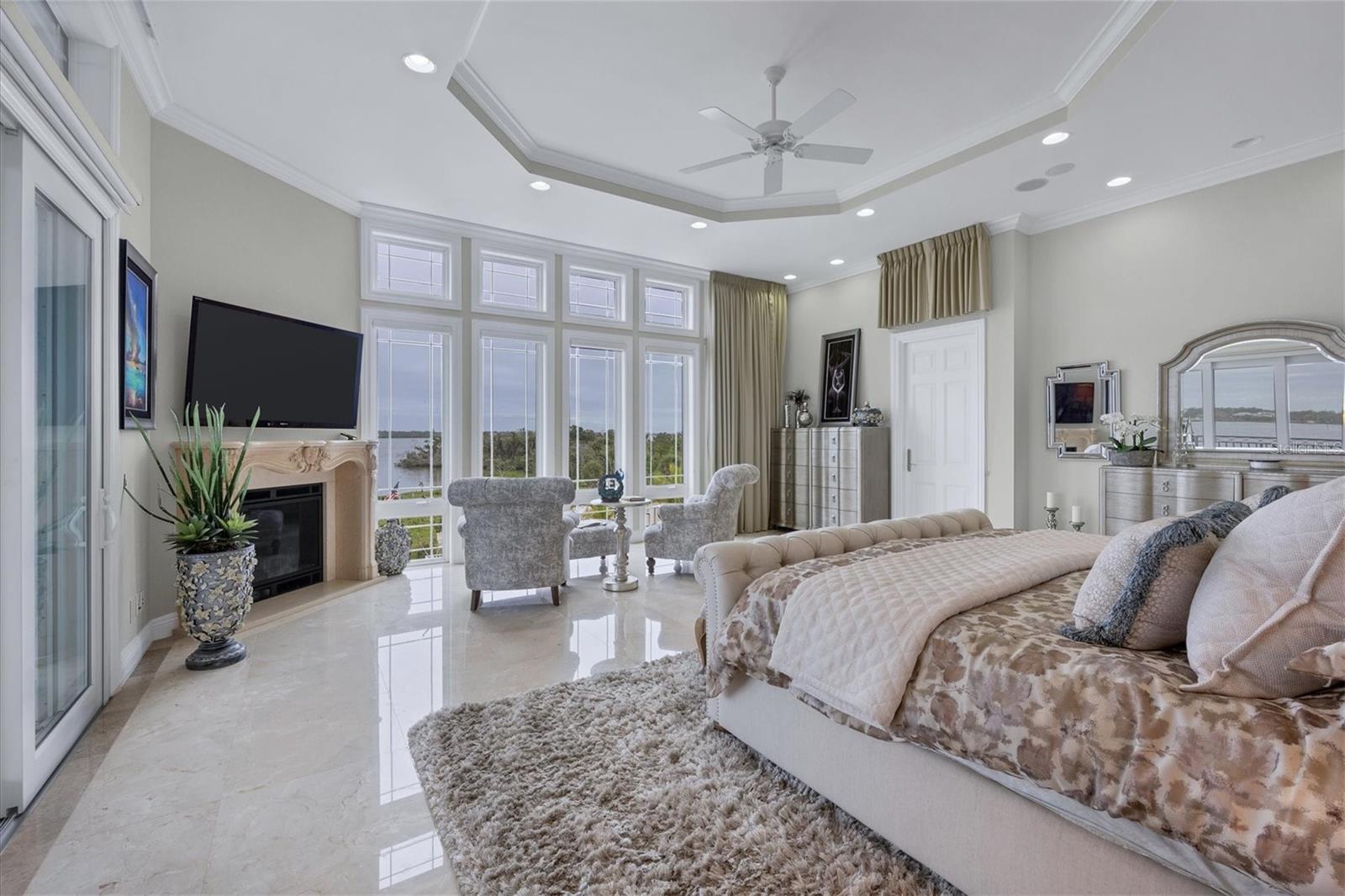This stunning and sophisticated custom waterfront home, designed for welcoming family and friends, awaits on a luxurious 3-acre property on Manasota Key's idyllic Lemon Bay. Enter through the gates and meander along the long driveway through gardens with waterfalls, sculptures, and manicured putting greens. Arrive at the stately porte cochere – the entrance to this magnificent estate. The architectural details are striking, from the double leaded glass front entry doors to the glowing custom stained glass transom windows encircling the first floor, all leading to over 12,000 square feet of resort style living space. A glass elevator is conveniently located in the two-story foyer, completing the remarkable lobby space. Meticulous attention to detail, optimal comfort, and thoughtful design are evident in every room of this home. The residence boasts six bedrooms, ten full bathrooms, one half bathroom, and features two well-organized laundry rooms for convenience. The impressive library is adorned with floor-to-ceiling built-in bookshelves and a well-appointed bar, creating an inviting and stylish space. The family room offers multiple glass doors that lead to the terrace, providing an abundance of natural light, complemented by two closets equipped with built-in sinks, cabinets, and beverage coolers. High tray ceilings and a movie screen with projector enhance the ambiance of this space, while a bonus room, an office, an expansive living room, a state-of-the-art gym, and a formal dining room collectively ensure ample accommodation for guests. The kitchen is a professional chef’s dream, with two islands, Sub-Zero appliances, a ten-burner Wolf cooking range, wine refrigerator, beverage cooler drawers, an ice maker, a massive walk-in pantry, and a dining area overlooking the outdoor area and bay. Retreat to the primary suite, with unparalleled views of the bay from the private screened-in terrace, a cozy fireplace, a separate sitting room, elegant bath amenities, ample custom closets and a spiral staircase down to the library. Each ensuite bedroom has access to the expansive upper terrace or the rooftop deck for ultimate views and relaxation. An additional 15,000 square feet of space includes the oversized and newly resurfaced saltwater pool, spa, full outdoor kitchen, outdoor dining and entertaining space, multiple terraces, a bocce court, and a volleyball court, all leading to the dock with boat lift. Entertain grandly, with ample space for parking, or create the ultimate car collection in the ground-level newly tiled garage that can easily accommodate 20 cars. Deeded access to the beach and the sparkling waters of the Gulf of Mexico completes this grand estate. This home is perfect for those who value privacy and opulence yet love to entertain. Conveniently located on Manasota Key, yet only a short drive to all that Venice and Sarasota have to offer. This home and property are truly one of a kind! Bedroom Closet Type: Walk-in Closet (Primary Bedroom).