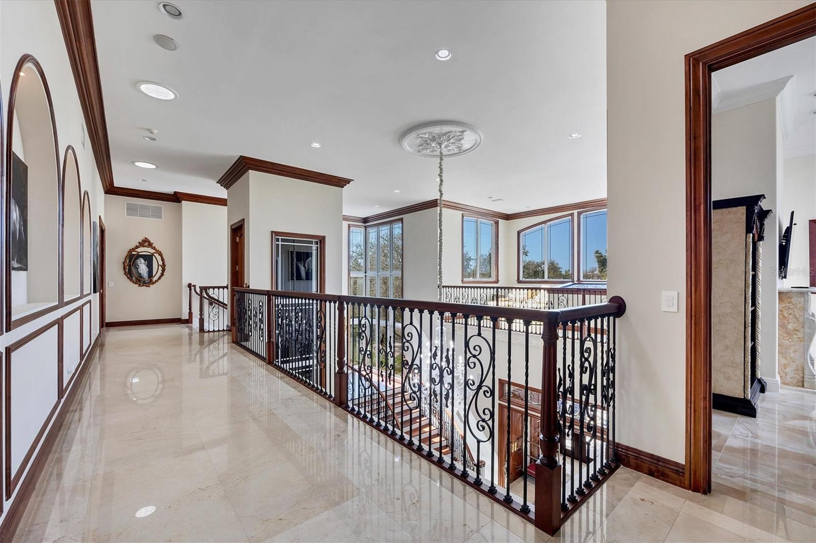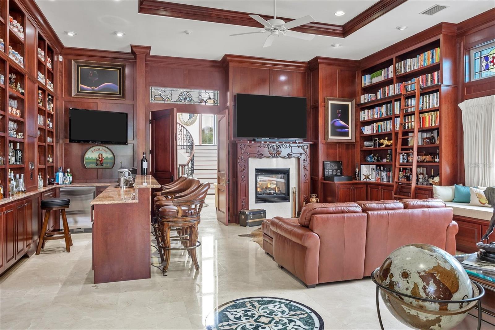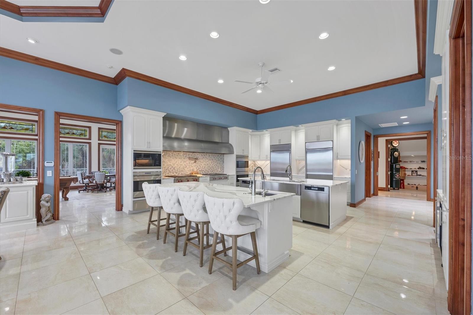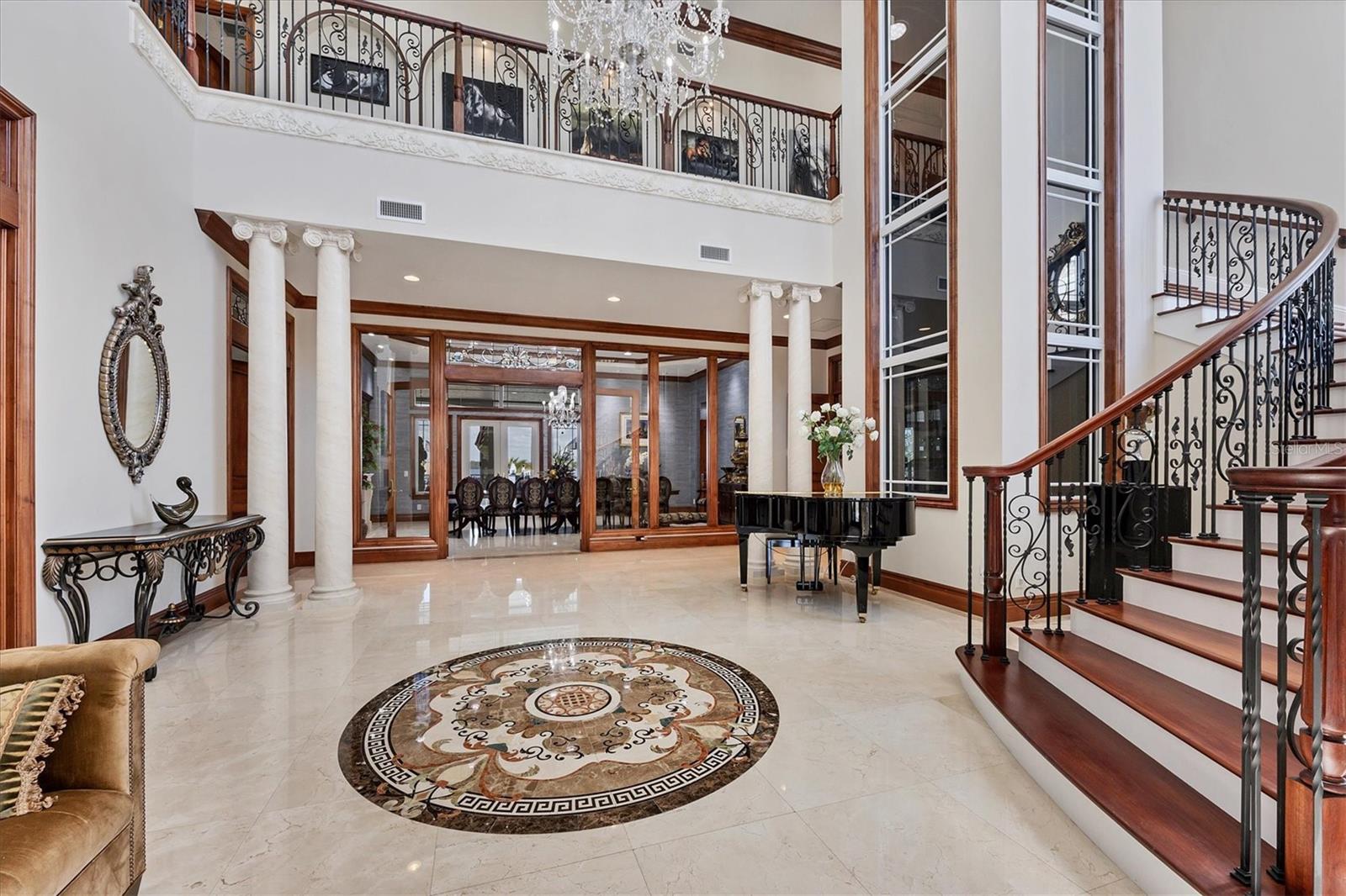 This stunning and sophisticated custom waterfront home, designed for welcoming family and friends, awaits on a luxurious 3-acre property on Manasota Key's idyllic Lemon Bay. Enter through the gates and meander along the long driveway through gardens with waterfalls, sculptures, and manicured putting greens. Arrive at the stately porte cochere – the entrance to this magnificent estate. The architectural details are striking, from the double leaded glass front entry doors to the glowing custom stained glass transom windows encircling the first floor, all leading to over 12,000 square feet of resort style living space. A glass elevator is conveniently located in the two-story foyer, completing the remarkable lobby space. Meticulous attention to detail, optimal comfort, and thoughtful design are evident in every room of this home. The residence boasts six bedrooms, ten full bathrooms, one half bathroom, and features two well-organized laundry rooms for convenience. The impressive library is adorned with floor-to-ceiling built-in bookshelves and a well-appointed bar, creating an inviting and stylish space. The family room offers multiple glass doors that lead to the terrace, providing an abundance of natural light, complemented by two closets equipped with built-in sinks, cabinets, and beverage coolers. High tray ceilings and a movie screen with projector enhance the ambiance of this space, while a bonus room, an office, an expansive living room, a state-of-the-art gym, and a formal dining room collectively ensure ample accommodation for guests. The kitchen is a professional chef’s dream, with two islands, Sub-Zero appliances, a ten-burner Wolf cooking range, wine refrigerator, beverage cooler drawers, an ice maker, a massive walk-in pantry, and a dining area overlooking the outdoor area and bay. Retreat to the primary suite, with unparalleled views of the bay from the private screened-in terrace, a cozy fireplace, a separate sitting room, elegant bath amenities, ample custom closets and a spiral staircase down to the library. Each ensuite bedroom has access to the expansive upper terrace or the rooftop deck for ultimate views and relaxation. An additional 15,000 square feet of space includes the oversized and newly resurfaced saltwater pool, spa, full outdoor kitchen, outdoor dining and entertaining space, multiple terraces, a bocce court, and a volleyball court, all leading to the dock with boat lift. Entertain grandly, with ample space for parking, or create the ultimate car collection in the ground-level newly tiled garage that can easily accommodate 20 cars. Deeded access to the beach and the sparkling waters of the Gulf of Mexico completes this grand estate. This home is perfect for those who value privacy and opulence yet love to entertain. Conveniently located on Manasota Key, yet only a short drive to all that Venice and Sarasota have to offer. This home and property are truly one of a kind! Bedroom Closet Type: Walk-in Closet (Primary Bedroom).