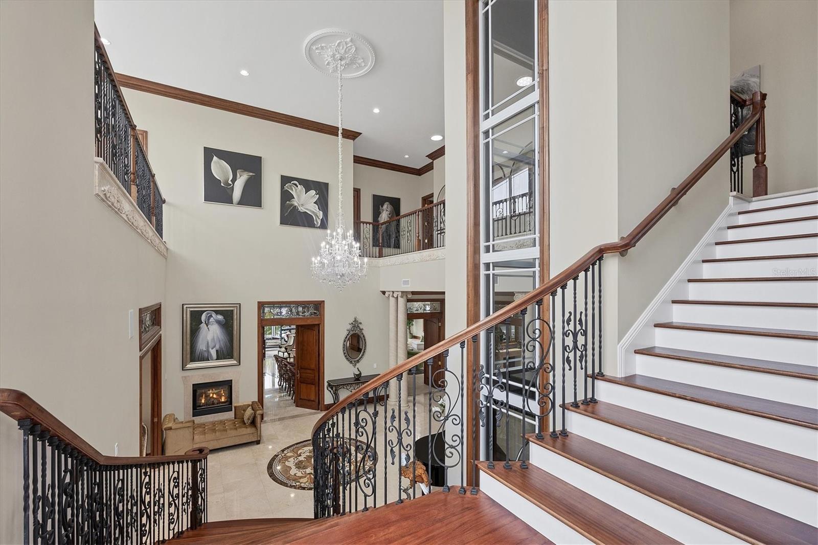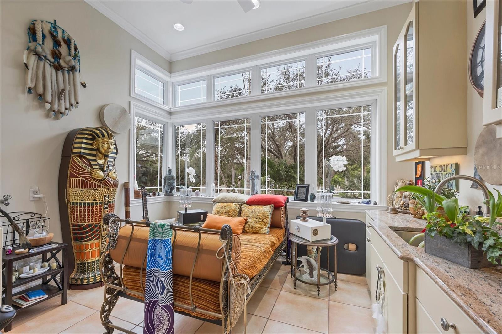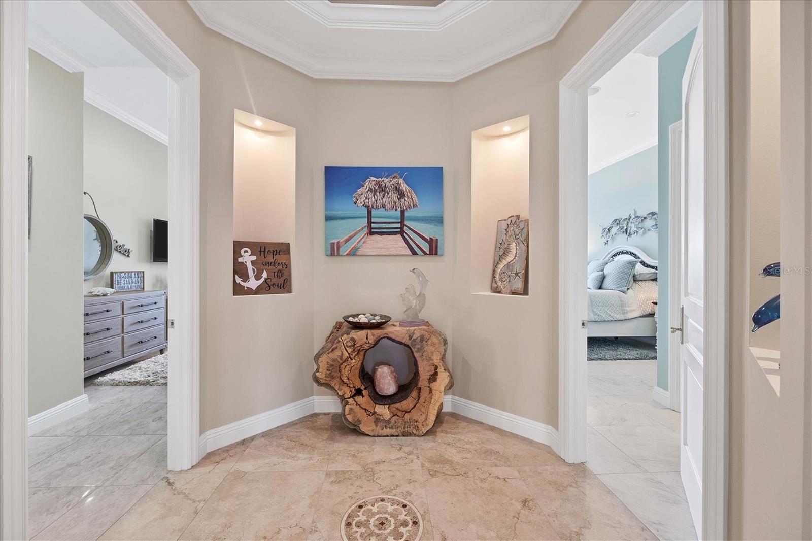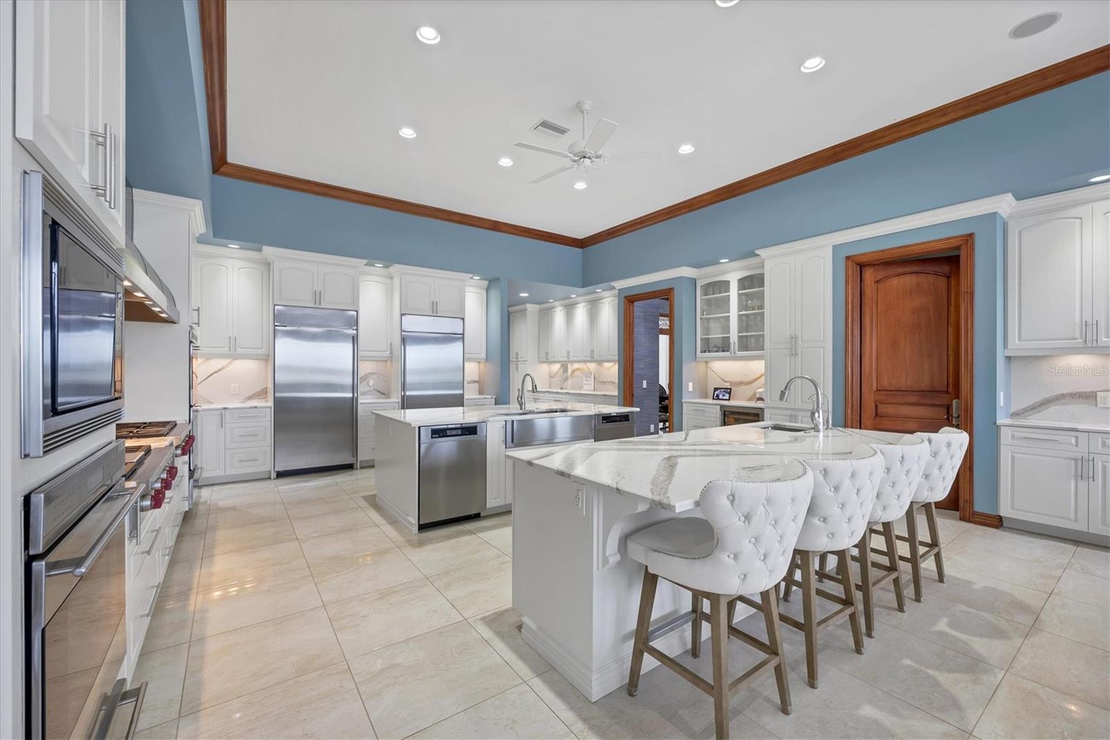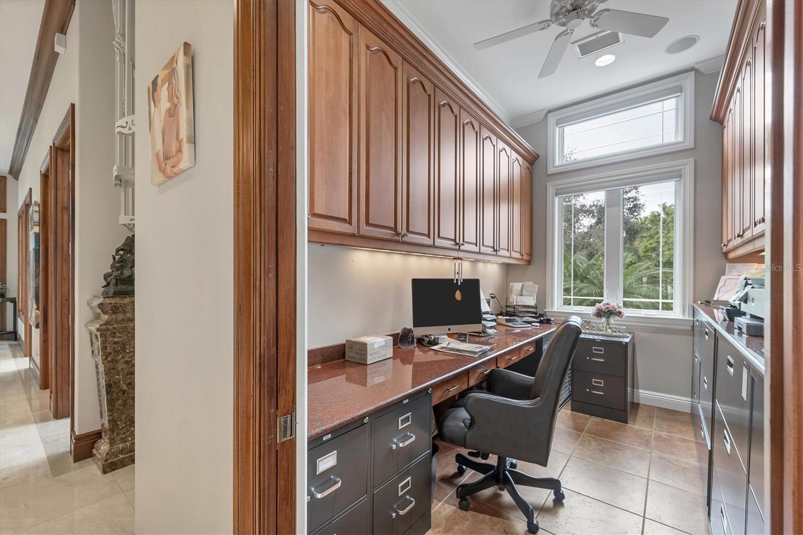 This stunning and sophisticated custom waterfront home, designed for welcoming family and friends, awaits on a luxurious 3-acre property on Manasota Key's idyllic Lemon Bay. Enter through the gates and meander along the long driveway through gardens with waterfalls, sculptures, and manicured putting greens. Arrive at the stately porte cochere – the entrance to this magnificent estate. The architectural details are striking, from the double leaded glass front entry doors to the glowing custom stained glass transom windows encircling the first floor, all leading to over 12,000 square feet of resort style living space. A glass elevator is conveniently located in the two-story foyer, completing the remarkable lobby space. Meticulous attention to detail, optimal comfort, and thoughtful design are evident in every room of this home. The residence boasts six bedrooms, ten full bathrooms, one half bathroom, and features two well-organized laundry rooms for convenience. The impressive library is adorned with floor-to-ceiling built-in bookshelves and a well-appointed bar, creating an inviting and stylish space. The family room offers multiple glass doors that lead to the terrace, providing an abundance of natural light, complemented by two closets equipped with built-in sinks, cabinets, and beverage coolers. High tray ceilings and a movie screen with projector enhance the ambiance of this space, while a bonus room, an office, an expansive living room, a state-of-the-art gym, and a formal dining room collectively ensure ample accommodation for guests. The kitchen is a professional chef’s dream, with two islands, Sub-Zero appliances, a ten-burner Wolf cooking range, wine refrigerator, beverage cooler drawers, an ice maker, a massive walk-in pantry, and a dining area overlooking the outdoor area and bay. Retreat to the primary suite, with unparalleled views of the bay from the private screened-in terrace, a cozy fireplace, a separate sitting room, elegant bath amenities, ample custom closets and a spiral staircase down to the library. Each ensuite bedroom has access to the expansive upper terrace or the rooftop deck for ultimate views and relaxation. An additional 15,000 square feet of space includes the oversized and newly resurfaced saltwater pool, spa, full outdoor kitchen, outdoor dining and entertaining space, multiple terraces, a bocce court, and a volleyball court, all leading to the dock with boat lift. Entertain grandly, with ample space for parking, or create the ultimate car collection in the ground-level newly tiled garage that can easily accommodate 20 cars. Deeded access to the beach and the sparkling waters of the Gulf of Mexico completes this grand estate. This home is perfect for those who value privacy and opulence yet love to entertain. Conveniently located on Manasota Key, yet only a short drive to all that Venice and Sarasota have to offer. This home and property are truly one of a kind! Bedroom Closet Type: Walk-in Closet (Primary Bedroom).