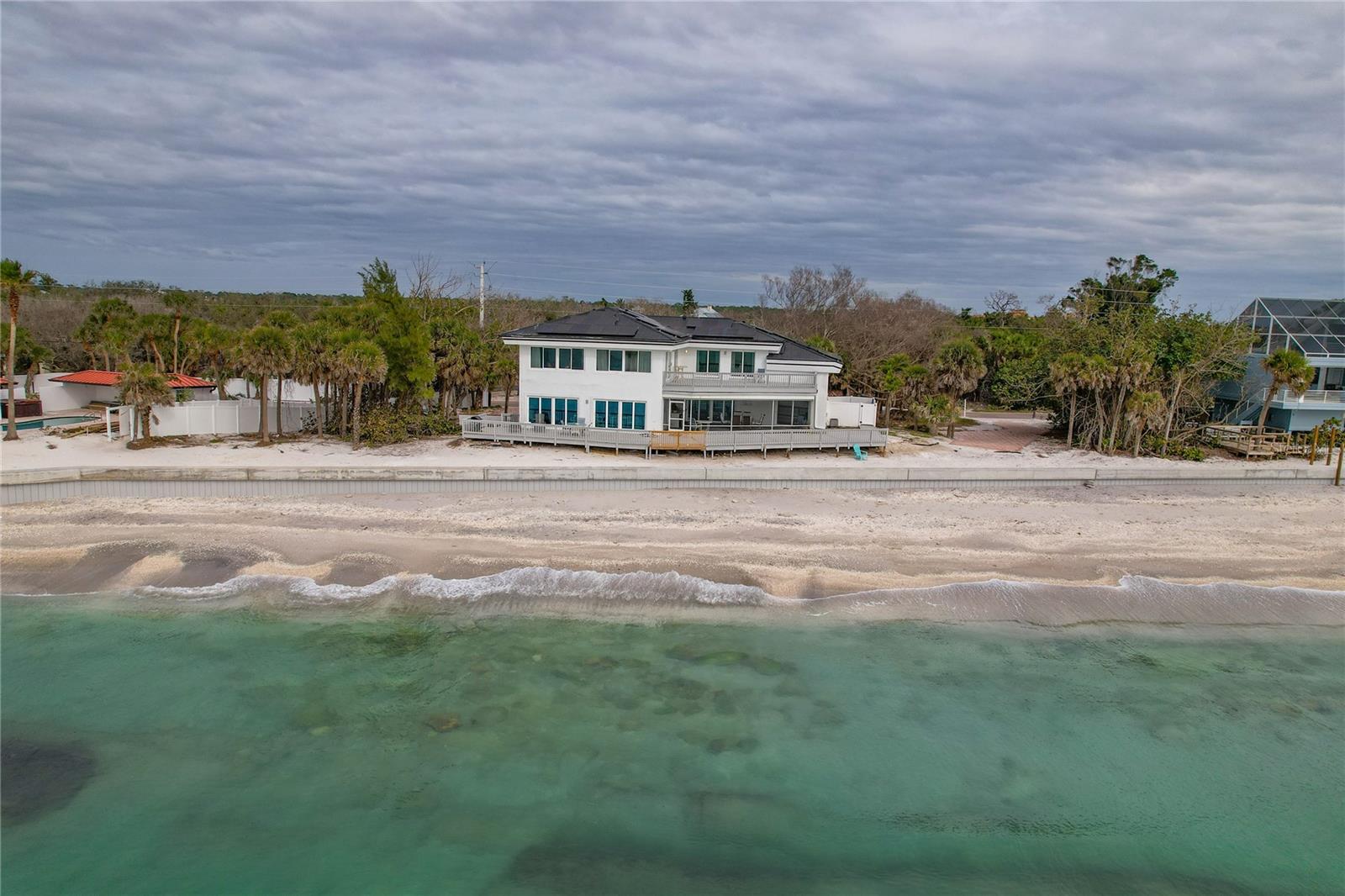 INVESTOR ALERT. PROPERTY DAMAGED AS A RESULT OF RECENT STORMS. SOLD AS IS. REALISTIC OFFERS WILL BE CONSIDERED. Luxury Estate With Direct Manasota Key Gulf Access That Can Only Bring To Mind The Inspirational Classic Waterfront Compounds That Were Created For Only The Privileged Few. Unobstructed Open Water Views With 193 Ft. Of Private Beach Defines This 5 Bedroom, 5.5 Bath With 2 Upper (28'x19') And Lower Level (30'x25') Balconies While Only Being Steps Away To The Shoreline. Neutral Decor, Tasteful Accent Floor To Ceiling Built-Ins And Abundant Natural Light Streaming Through The Picture Windows Only Enhances The Living Space And The Sense One Is Living Within A Natural Environment Complimented Only The Native Mature Florida Landscaping Which Offers The Privacy One Desires. All The Bedrooms In This Nearly 3500 Sq. Ft. Home Are Suites Offering The Meditative Solitude That One May Seek. Impressive Architectural Designed Bright Open Spaces Transition You From Room To Room That Feature Soaring Ceilings, Arched Entry-Ways, Including A Cozy Fireplace With Water Views From Nearly Every Room. The Generous Primary Bedroom En-Suite, Guest Bedroom And Office/Den Are Located On The Main Floor For Ease Of Access With A Secondary Primary En-Suite Located On The Second Floor If One So Chooses. The Spacious Kitchen Is Designed For "Gathering" And Trying One's Luck With That New Recipe That Just Looked Just So Delicious! Solid Wood Cabinets, Stainless Steel Appliances, Granite Countertops, Breakfast Bar And Generous Walk-In Pantry All Open To The Casual Dining Area And Family Room With Its Bank Of Widows Overlooking The Ever-Changing Water Views. When It's Time To Retire Just Walk-Up To The Second Floor And You Will Find The Loft Area With Wet Bar, An Additional Master En-Suite With Jetted Tub, Guest Suite Outfitted With Twin-Beds For The Youngsters And An Additional Bedroom En-Suite. All Three Bedrooms Offers Access To The Shared Second Floor Balcony- Wonderful For Sun-Bathing Or Lazily Watching For Native Birds And The Occasional Dolphins. Rainy Day? The Huge First Floor Covered Lanai Is Perfect For Entertaining Your Guests-Rain Or Shine. The Metal Roof And Shoreline Sea-Wall Offers You The Peace Of Mind When The Florida Weather Kicks Up Its Heels And Triple Zone A.C. Will Efficiently Assist In Keeping The Electricity Costs Down. The Oversized Two-Car Garage With Circular Driveway Provides For Ample Parking. So Whether Utilizing This Very Special Residence As Your Private Oasis Or As An Investment Property Or Some Of Both The Location Offers Old-Florida Charm On One Of Florida's Most Pristine Coasts While Still Offering Convenience And Easy Access To All The Amenities And Travel Destinations That Florida Is Only Too Happy To Share. Please Take A Moment To Enjoy The Enclosed Video Tour: http://tinyurl.com/nh6eapfw Your Private Showing Is But A Phone Call Away.