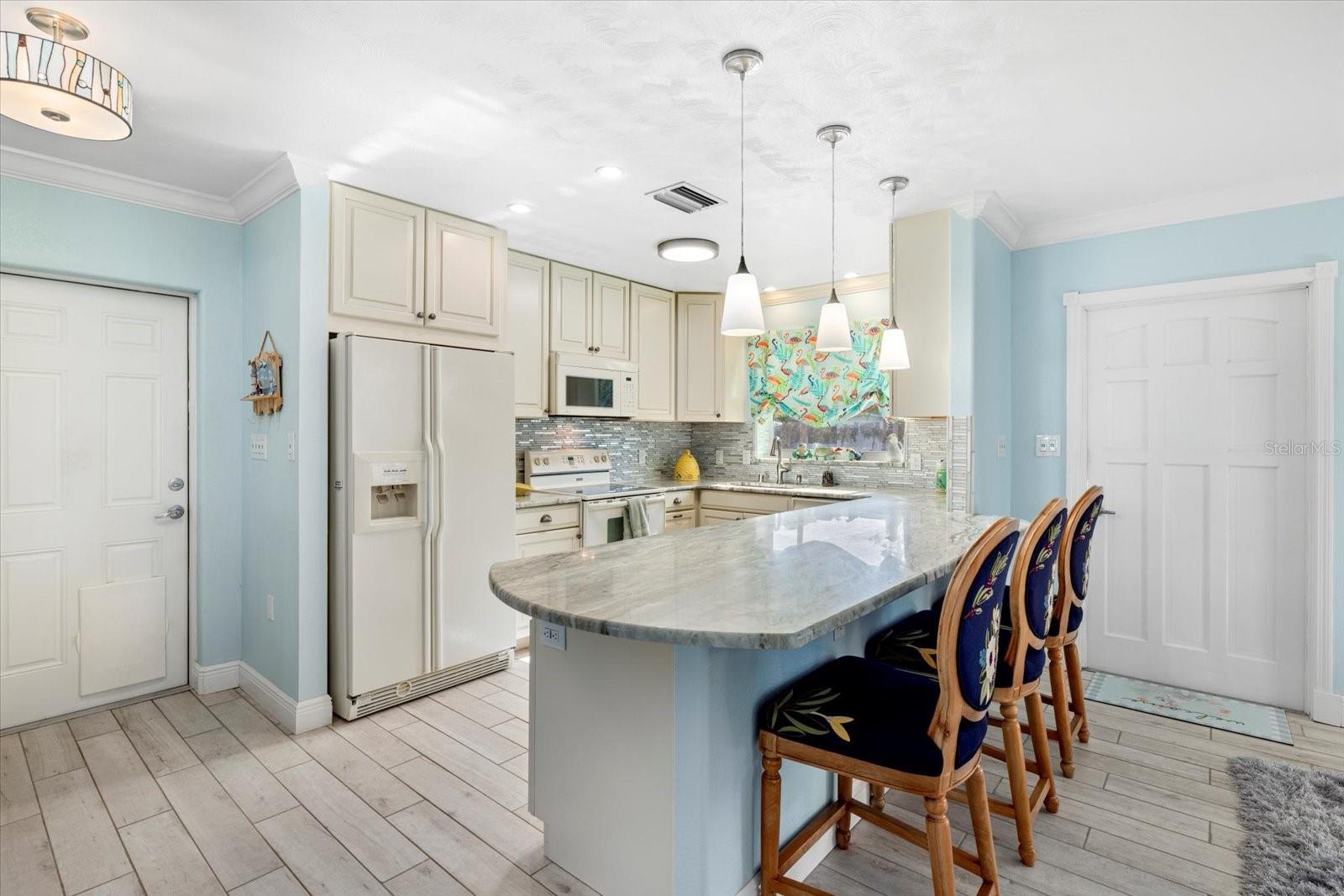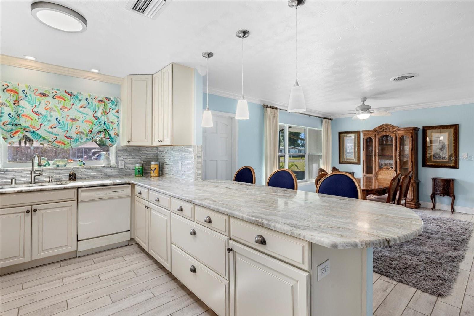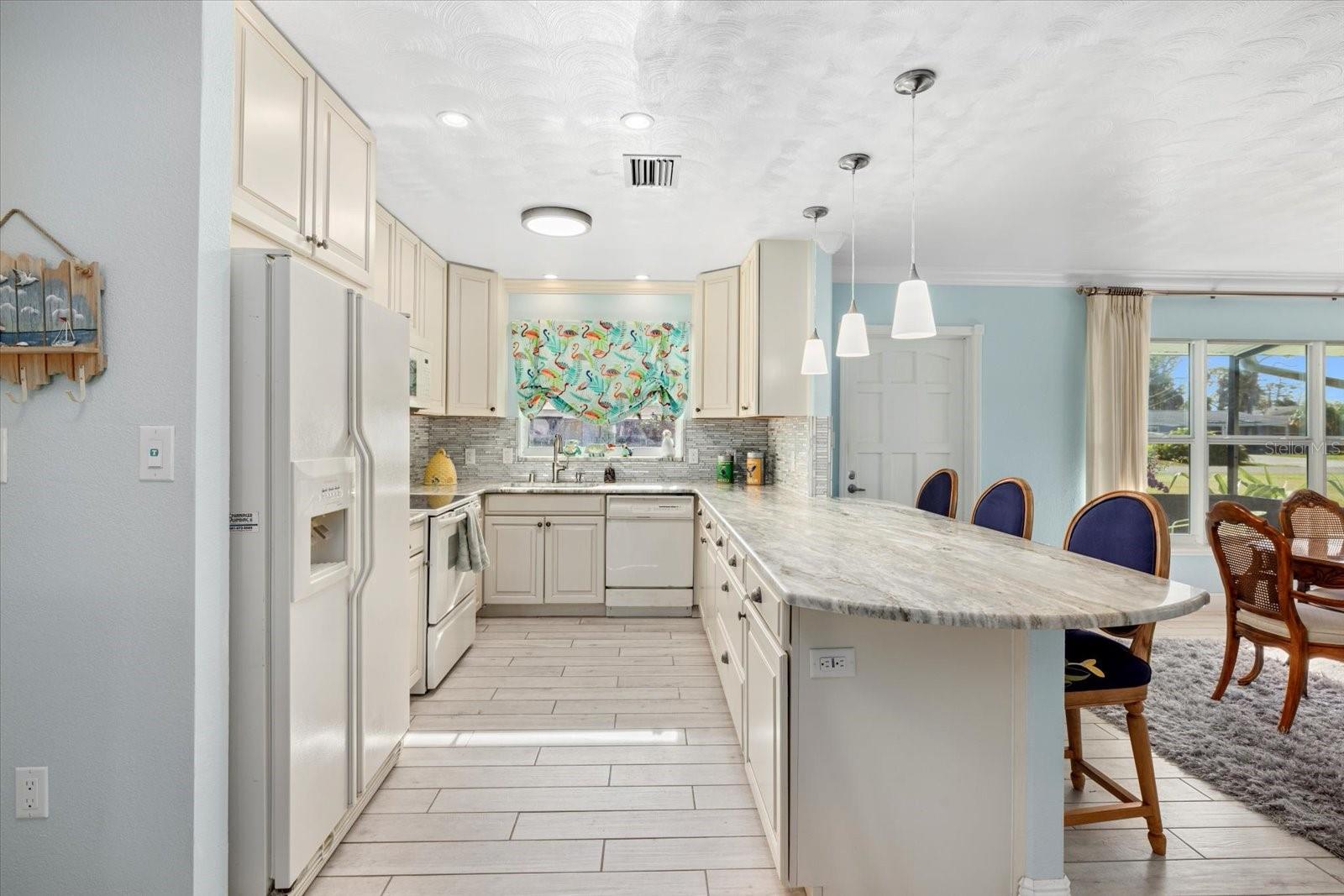 HUGE PRICE REDUCTION! WATERFRONT! Step into this stunning 4-bedroom, 2-bathroom home, perfectly positioned on the serene shores of Gottfried Creek, leading directly into LEMON BAY. This prime location offers an idyllic setting for fishing enthusiasts and bird watchers alike, thanks to the surrounding lush mangroves that create a natural paradise right at your doorstep. Inside, the home boasts an open floor plan with tile throughout, enhancing the airy feel of the spacious living areas. Granite countertops add a touch of elegance to the well-equipped kitchen, which is designed for both functionality and style. Enjoy the abundance of natural light from the numerous impact-resistant windows that also offer peace of mind and energy efficiency. The huge bonus room added onto the back of the house is a highlight, providing extra space for relaxation or entertainment, bathed in sunlight. Bedrooms are generously sized, offering ample space for family and guests, while the bathrooms feature modern fixtures and finishes. Most of the furniture is also included with this home. Step outside to discover a backyard oasis designed for the ultimate outdoor living experience. A deck overlooks the creek, perfect for enjoying breathtaking sunsets that paint the western skies. The property includes a private dock with a boat lift, ideal for boating enthusiasts, and two sheds offer additional storage space. Located in a peaceful community, this home is not just a residence but a lifestyle. Whether you’re fishing off your private dock, watching the birds, or simply soaking in the waterfront ambiance, this property offers a unique opportunity to own a piece of paradise. Don’t miss out on this exceptional waterfront home, where every day feels like a vacation. Schedule your visit today and start living the dream on Gottfried Creek.