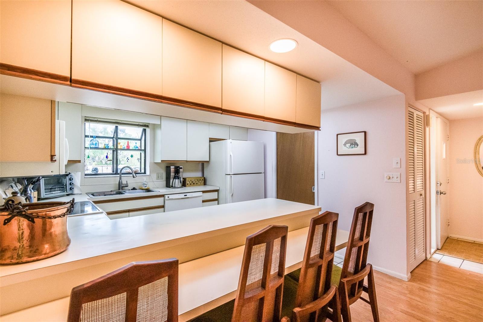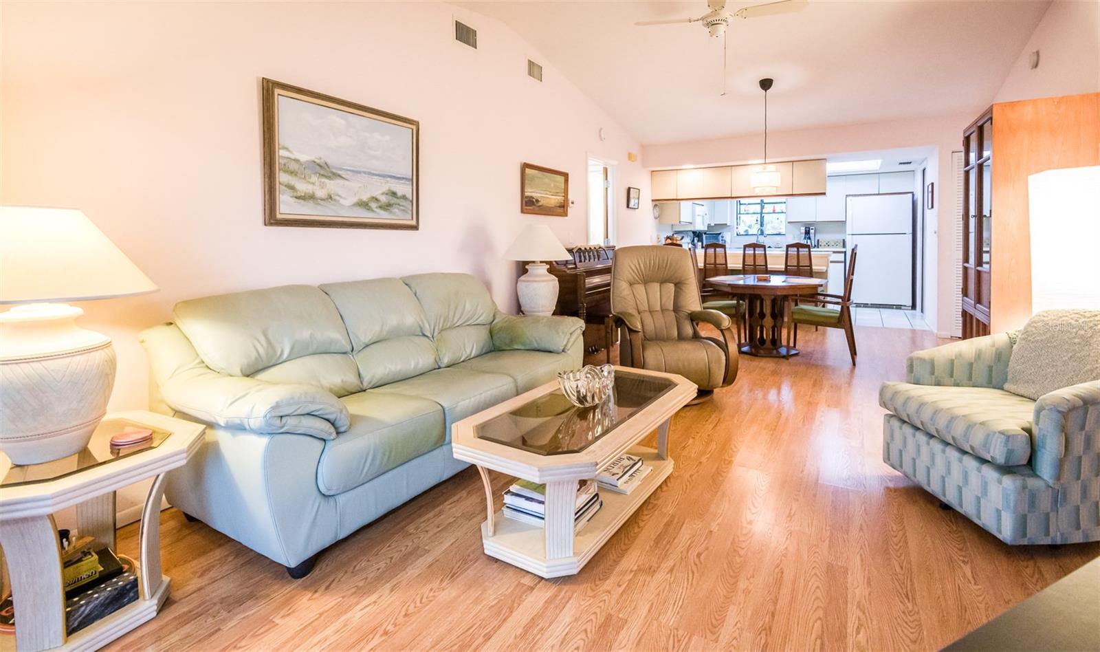 Priced well below market valuation. 2 Bedrooom, 2 Bathrooms with large lanai that delivers relaxation and a nice view of the large community pool. Great investment opportunity -rents like a dream, or make it your forever home. The charm and beauty of this condo and its' community is unique with lush landscaping and pristine grounds care. PEACE OF MIND WITH THE GARAGE BELOW UNIT (ELEVATION), A NEW ROOF, AND TOTAL RENNO OF OUTIDE OF THE BUILDING AND GROUNDS. NEW A/C IN 2024. 5- 10 minutes from Englewood Beach, Manasota Key, or take the ferry to Palm Island. Please view the video tour to get the vibe of this lovely spot. Sold furnished/turnkey, or not - you choose.