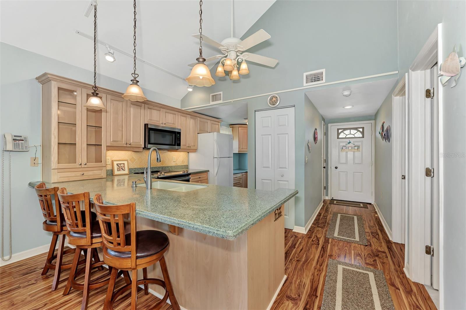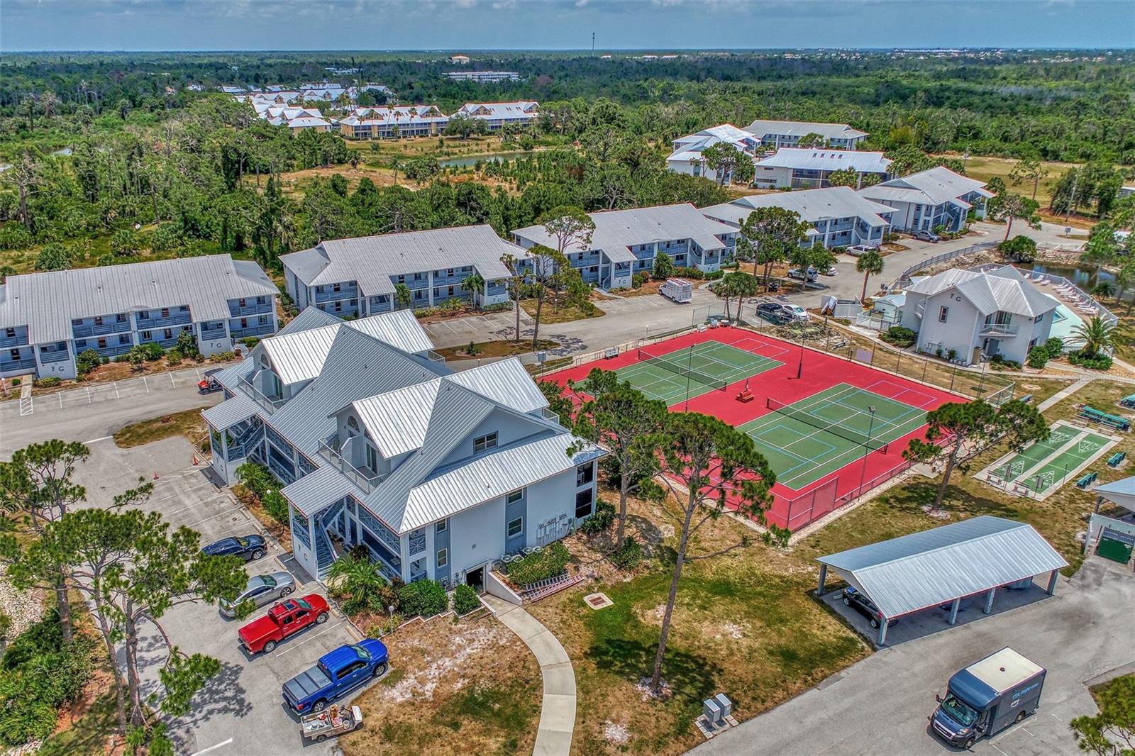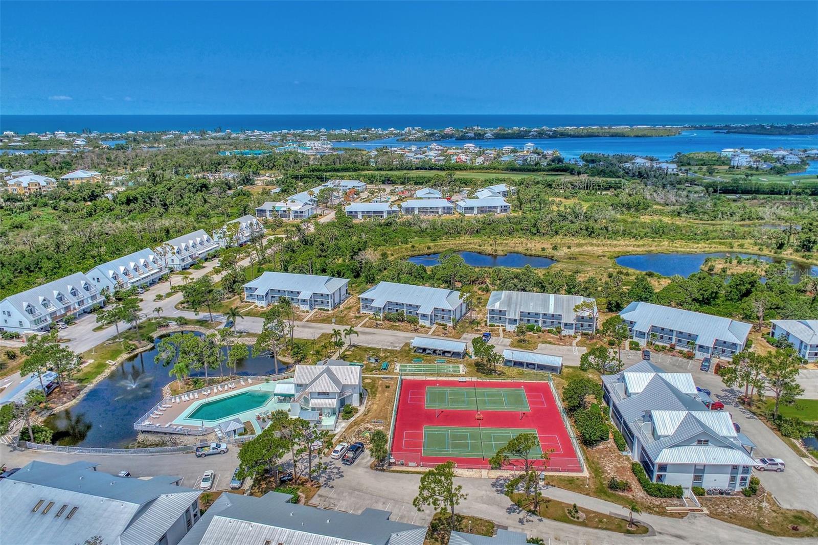Just Bring Your Clothes & MOVE-IN IMMEDIATELY..This Exquisite 4/3 Condo is COMPLETELY TURN-KEY & Ready for Your Enjoyment. Overlooking the Tennis & Pickleball Courts, It is Nestled in the Heart of Englewood. Suitable for use as a Primary Residence, Rental (Leasing Allowable) or Snowbird, this Oversized END UNIT offers 3 Different Balcony Options. Primary Bedroom, Bedroom #2 and Two Full Baths are all Downstairs, The Main Bath has been UPDATED for Your Comfort. Additional Features Include an Open Kitchen/Living Concept, In-Unit Laundry Area, Additional Storage on Balcony. Recent Upgrades Include a Newer AC, Impact Windows, Sliding Doors, Vertical Blinds, Ductwork & Appliances, The Buildings have Newer Metal Roofs. Situated in an All-Ages Community with 2 Pools, Tennis Courts, Pickle ball, Shuffleboard, Full Gym, Clubhouse & BBQ Grilling Area. Embrace the Vibrant Social Scene Tailored to Your Lifestyle or Bask in the Vibrancy of a Community Built for Socializing: You have choices here!! HOA Includes Insurance. Close Proximity to Grocery, Hardware, Post Office and Medical Services. Surrounded by Nature and Convenience. Make Your Dream a Reality Today and Embrace Your Best Life! Don Pedro State Park 1.6 miles, SRQ Airport 47 miles, Call To View this Piece of Paradise Today!!!