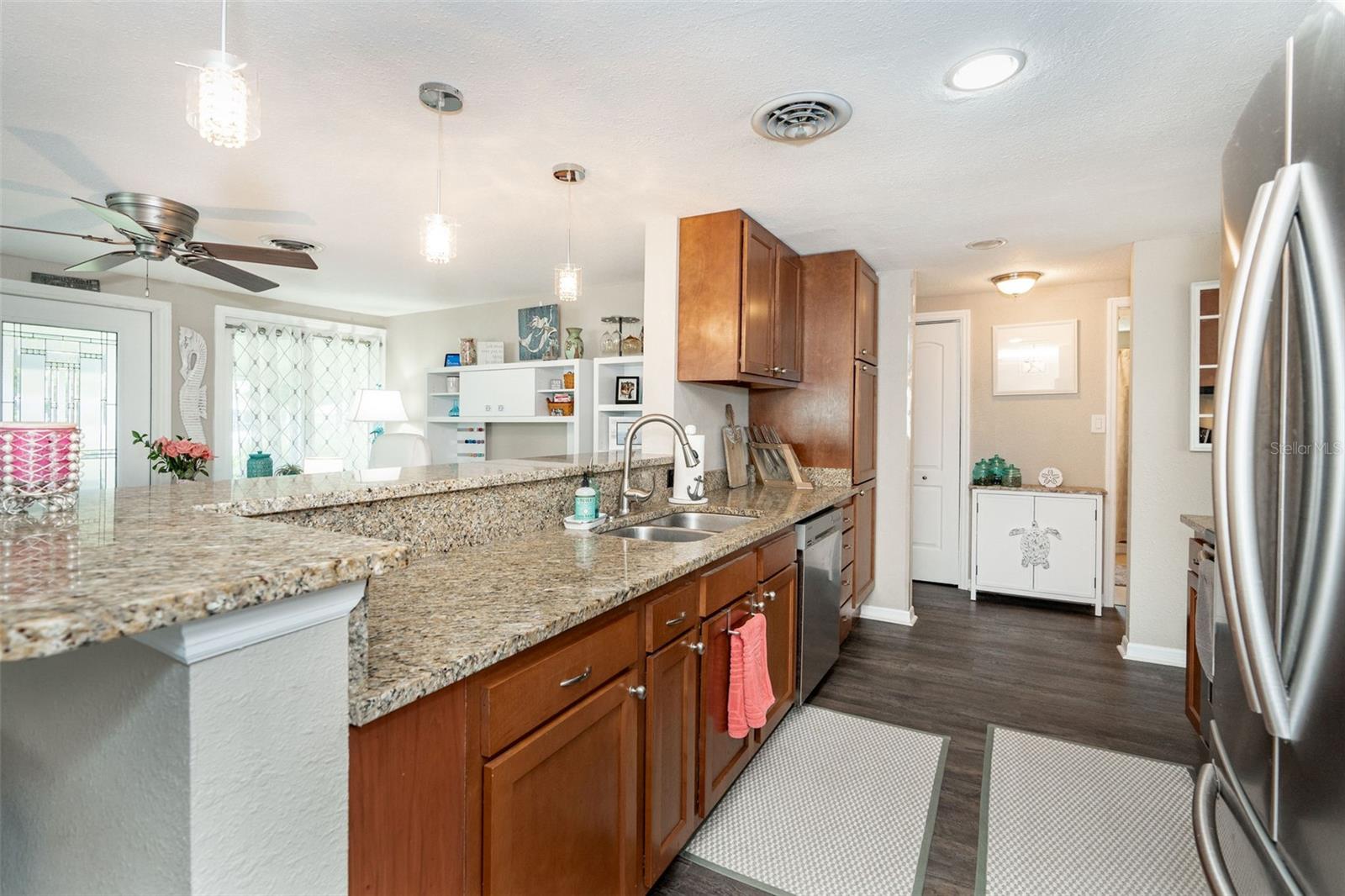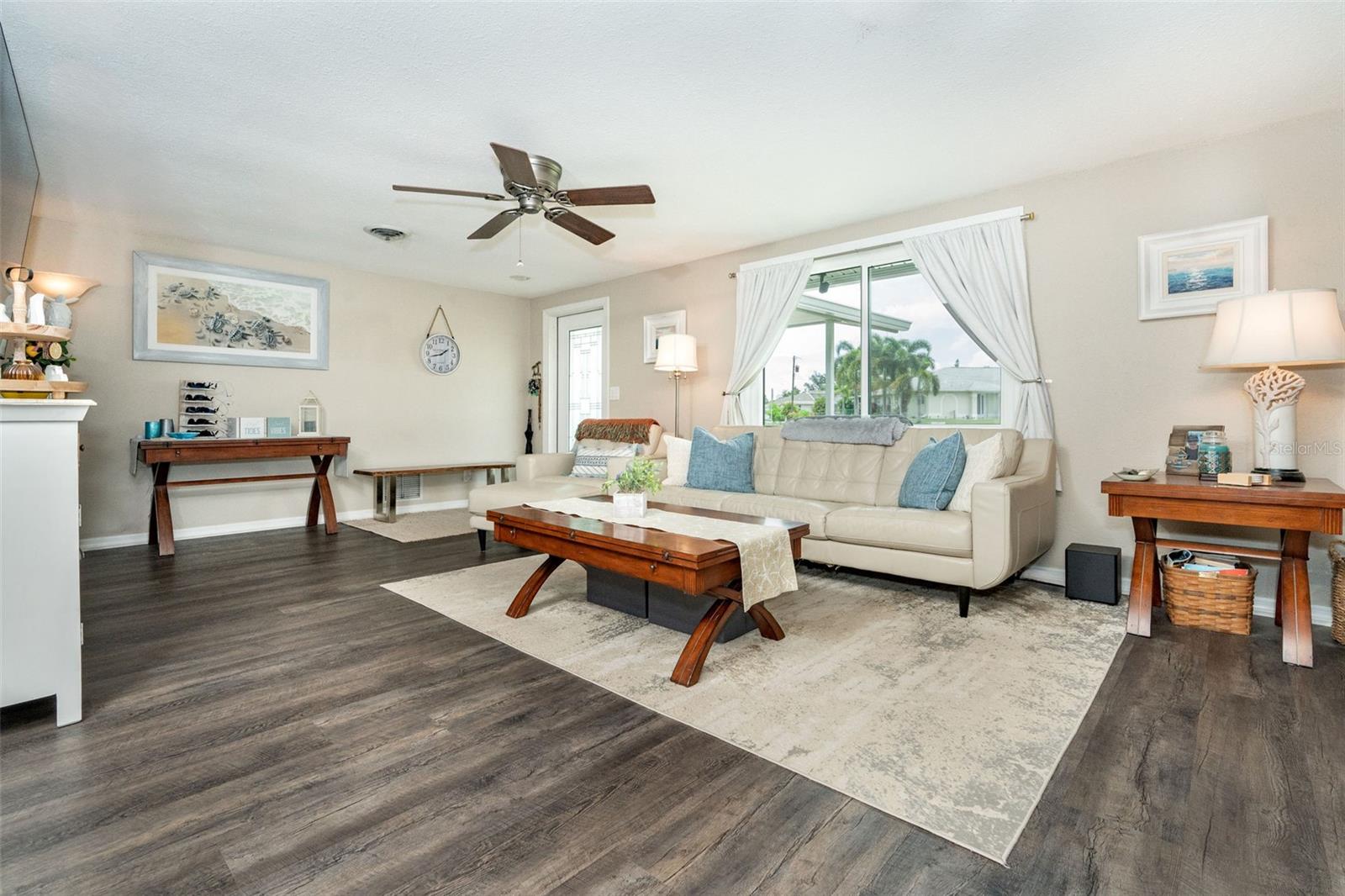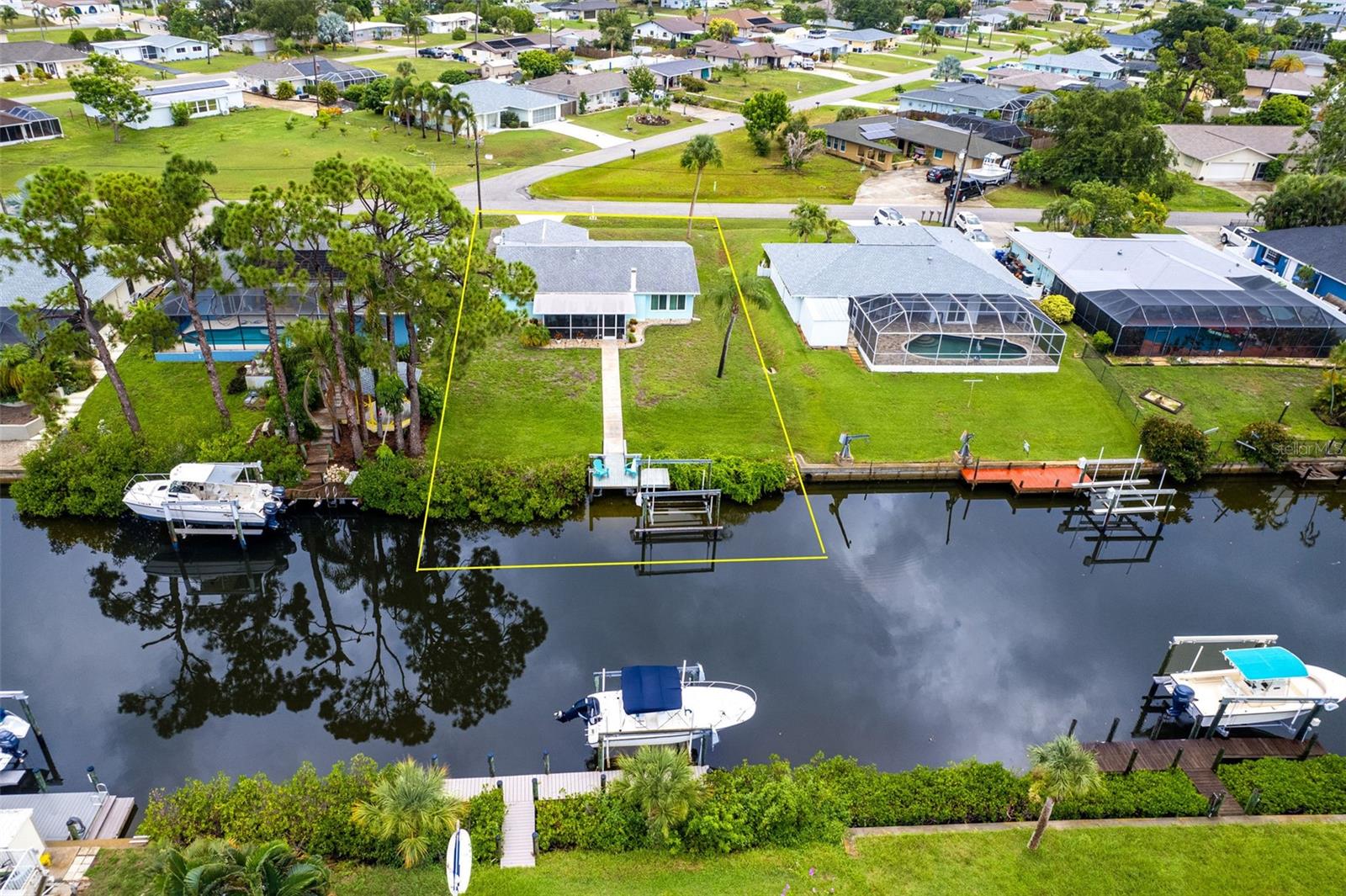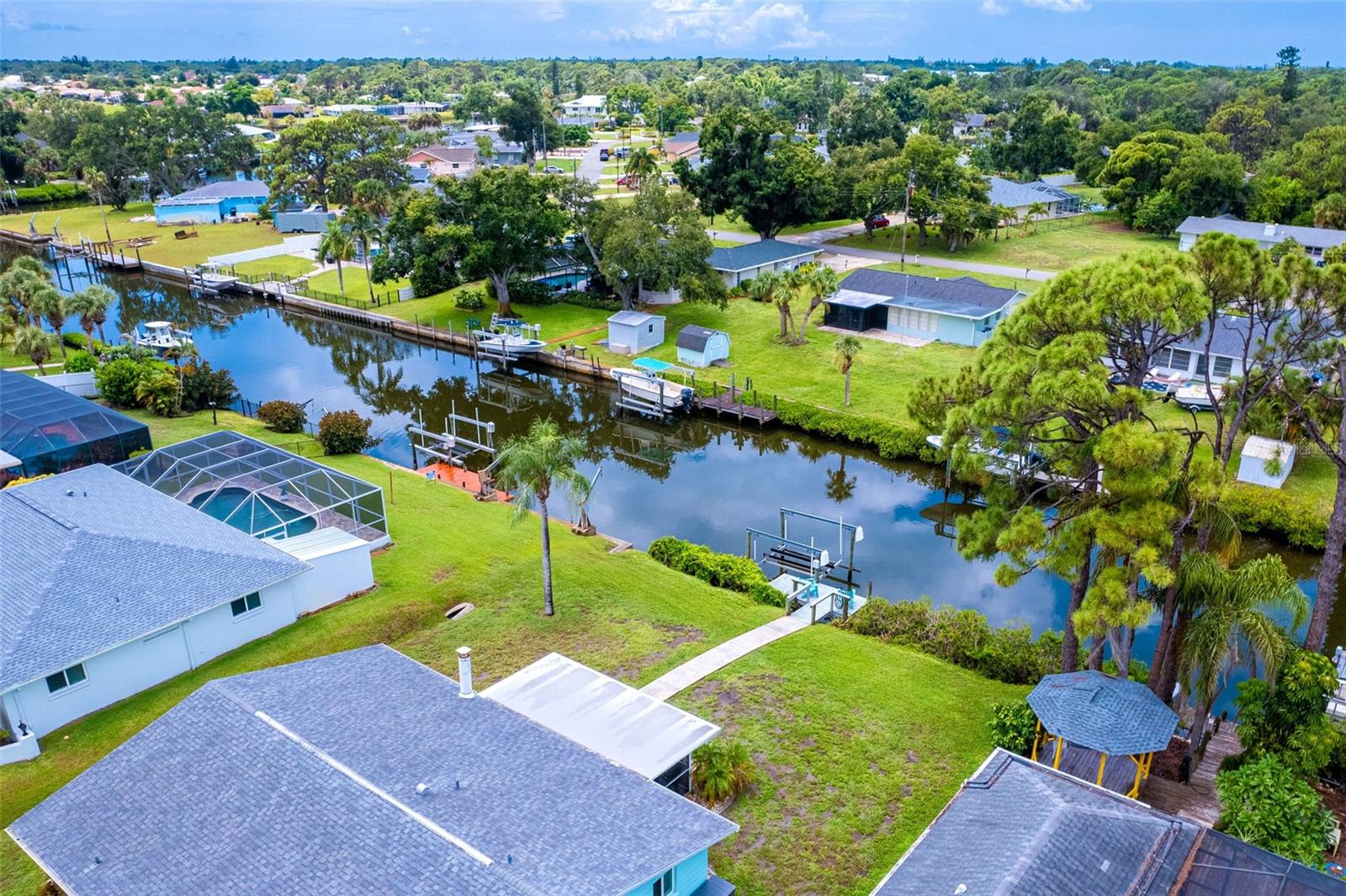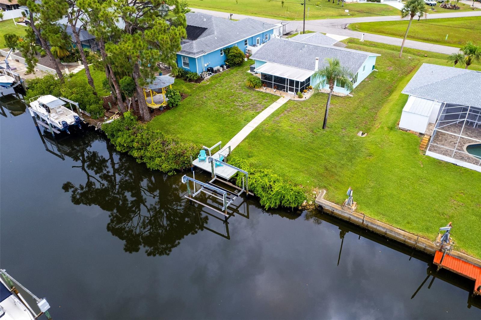 NO HURRICANE DAMAGE FROM DEBBIE, HELENE OR MILTON NO FIXED BRIDGES, DIRECT ACCESS TO FORKED CREEK & THE ICW. 17" X 6" DOCK WITH WATER, ELECTRIC & 10,000 LIFT. IMPACT WINDOWS & DOORS THROUGHOUT. FULLY UPDATED. MOVE IN READY. Home has 75' of water frontage. Overbrook Canal is 80' wide and 4.5' deep. A/C unit replaced in 2018, Water Heater replaced in 2020. New Roof & Soffits installed in 2015. Appraisal dated 8.2.24, Four Point & Wind Mitigation Inspections dated 8.1.24 Available. This stunning 2-bedroom 2-bath waterfront home has been completely remodeled and repainted from Floor to Ceiling, inside and out. Boasting direct access to the ICW, minutes from Stump Pass and the Venice Inlet, this home is a boater's dream. Built in 1972 this charming residence boasts an Operational wood burning brick fireplace, one car garage, screened in back patio with stamped concrete flooring matching the driveway and walkway down to the canal.