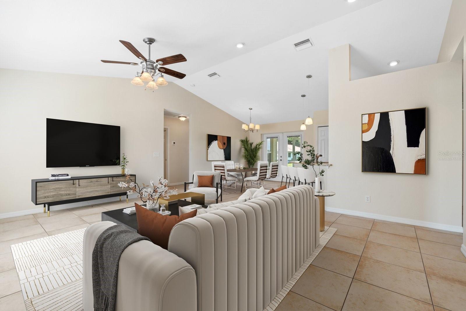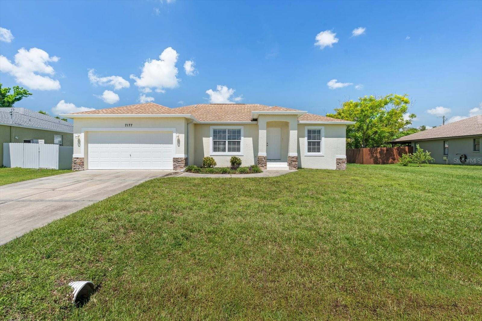 One or more photo(s) has been virtually staged. Welcome to your ideal Florida retreat! Nestled in the charming community of Englewood, this inviting 3-bedroom, 2-bathroom home with a 2-car garage is just minutes from stunning Gulf beaches, top-rated schools, shopping, dining, and endless recreation options. It offers a great foundation for your Florida dream, including room to park your toys! Added bonus: this property has proven income potential! Whether you're seeking a primary residence or a fantastic investment opportunity, this delightful Englewood home is ready to become a cherished part of your Florida lifestyle. This beautiful home offers a blend of comfort and convenience. Situated in a non-HOA neighborhood, this property is ideal for those seeking a relaxed and enjoyable Florida lifestyle. Step inside through a cozy front porch, and you’ll immediately feel at home in the bright, open living space, where large windows and French doors flood the area with natural light. The open floor plan connects the living room, dining area, and kitchen, making it ideal for entertaining and daily living. The kitchen is equipped with modern appliances, granite countertops, ample cabinetry, and a convenient breakfast bar, ensuring every meal is a pleasure to prepare. The spacious primary suite provides a tranquil retreat with a walk-in closet and an en-suite bathroom. Two additional bedrooms are set apart for added privacy and share a well-appointed bathroom, offering plenty of comfort and convenience. As you step from the 2 car garage into the 'drop zone' (the Florida version of a mud room for those of you in the north), many of you will find joy in creating the ideal space for stowing away all your essentials. After dropping your gear and freshening up at the utility sink in the passthrough, step out to the covered lanai to relax and recharge in your own private sanctuary. The covered patio is ideal for outdoor dining, entertaining, or simply relaxing while enjoying the beautiful Florida weather, and the oversized backyard is a canvas waiting for you to design the rest of your Florida dream, whether that includes a pool, garden, or outdoor lounge! Recent updates include a brand new AC unit installed in 2023, a thorough roof inspection post storm, plus it’s in an X flood zone, meaning no additional flood insurance is required, currently!