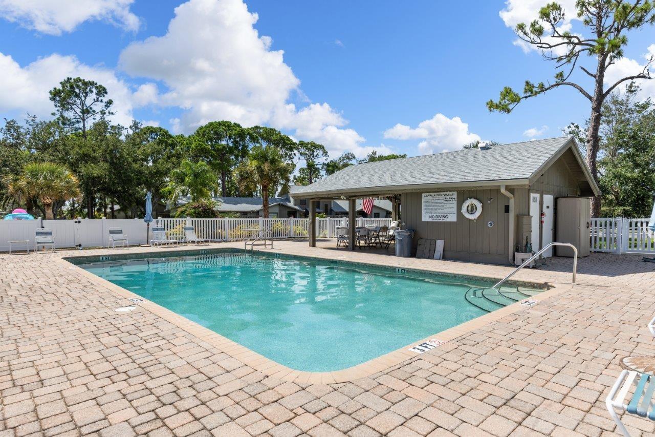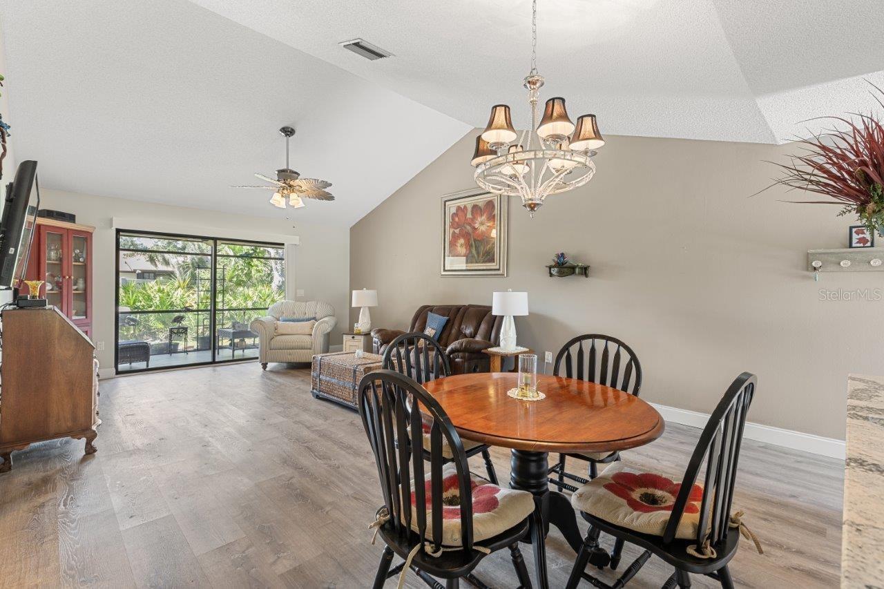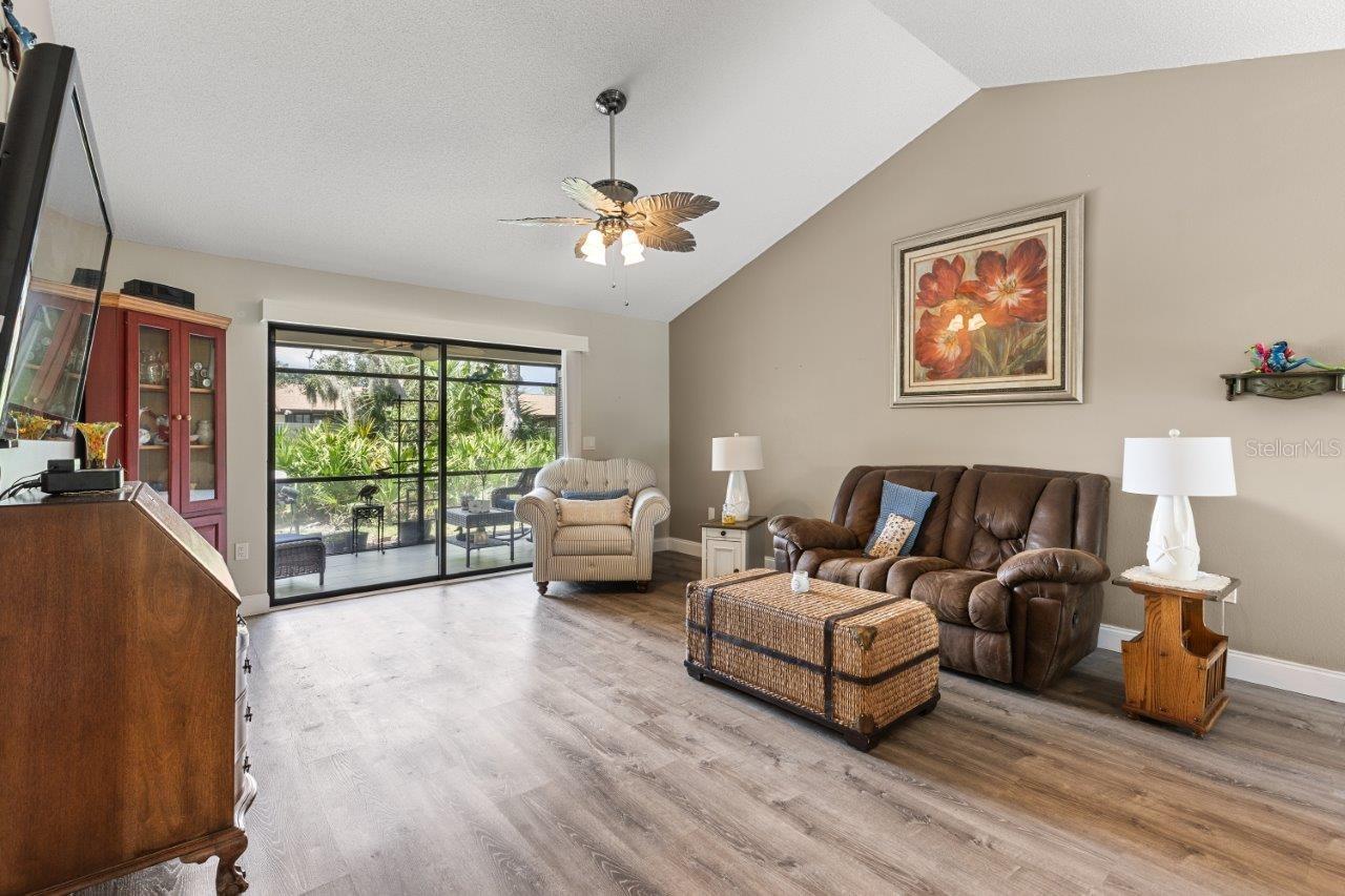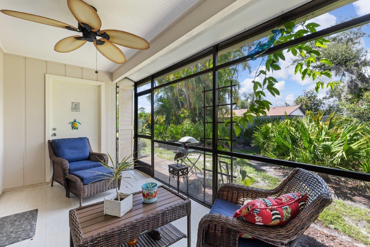 Discover the charm of this spacious walk-up condo with a semi-open floorplan, featuring wood flooring throughout and high vaulted ceilings that create an airy, inviting atmosphere. The beautiful, fully updated kitchen is a chef's delight, boasting granite countertops, new stainless-steel appliances, a stunning backsplash, ample cabinetry, and a convenient breakfast bar. The great room is the heart of this home, offering large sliding glass doors that open to the screened-in lanai, perfect for enjoying peaceful moments outdoors. The owner's suite features a walk-in closet, direct access to the screened-in lanai, and an ensuite bathroom with a walk-in shower. Located in the desirable Gasparilla community, a vibrant 55+ neighborhood, this condo offers fantastic amenities, including a community pool, shuffleboard courts, a kayak launch, and rentable boat slips. This community is only a short boat ride to Lemon Bay and the Gulf, making it an excellent spot for boat lovers! Is this condo your perfect match? Schedule a showing today!