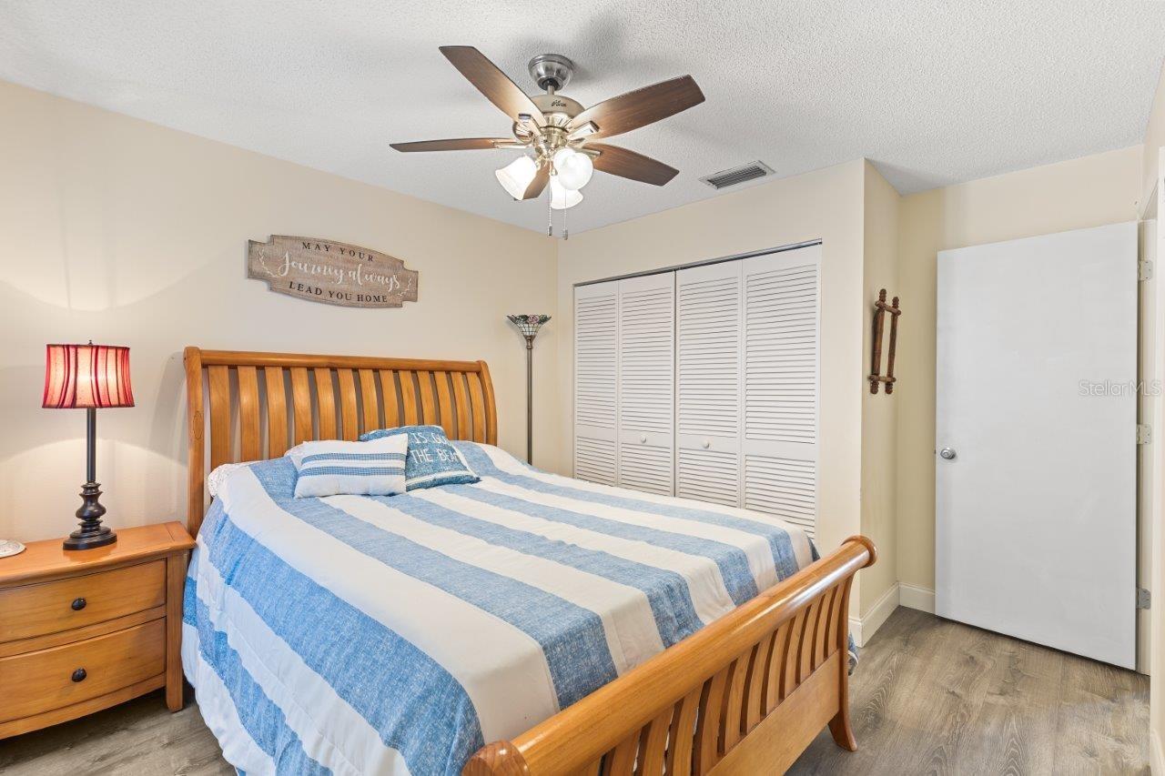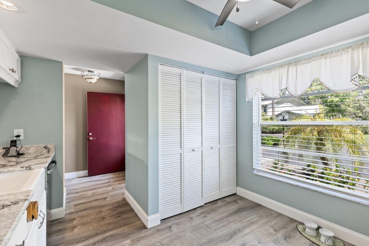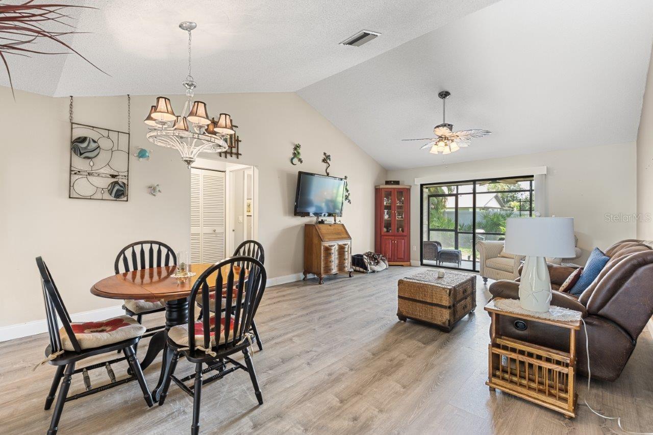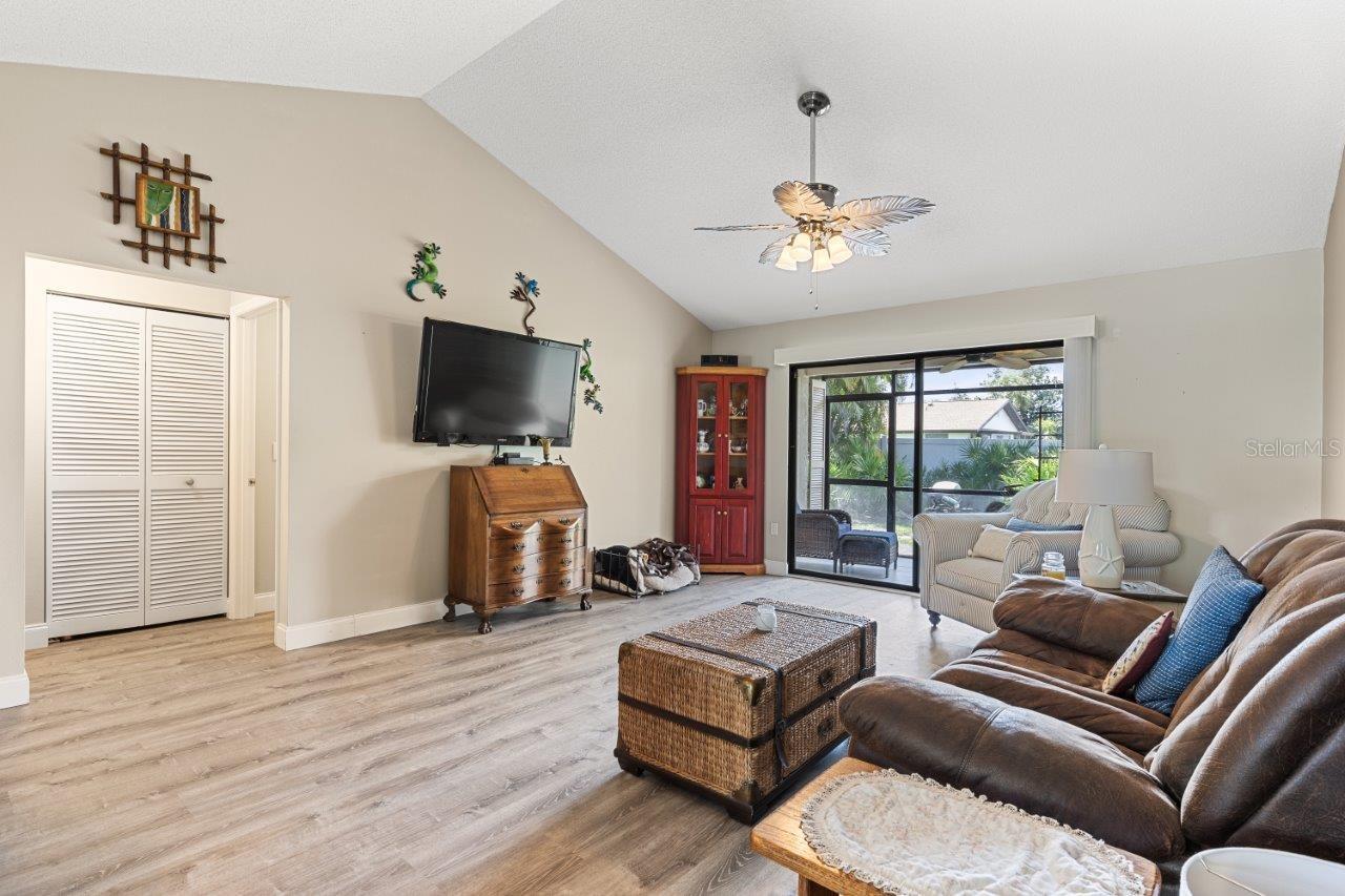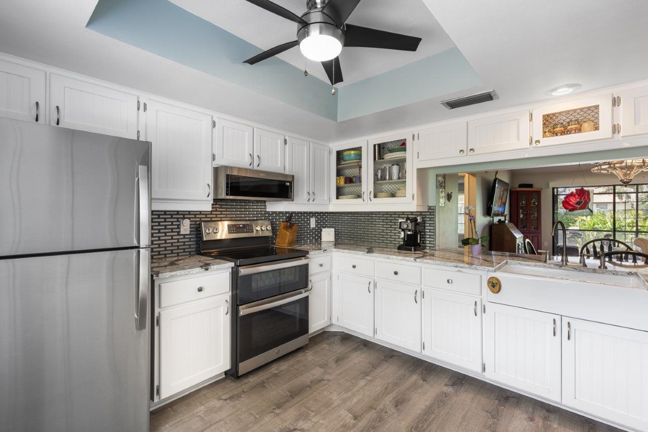 Discover the charm of this spacious walk-up condo with a semi-open floorplan, featuring wood flooring throughout and high vaulted ceilings that create an airy, inviting atmosphere. The beautiful, fully updated kitchen is a chef's delight, boasting granite countertops, new stainless-steel appliances, a stunning backsplash, ample cabinetry, and a convenient breakfast bar. The great room is the heart of this home, offering large sliding glass doors that open to the screened-in lanai, perfect for enjoying peaceful moments outdoors. The owner's suite features a walk-in closet, direct access to the screened-in lanai, and an ensuite bathroom with a walk-in shower. Located in the desirable Gasparilla community, a vibrant 55+ neighborhood, this condo offers fantastic amenities, including a community pool, shuffleboard courts, a kayak launch, and rentable boat slips. This community is only a short boat ride to Lemon Bay and the Gulf, making it an excellent spot for boat lovers! Is this condo your perfect match? Schedule a showing today!