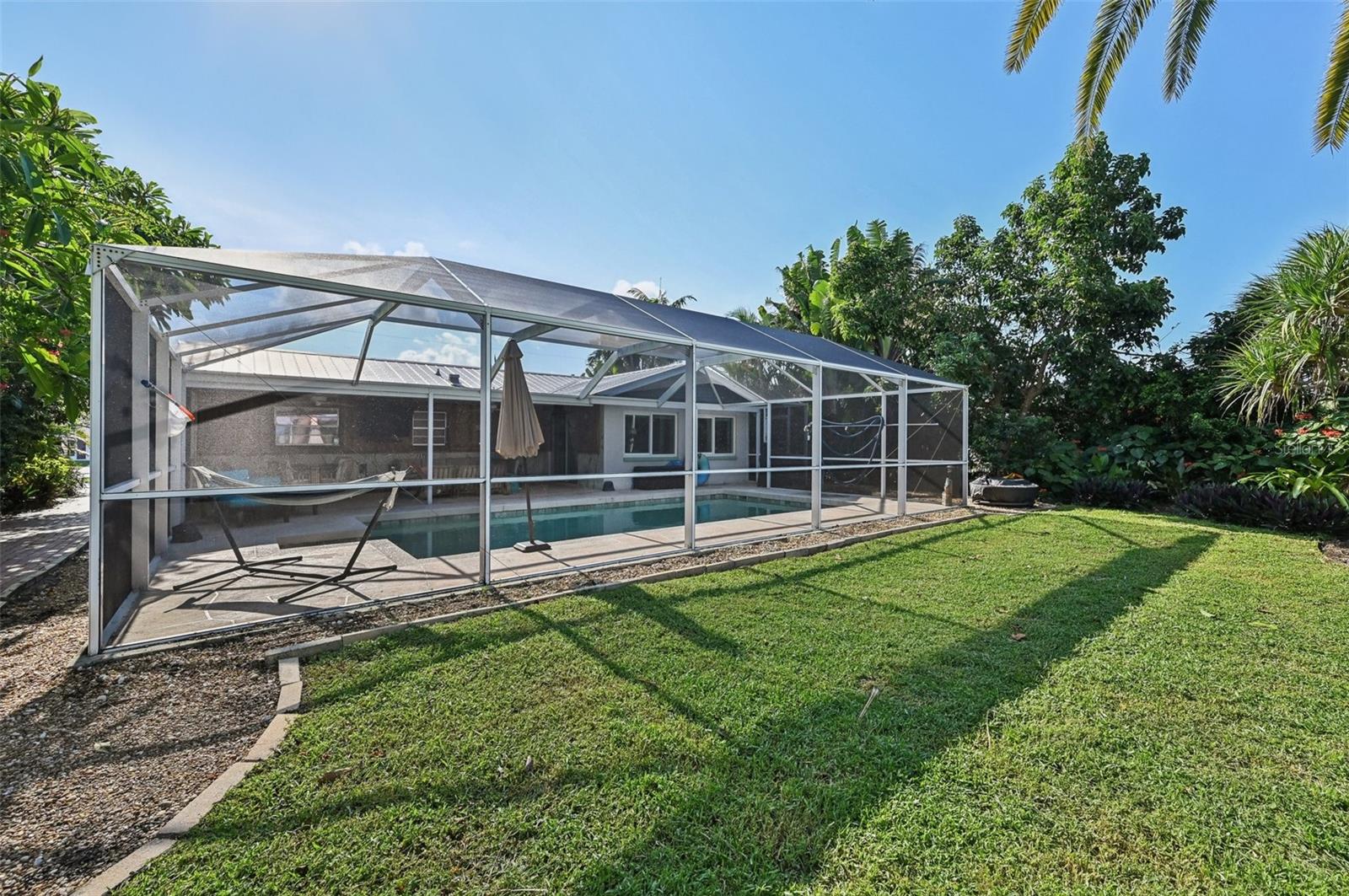 HAVE YOU EVER DREAMED OF HAVING PRIVATE DEEDED BEACH ACCESS? This TURN-KEY* home in the May Terrace neighborhood is a part of the Englewood Gardens Beach Club for year round/homestead residents, for a very minimal yearly fee! NO FLOOD ZONE! NO DAMAGE FROM HURRICANES FOR THIS WELL PROTECTED HOME! Welcome to your tropical oasis in Englewood, Florida! This charming 2-bedroom, 2-bathroom house offers a delightful blend of comfort and coastal living. With 1,214 heated square feet of living space, this home provides ample room for relaxation and entertainment. Step outside and prepare to be amazed by the stunning outdoor space. The inground pool beckons you to take a refreshing dip on warm Florida days, while the private lanai offers a perfect spot to witness breathtaking sunsets. Imagine sipping your favorite beverage as the sky transforms into a canvas of vibrant colors each evening. For the fishing enthusiasts, a private dock awaits your arrival. Cast your line and enjoy the serenity of the lake, all from the comfort of your backyard. The meticulously landscaped grounds create a lush, tropical atmosphere that will make you feel like you're on a permanent vacation. One of the standout features of this home is its durable metal roof, hurricane windows and front door, providing peace of mind during Florida's unpredictable weather. The split bedroom layout ensures privacy for all occupants, making it ideal for those who love to host guests. Located just three miles from the beach, you'll have easy access to sun, sand, and surf. Nearby attractions include downtown Wellen Park and Wellen Park Golf and Country club if you feel like hitting the links, grabbing a bite or shop at the boutique stores. Head to Aigner Park to take a hike on the trails and the picturesque Manasota Key known for its pristine beaches and laid-back atmosphere. For a delightful dining experience, don't miss Farlows On The Water, a local favorite for seafood lovers. Whether you're looking for a permanent residence or a vacation home with excellent rental potential, this Englewood gem offers the best of Florida living. Don't let this opportunity slip away like sand through your fingers! BY APPOINTMENT ONLY - PLEASE DO NOT WALK PROPERTY WITHOUT PERMISSION. THANK YOU. IT IS NOT VACANT! (*very minimal exclusions)
