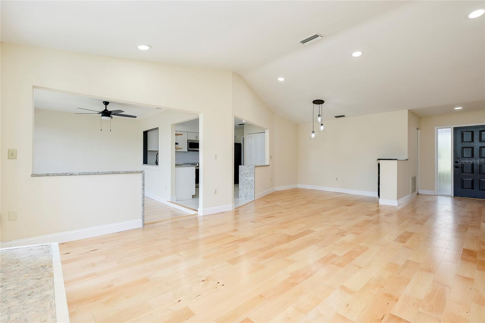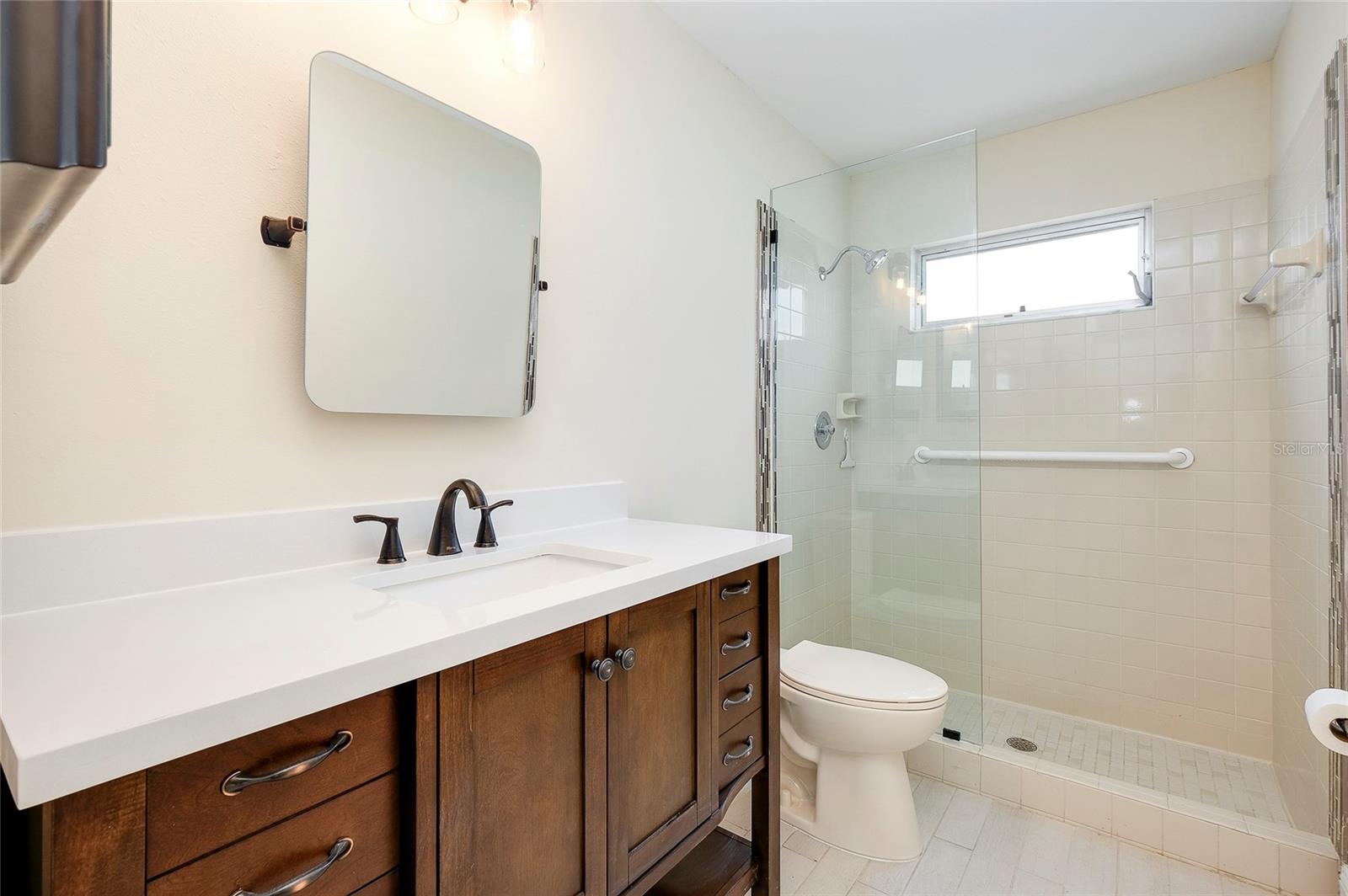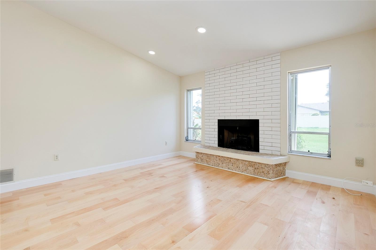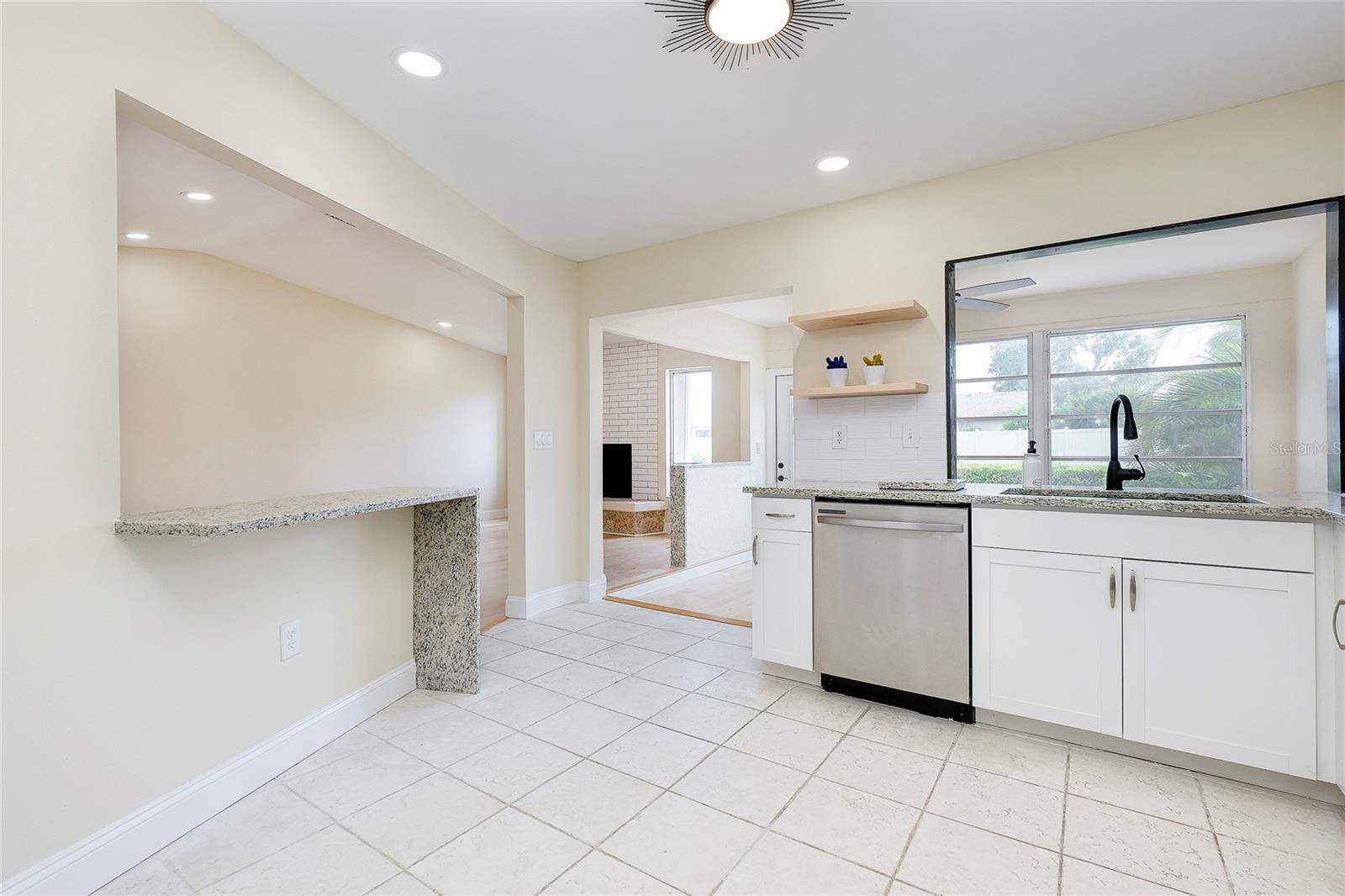This is a lovely and active 55+ community with community pool, community center, Tennis/pickleball courts and much more. A very walkable neighborhood with sidewalks. Only a few miles to the incredibly beautiful beaches, great restaurants and shopping! This home has been completely remodeled with new HURRICAN IMPACT WINDOWS THROUGHOUT! NEW ROOF & EXTERIOR PAINT. All stippled ceiling removed. The kitchen has new cabinets with granite countertops, a lovely eat on counter with a granite waterfall top and all new appliances. In the living room you will find a beautiful masonry fireplace with new tiled surround and hearth, cathedral ceilings, new recessed lighting and maple engineered hardwood floors. There are 2 master suites with maple engineered floors, new sinks, vanities, medicine cabinets and lighting in both bathrooms. The walk in closet is a dream with loads of space. This home also has a sunroom/flex space off of the kitchen and living room. with a door to the very large back patio and a private back yard. The 2 car garage has garage screening and sooooo much built in storage space for all of your storage needs.
