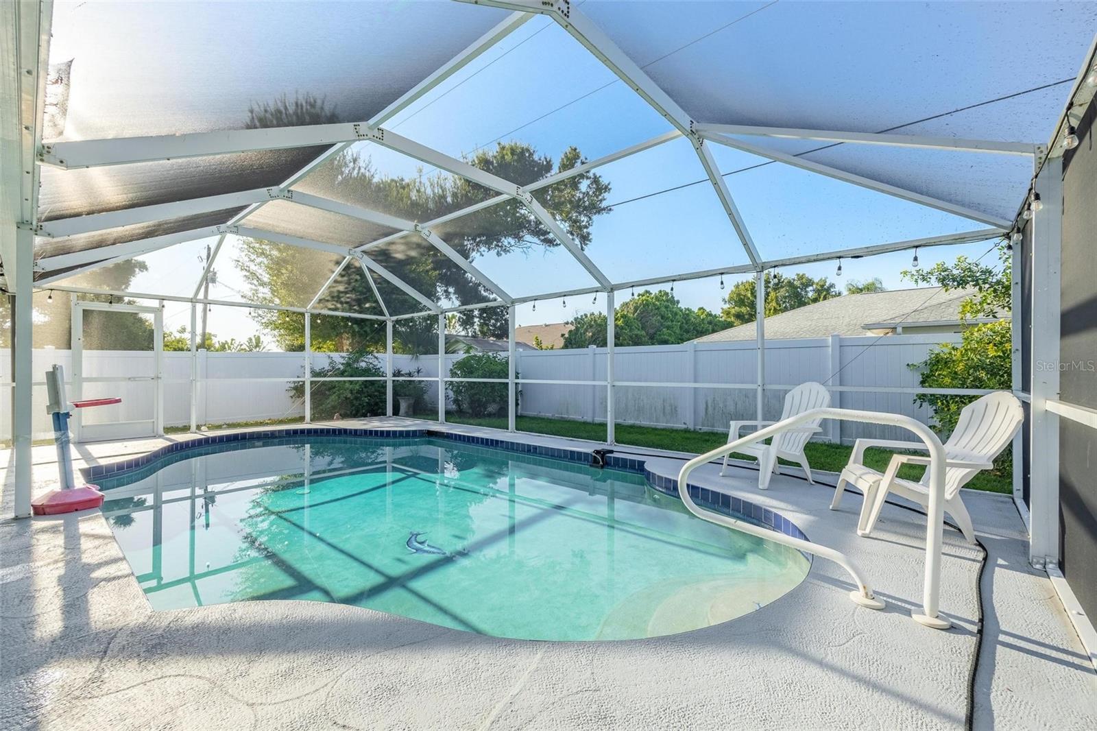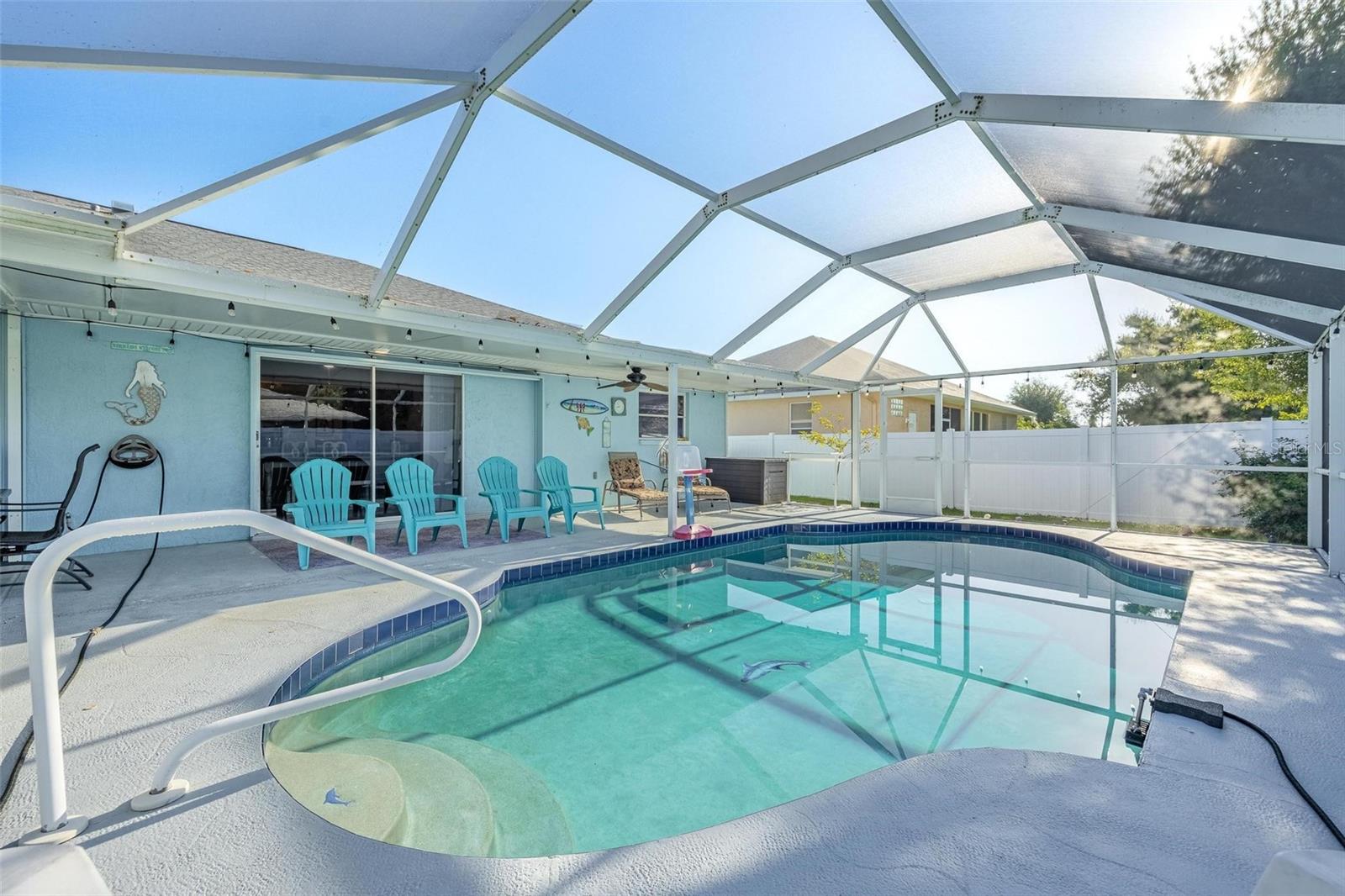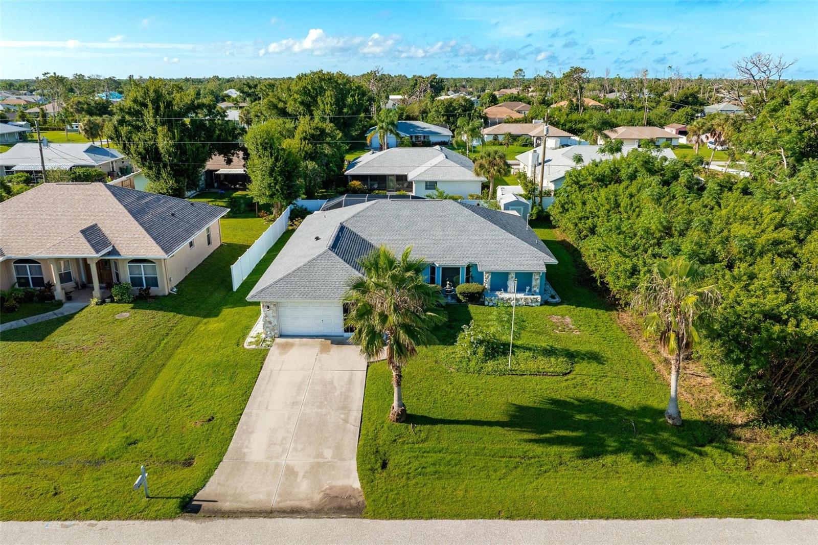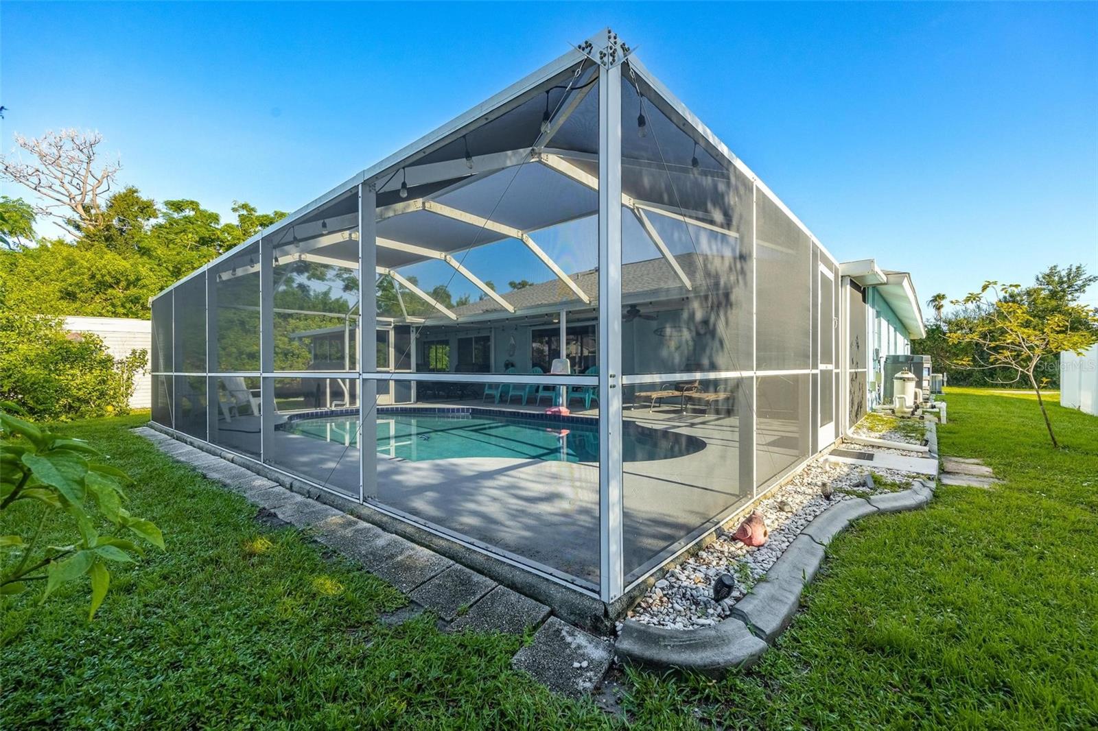 NO HURRICANE DAMAGE OR WATER INTRUSION! MOVE-IN READY TURNKEY POOL HOME in the highly desirable Englewood area! This spacious 3-bedroom, 2-bath residence features a split floor plan, perfect for comfortable living and entertaining. With numerous updates throughout, this home seamlessly blends modern convenience with peace of mind. The open kitchen is both spacious and functional, featuring granite countertops, stainless steel appliances, a breakfast bar, a center island, recessed lighting, a pantry, and roll-out shelving in the cabinets. The Florida room provides additional space for entertaining and offers a stunning view of the beautiful pool, which is complemented by a screened-in lanai and ample covered space for outdoor gatherings. The pool area has been meticulously maintained, and a new pool heater was installed in 2024. The pool screen enclosure was re-screened in 2021, and the partially fenced yard, with mature landscaping, offers privacy from neighbors. A convenient storage shed keeps outdoor essentials organized, and the garage includes screened sliders at the opening for added versatility. Key upgrades include a new roof in 2022, impact-resistant front windows installed in 2017, and new HVAC ductwork added in 2021. The home also features a septic cover, garage door opener, and updated flooring in the main living areas and primary bedroom in 2022. The water heater was replaced in 2024. This home is being sold turnkey, making it an excellent choice for a vacation rental. Located just 5 minutes from shopping, dining, boating, and beaches. Don’t miss out on this opportunity—schedule your showing today!