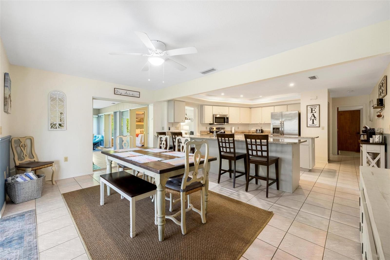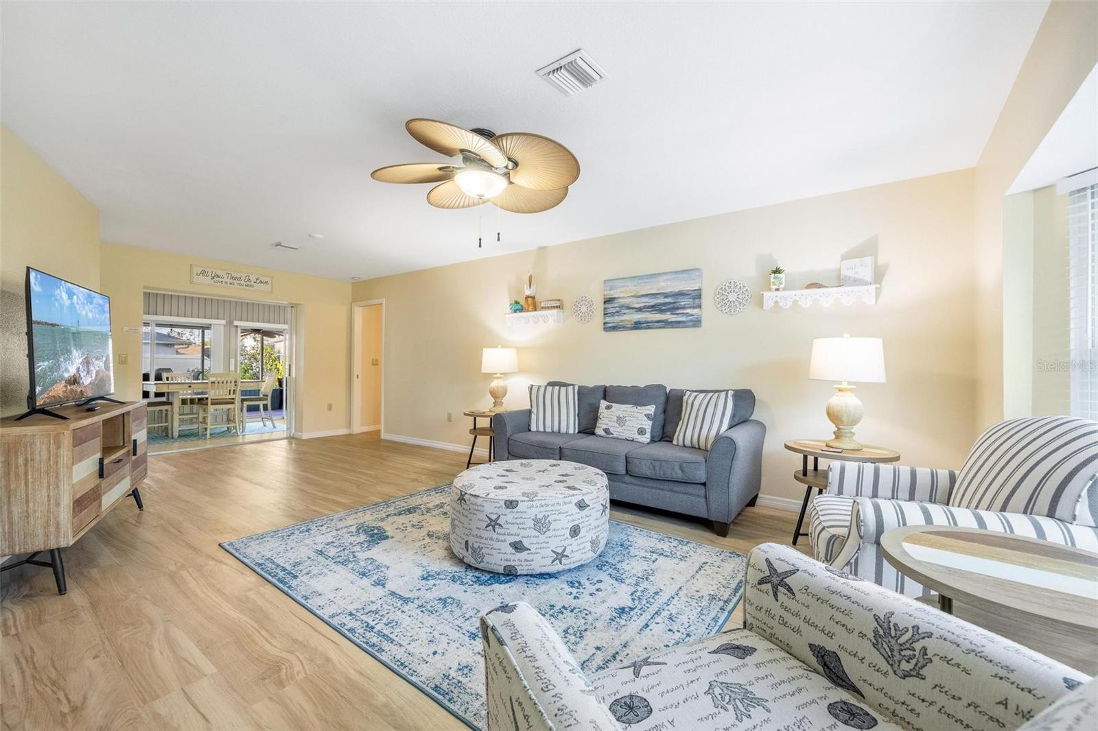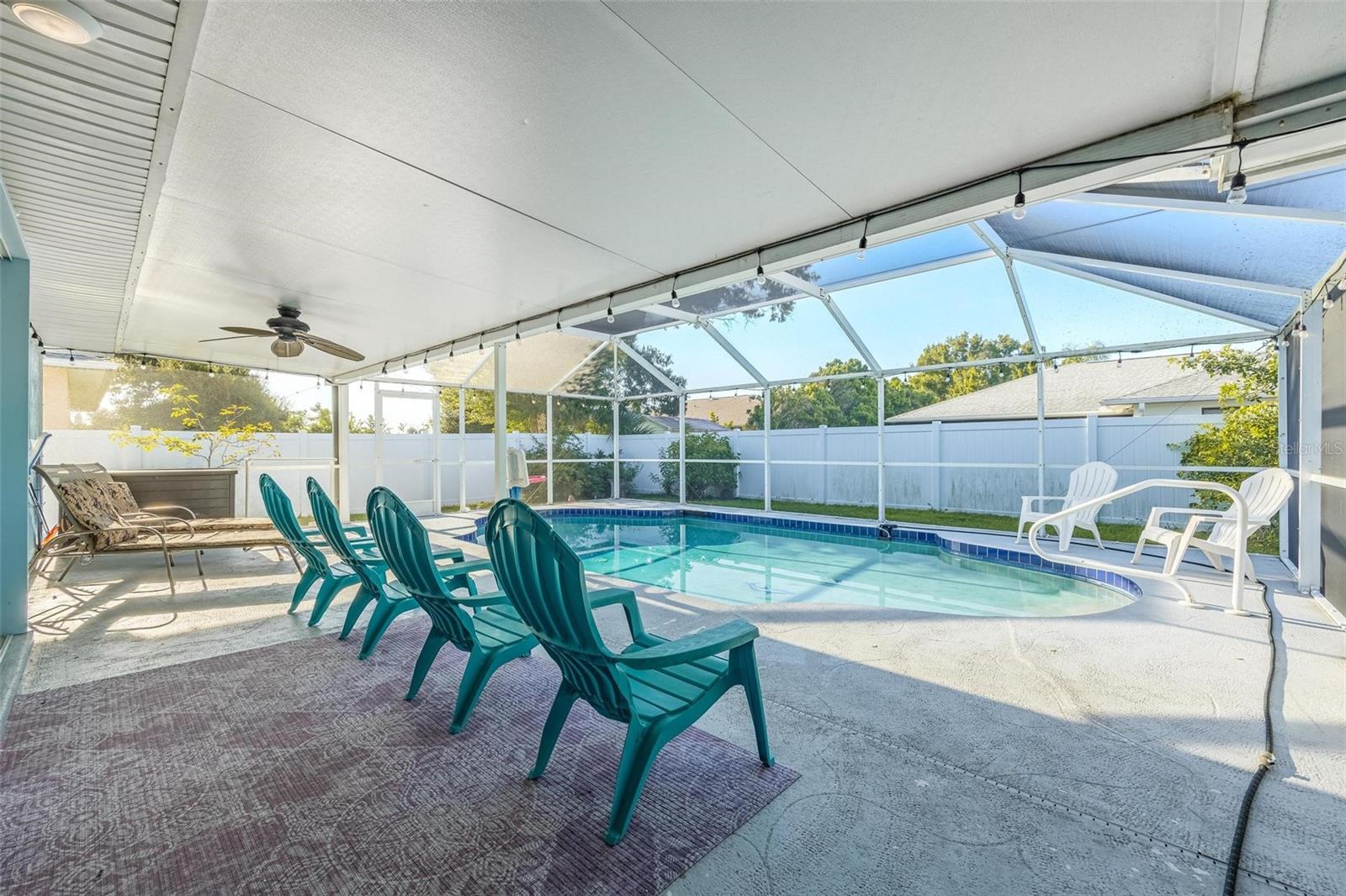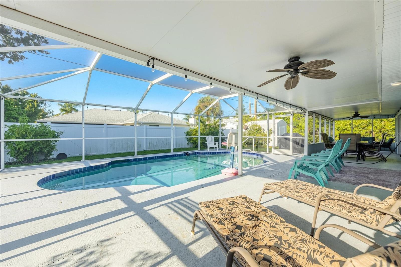 NO HURRICANE DAMAGE OR WATER INTRUSION! MOVE-IN READY TURNKEY POOL HOME in the highly desirable Englewood area! This spacious 3-bedroom, 2-bath residence features a split floor plan, perfect for comfortable living and entertaining. With numerous updates throughout, this home seamlessly blends modern convenience with peace of mind. The open kitchen is both spacious and functional, featuring granite countertops, stainless steel appliances, a breakfast bar, a center island, recessed lighting, a pantry, and roll-out shelving in the cabinets. The Florida room provides additional space for entertaining and offers a stunning view of the beautiful pool, which is complemented by a screened-in lanai and ample covered space for outdoor gatherings. The pool area has been meticulously maintained, and a new pool heater was installed in 2024. The pool screen enclosure was re-screened in 2021, and the partially fenced yard, with mature landscaping, offers privacy from neighbors. A convenient storage shed keeps outdoor essentials organized, and the garage includes screened sliders at the opening for added versatility. Key upgrades include a new roof in 2022, impact-resistant front windows installed in 2017, and new HVAC ductwork added in 2021. The home also features a septic cover, garage door opener, and updated flooring in the main living areas and primary bedroom in 2022. The water heater was replaced in 2024. This home is being sold turnkey, making it an excellent choice for a vacation rental. Located just 5 minutes from shopping, dining, boating, and beaches. Don’t miss out on this opportunity—schedule your showing today!
