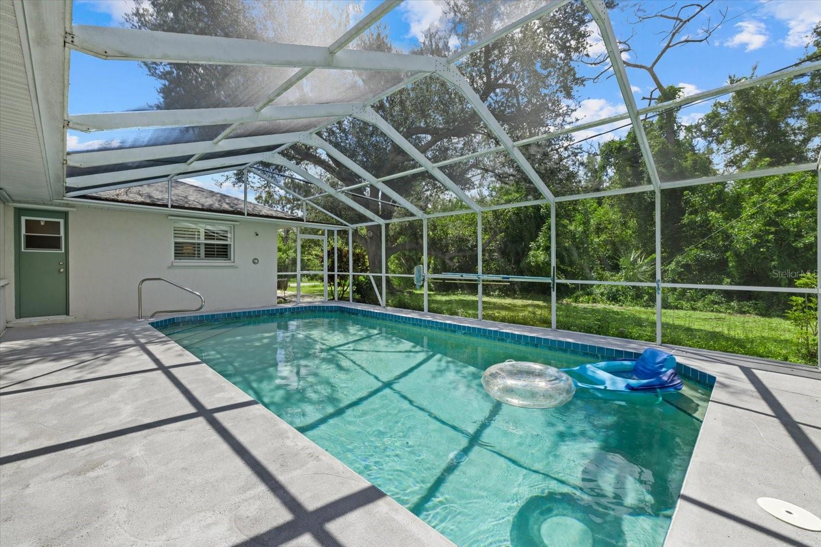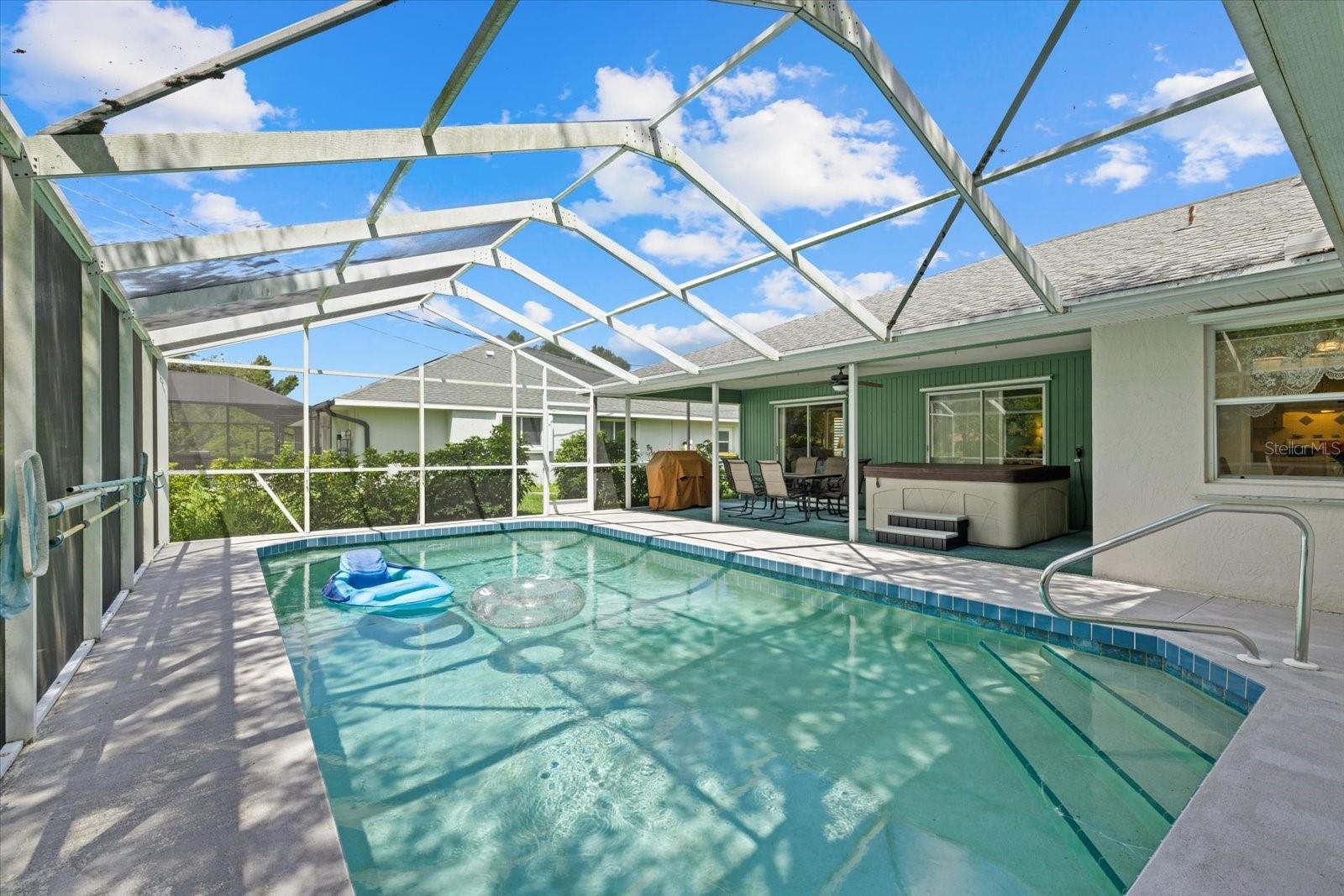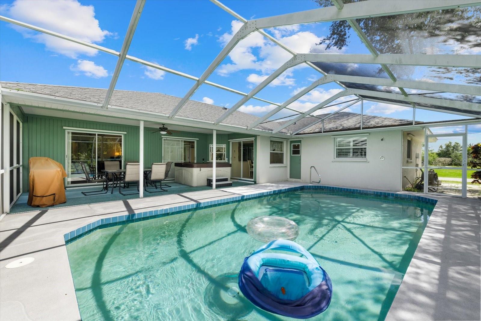 This ranch-style home located within an unspoiled beach town is a must-see! Sitting in a corner lot, it has hurricane-proof windows and doors and is located in a flood-free area for your peace of mind. It lies within a great community with no HOA fees and yet it is just 10 minutes to the beach, allowing you to pack your picnic lunch for a quick run to sun, sand, and surf. A foyer area greets you, leading you to both formal and informal living rooms with high ceilings, a timeless, classic kitchen adjoining a breakfast nook, a dining area, and three bedrooms with honey-colored laminate wood floors. All bedrooms have walk-in closets, with the main bedroom boasting of two separate walk-in closets and glass sliding doors offering a view of the pool. It has beautiful plantation-style windows in the formal living room and the bedrooms, evoking the aura of coastal life. Accordion blinds open up to reveal a sparkling, salt water pool and separate hot tub, dining area and grill for relaxation and entertainment There are two bathrooms, with the main bathroom having a walk-in shower and dual sinks. A second bathroom with a bathtub opens up to the pool area, which has its own outdoor shower. Whether you are looking for a vacation rental investment or your forever home, this semi-tropical oasis is ready to make your dreams a reality!