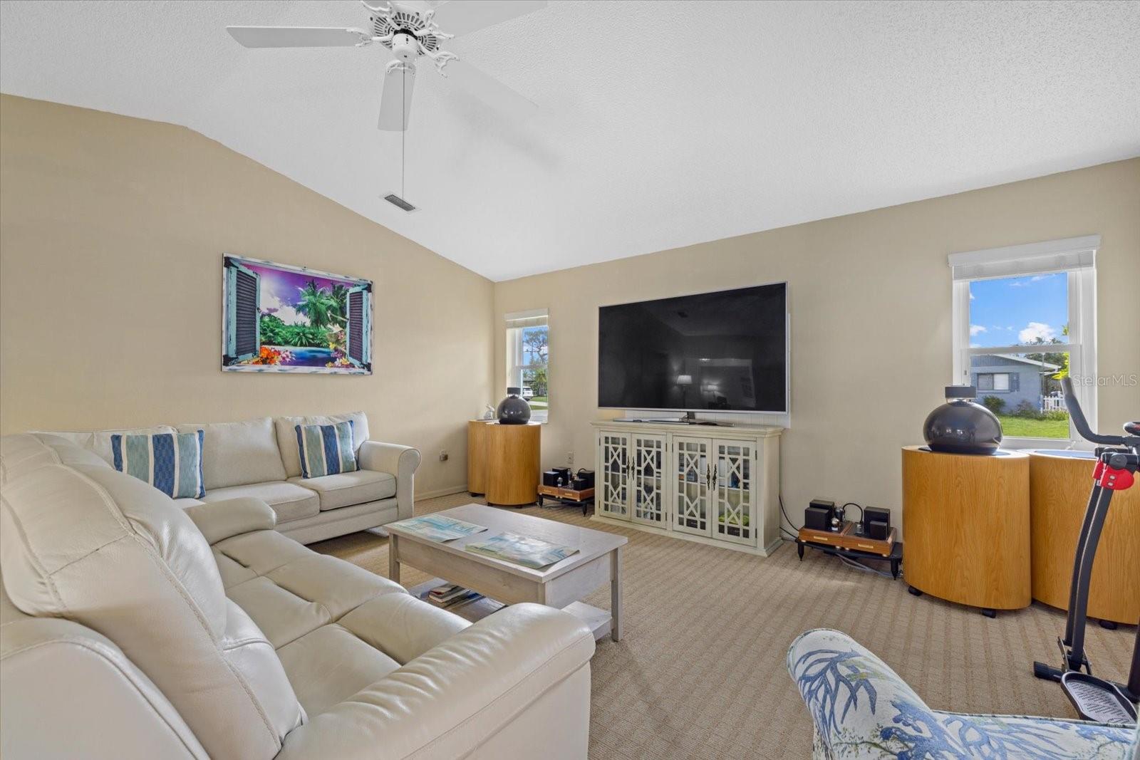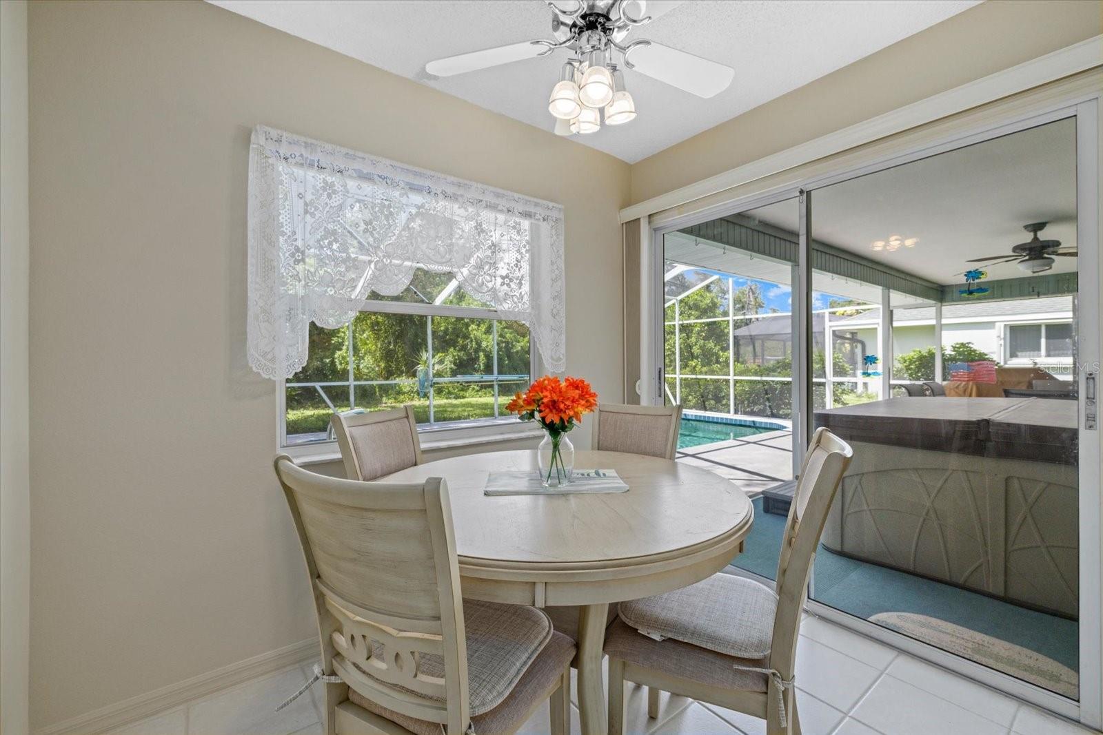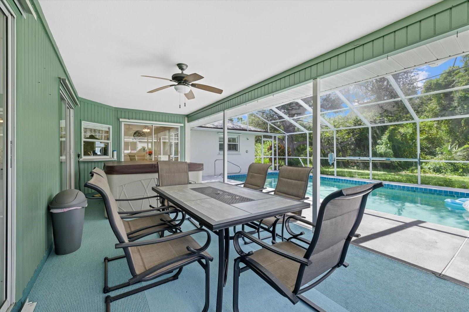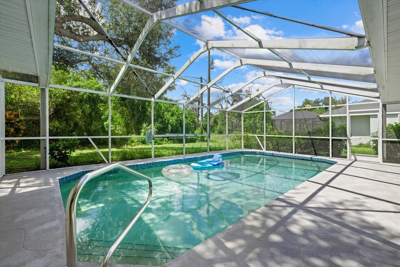 This ranch-style home located within an unspoiled beach town is a must-see! Sitting in a corner lot, it has hurricane-proof windows and doors and is located in a flood-free area for your peace of mind. It lies within a great community with no HOA fees and yet it is just 10 minutes to the beach, allowing you to pack your picnic lunch for a quick run to sun, sand, and surf. A foyer area greets you, leading you to both formal and informal living rooms with high ceilings, a timeless, classic kitchen adjoining a breakfast nook, a dining area, and three bedrooms with honey-colored laminate wood floors. All bedrooms have walk-in closets, with the main bedroom boasting of two separate walk-in closets and glass sliding doors offering a view of the pool. It has beautiful plantation-style windows in the formal living room and the bedrooms, evoking the aura of coastal life. Accordion blinds open up to reveal a sparkling, salt water pool and separate hot tub, dining area and grill for relaxation and entertainment There are two bathrooms, with the main bathroom having a walk-in shower and dual sinks. A second bathroom with a bathtub opens up to the pool area, which has its own outdoor shower. Whether you are looking for a vacation rental investment or your forever home, this semi-tropical oasis is ready to make your dreams a reality!