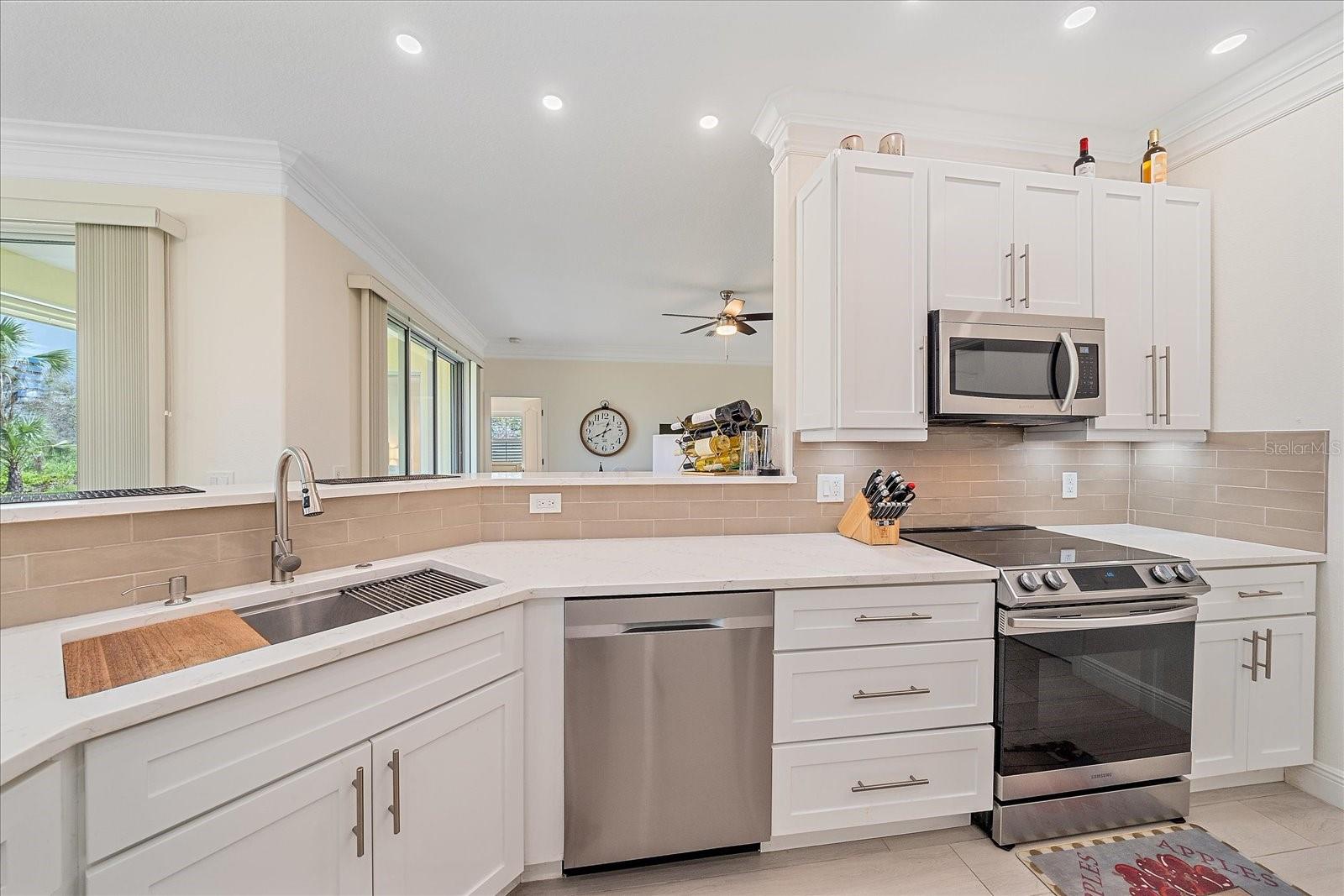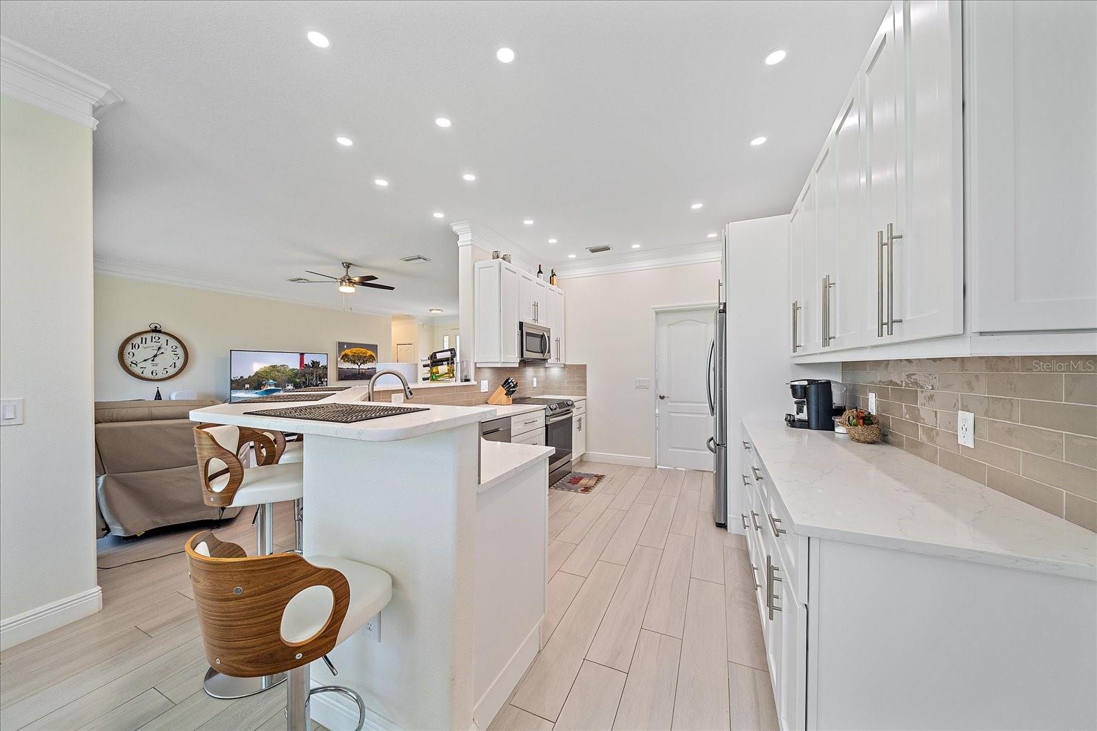 Welcome Home to Park Forest, a highly sought-after 55+ community in Englewood, FL. This meticulously maintained, newly remodeled home with newer appliances is located at the very back of the community, on a quiet street on the cul-de-sac that backs up to the nature preserve. No CDD fees, NEW ROOF in 2022, NEW soft close cabinets in the laundry room 2024. This home is move-in ready and features crown molding, stainless appliances, soft close cabinets, and a wonderful floor plan. NEW landscaping (NOV 2024) in the back yard featuring Eureka palm trees. The HOA maintains your lawn and exterior, providing a new roof every 17 years and exterior paint every 7 years, allowing you time to enjoy every minute of Florida life. There is community club house with heated pool, tennis and pickleball courts and year round activities. RV/Boat (nonmotorized) and trailer lot in the community available on a first come, first serve basis. This community is located just 2.5 miles away from Dearborn Street for shopping and dining and is just over 4.5 miles to Englewood beach.