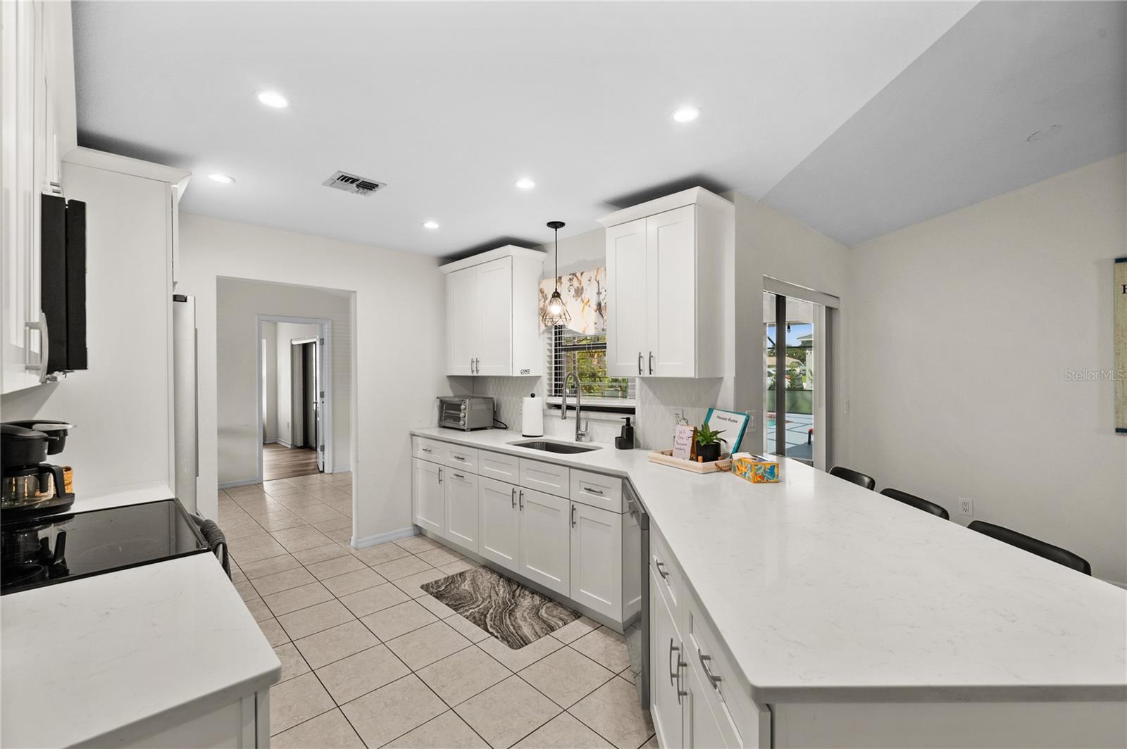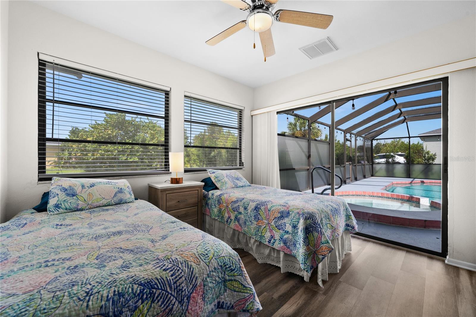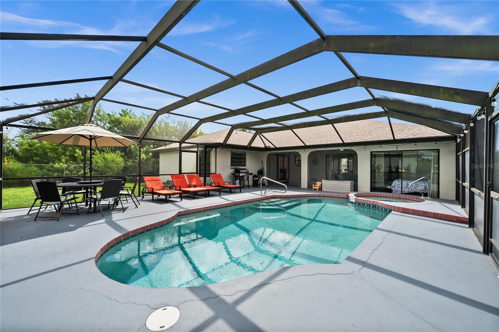 Beautifully updated home! NEW Roof -2022, NEW Luxury Vinyl Floors in Bedrooms, NEW Kitchen - Cabinetry and Quartz countertops. NEW Bathroom cabinetry and Quartz countertops. Water heater-2018, Painted and updated interior and exterior. Home is almost 2100 sq. ft with pool and with large covered lanai plus screen cage. Located in flood zone "X" and on a corner lot make for a great location. Large covered Lanai, plus the screened in pool area are great for entertaining. Large sized rooms and walk in closets in each bedroom to help with storage. There is a fenced area in the back yard just off the pool area that is perfect for a small family or pets to play. Great rental property. All room sizes are deemed accurate but buyer to confirm measurements. Rental Property so showings need to be coordinated around vacancies See Realtor notes for more info