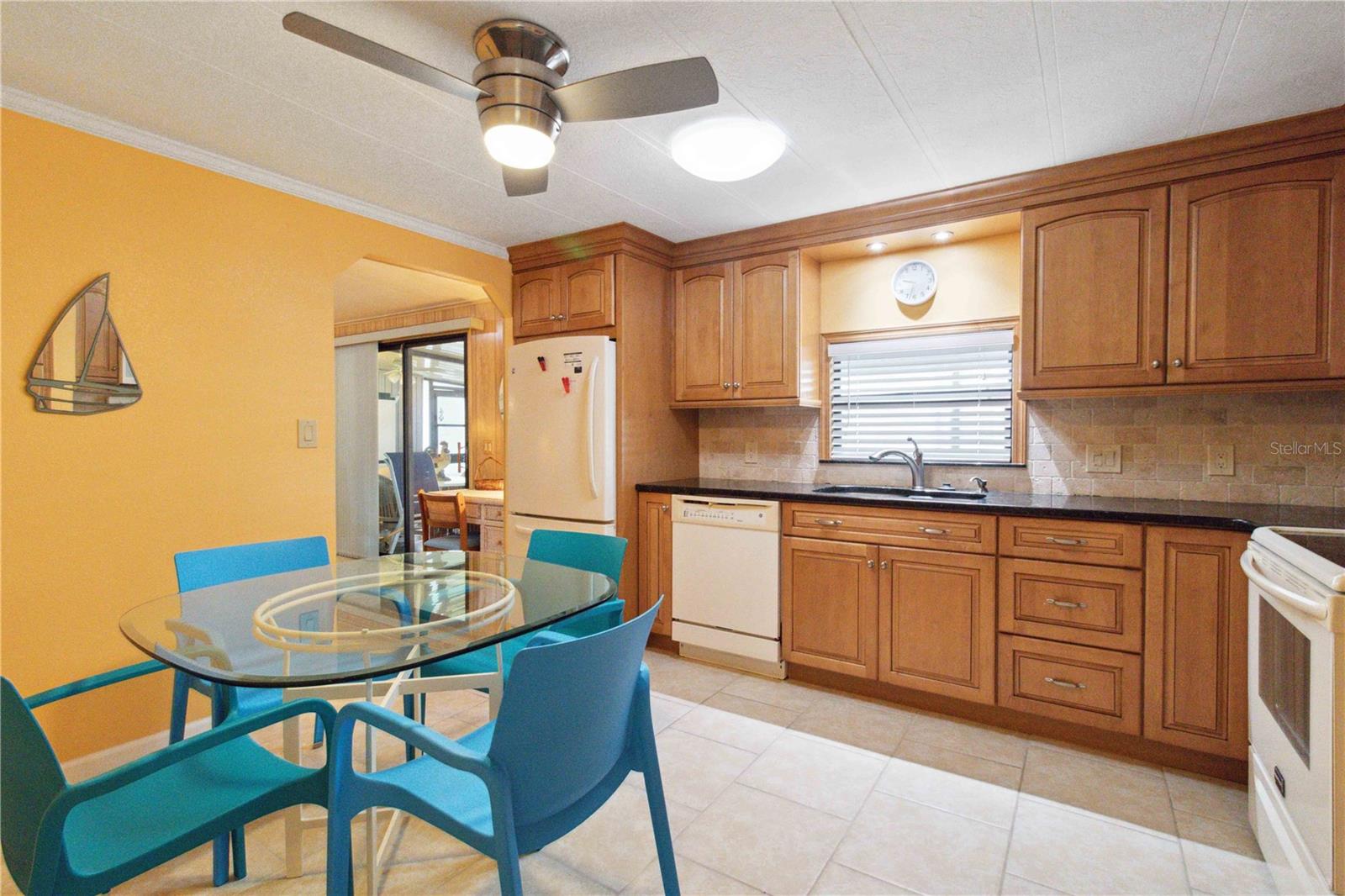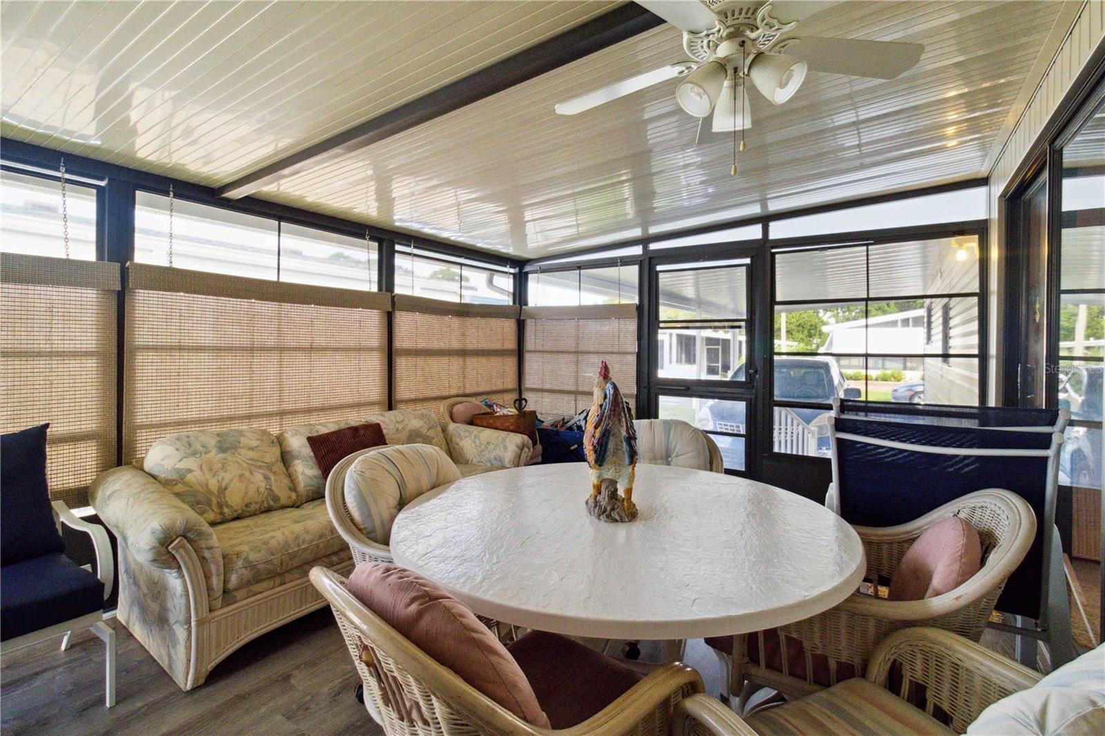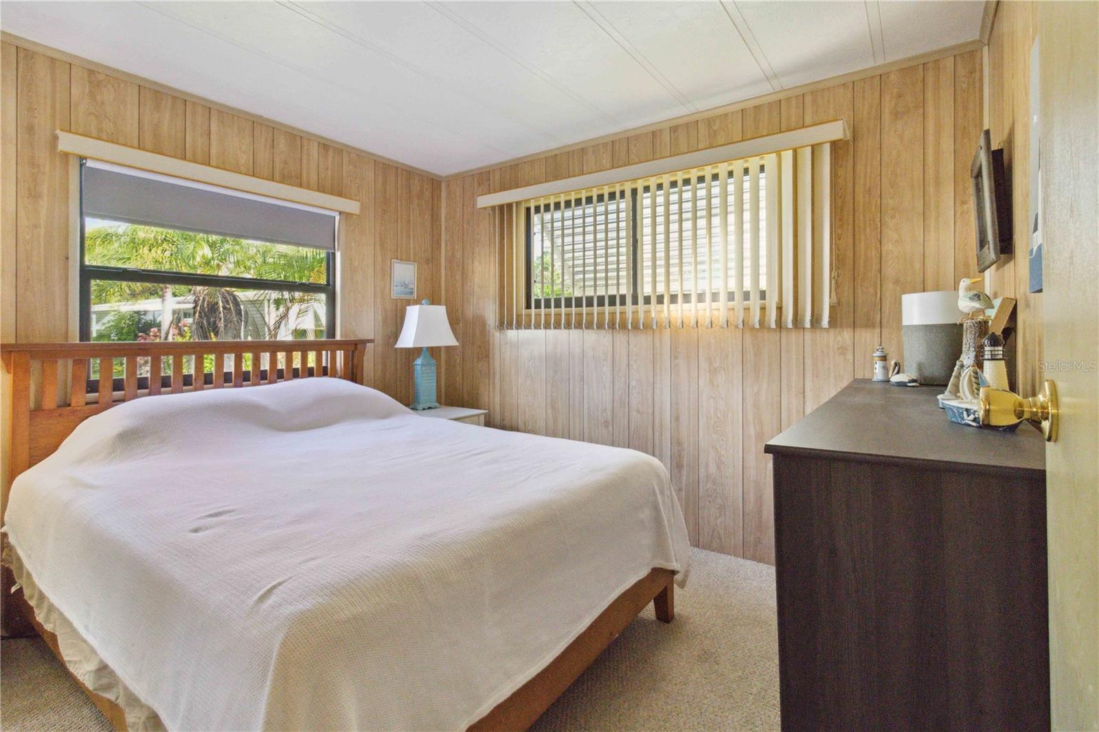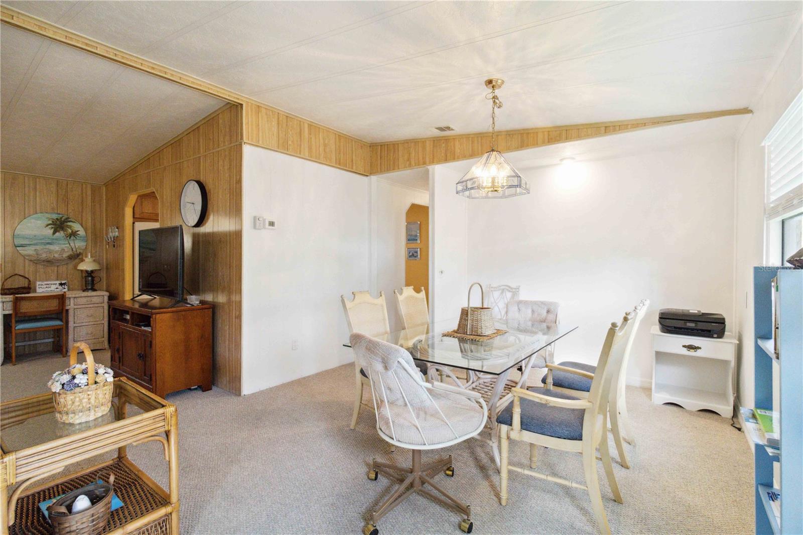 For sale in the 55+ community of Polynesian Village, this partially furnished 3-bedroom, 2-bathroom, 1,248 sq. ft. doublewide home is located in the no-pet section. The home features newer carpet in the living areas and bedrooms, with tile flooring in the kitchen. In the bathrooms, there is waterproof laminate flooring. The kitchen includes a pantry for extra storage and space for a dining table. The primary bedroom boasts a walk-in closet and an updated ensuite with a newer vanity, waterproof laminate flooring, and a walk-in shower. The second updated bathroom, located near the two guest bedrooms, has a tub/shower combo and an updated vanity. Additional features include an indoor laundry room, a screened lanai for extra seating, and an outdoor storage room. Major updates were made including a newer roof, AC, and water heater. Polynesian Village offers low HOA fees, a range of activities, and is close to the beach. Polynesian Village amenities include a community pool, sun deck, 3 shuffleboard courts and a beautiful newly remodeled clubhouse that hosts many entertainment events. Extra storage available for your boat, RV or trailer or space for shed/storage at 125/yr.Located in an X flood zone, no flood insurance is required. This partially furnished home is ready for you to move in—schedule a viewing today!