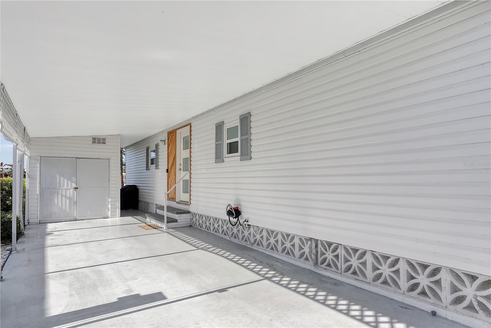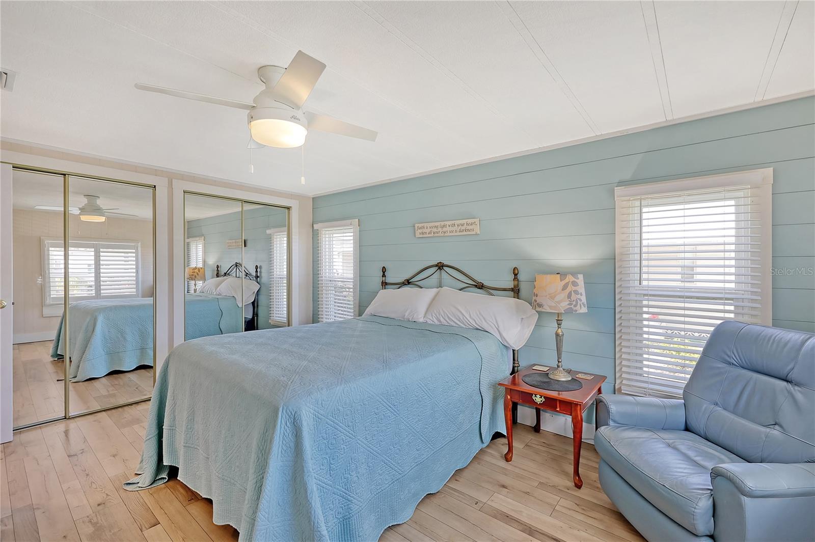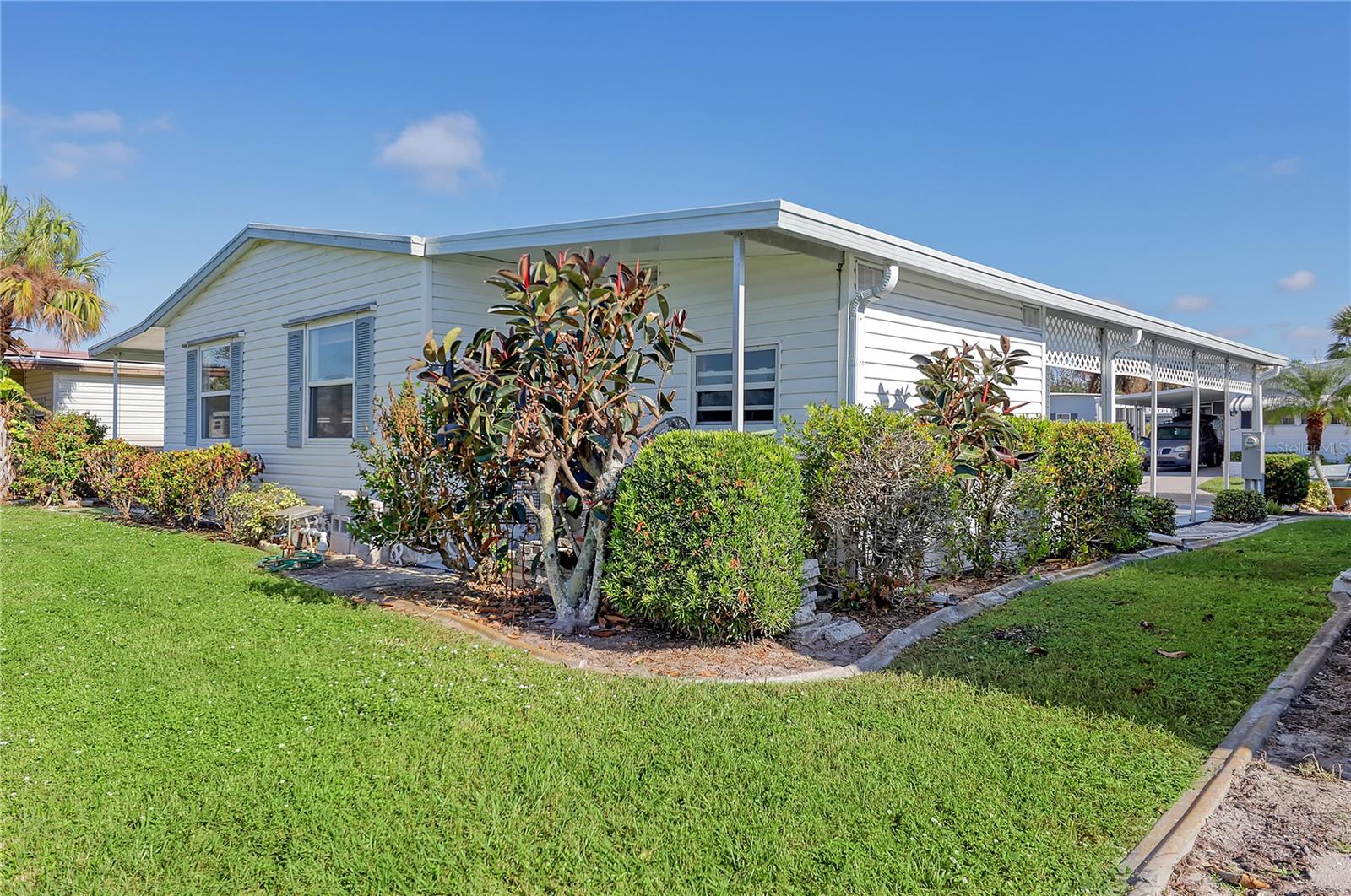 If you are looking for an active 55+ community with access to the inter-coastal waterway and Gulf of Mexico without paying high fees, you've found the perfect property! This home is located in a residential, owned, and gated waterfront community that offers an unmatched lifestyle. As soon as you step inside, you're welcomed by a large living space with beautiful vinyl flooring. The modern kitchen is a standout feature with abundant wood cabinets, a composite large basin kitchen sink, which was installed in 2022, and an electric range with an air fryer. The impressive large kitchen island is perfect for meal prep and showcasing dishes during holidays, making your home feel comfortable and festive. All countertops are made of Carrera Quartz composite and are very durable. They are resistant from scratching and staining making them easier to clean and ensuring you don't have to worry damaging the solid service, The new stainless steel refrigerator with a bottom freezer is ready to use. The master bedroom boasts newer (2022) vinyl flooring, a stylish sliding barn door, and a spacious remodeled bathroom with a walking -in shower, vanity and sink. The master bedroom also includes an impressive walk in closet, providing ample space for all your essentials. The second bedroom features a long closet, perfect for storing clothes, blankets, and more. Beautiful plantation shutters, installed in 2022, adorn the Florida room and the master bedroom. Enjoy the desired water view from the living room! There is a bonus Florida room which is perfect for relaxation and entertaining. The front of the home is surrounded by updated landscaping that adds value to the property and provides a great exterior view. A detached utility shed furnishes an extra storage space for your outdoor items ensuring they are kept safe and organized, which you will definitely appreciate. Alameda Isles is a gated community featuring five small lakes and a private park. This vibrant community offers everything you've been dreaming of, including a heated pool, therapeutic spa, and tennis court for staying active. Social gatherings such as monthly pancake breakfasts, community coffee, Friday night bonfires, craft classes, quilting, card games, dances and more, creating a welcoming atmosphere where you can meet neighbors and enjoying an active Floridian lifestyle. Residents can also delighting in pickleball, bocce, shuffleboard, a sauna, billiard room and exercise room. For boating enthusiasts, the community's boat club providing boat slips with the annual fee of $214 and an additional boat storage yard can be leased for an extra fee, depending on availability. If you are seeking a quite, gated community with luxurious amenities and a waterfront access this home is a must see. Schedule your appointment today and discover all that in Alameda Isles.