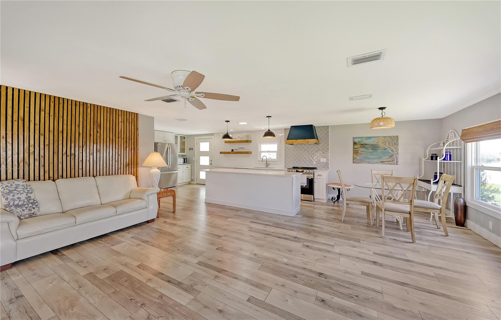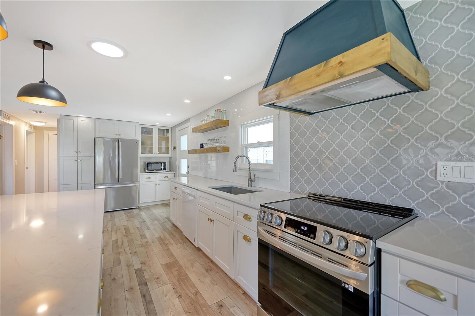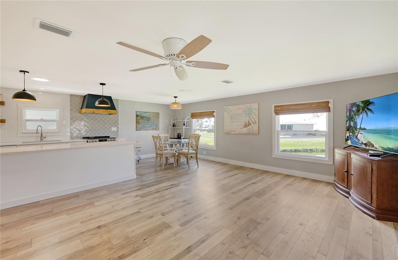 If you are looking for an active 55+ community with access to the inter-coastal waterway and Gulf of Mexico without paying high fees, you've found the perfect property! This home is located in a residential, owned, and gated waterfront community that offers an unmatched lifestyle. As soon as you step inside, you're welcomed by a large living space with beautiful vinyl flooring. The modern kitchen is a standout feature with abundant wood cabinets, a composite large basin kitchen sink, which was installed in 2022, and an electric range with an air fryer. The impressive large kitchen island is perfect for meal prep and showcasing dishes during holidays, making your home feel comfortable and festive. All countertops are made of Carrera Quartz composite and are very durable. They are resistant from scratching and staining making them easier to clean and ensuring you don't have to worry damaging the solid service, The new stainless steel refrigerator with a bottom freezer is ready to use. The master bedroom boasts newer (2022) vinyl flooring, a stylish sliding barn door, and a spacious remodeled bathroom with a walking -in shower, vanity and sink. The master bedroom also includes an impressive walk in closet, providing ample space for all your essentials. The second bedroom features a long closet, perfect for storing clothes, blankets, and more. Beautiful plantation shutters, installed in 2022, adorn the Florida room and the master bedroom. Enjoy the desired water view from the living room! There is a bonus Florida room which is perfect for relaxation and entertaining. The front of the home is surrounded by updated landscaping that adds value to the property and provides a great exterior view. A detached utility shed furnishes an extra storage space for your outdoor items ensuring they are kept safe and organized, which you will definitely appreciate. Alameda Isles is a gated community featuring five small lakes and a private park. This vibrant community offers everything you've been dreaming of, including a heated pool, therapeutic spa, and tennis court for staying active. Social gatherings such as monthly pancake breakfasts, community coffee, Friday night bonfires, craft classes, quilting, card games, dances and more, creating a welcoming atmosphere where you can meet neighbors and enjoying an active Floridian lifestyle. Residents can also delighting in pickleball, bocce, shuffleboard, a sauna, billiard room and exercise room. For boating enthusiasts, the community's boat club providing boat slips with the annual fee of $214 and an additional boat storage yard can be leased for an extra fee, depending on availability. If you are seeking a quite, gated community with luxurious amenities and a waterfront access this home is a must see. Schedule your appointment today and discover all that in Alameda Isles.