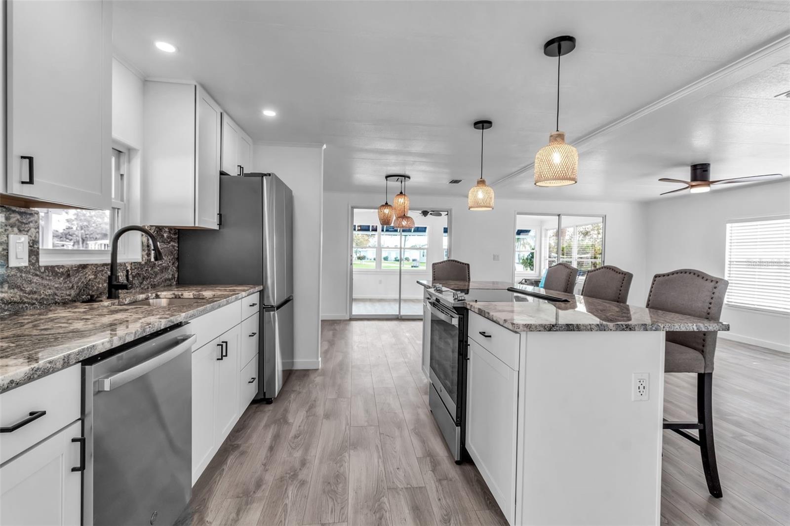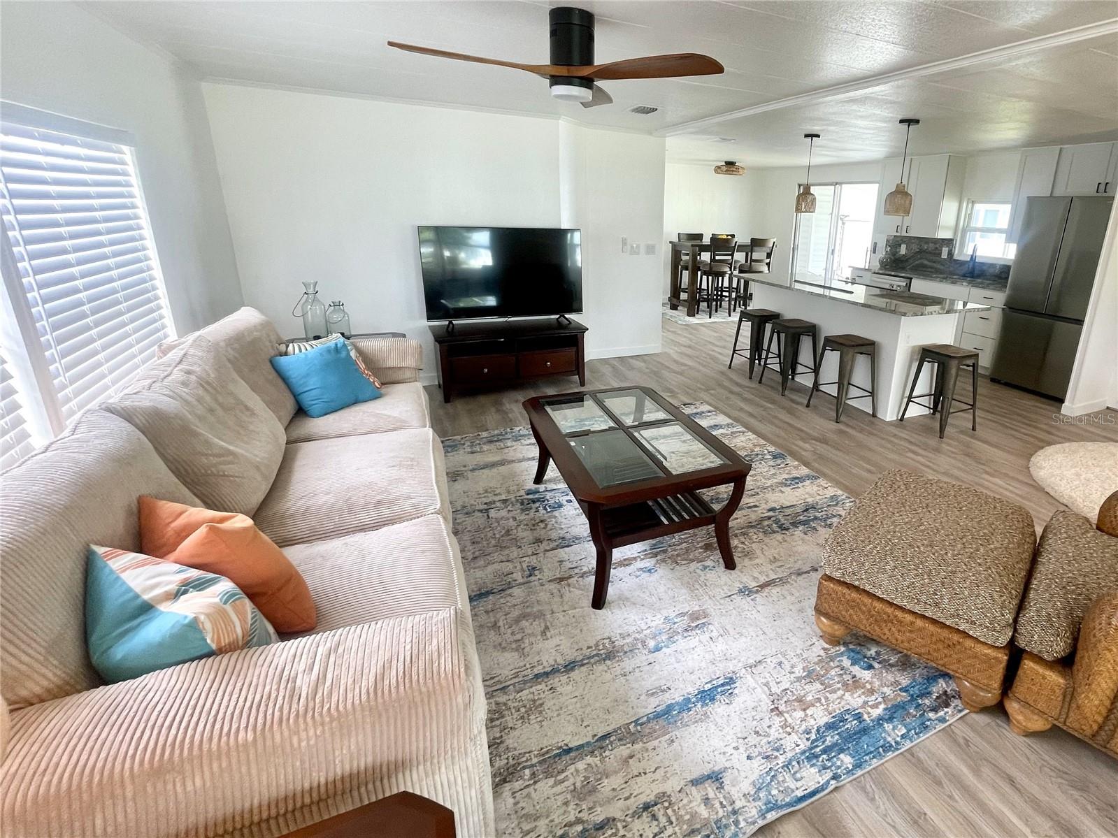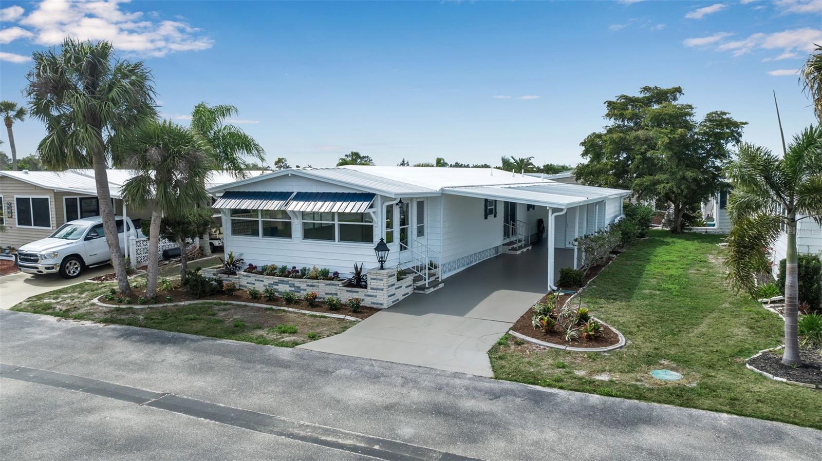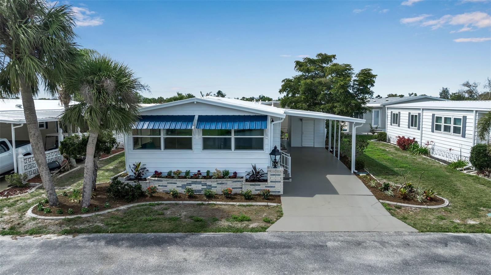 Bring your boat! This is an absolute MUST-SEE HOME! This stunning, fully renovated residence comes with a new roof, a partial carport, and new front windows. The entire home features new ¾-inch plywood subflooring installed over the existing ½-inch subfloor, brand-new laminate flooring, an upgraded electrical panel, and a new water heater. The second bathroom is revamped with a new tub, surround, toilet, vanity, mirror, and lighting. The kitchen is a showstopper, showcasing new cabinets, appliances, granite countertops, and a chic backsplash. The primary bathroom offers a modern double sink vanity, mirror, and stylish lighting. Every room is illuminated by new light fixtures and ceiling fans. The front landscaping is fresh, and the exterior, driveway, and laundry area have all been newly painted. The Alameda Isles community boasts a fantastic boat ramp with 59 boat slips available on a first-come, first-served basis, situated on a saltwater canal that connects to the Intracoastal Waterway. Enjoy unparalleled amenities, including a year-round heated swimming pool with sunshade, a therapeutic spa, a gym, a sauna, tennis/pickleball and shuffleboard courts, bocce courts, picnic facilities, golf putting green, and a practice area. Take advantage of the woodworking shop, complete with a tool room for residents. The clubhouse complex is impressive, featuring a large hall with a kitchen and stage, a craft room with a kiln, a billiards room, a lounge/card room, and a library. Free Wi-Fi is accessible throughout the clubhouse, and there is RV/boat storage available (separate lease required). Make sure to stop by the clubhouse to witness the manatees and dolphins playing in the canal! Note: The air-conditioned front lanai adds 300 square feet to the total square footage of 1,452. The actual county record square footage is 1,152. The owner will consider financing. Don’t miss out on this incredible opportunity!