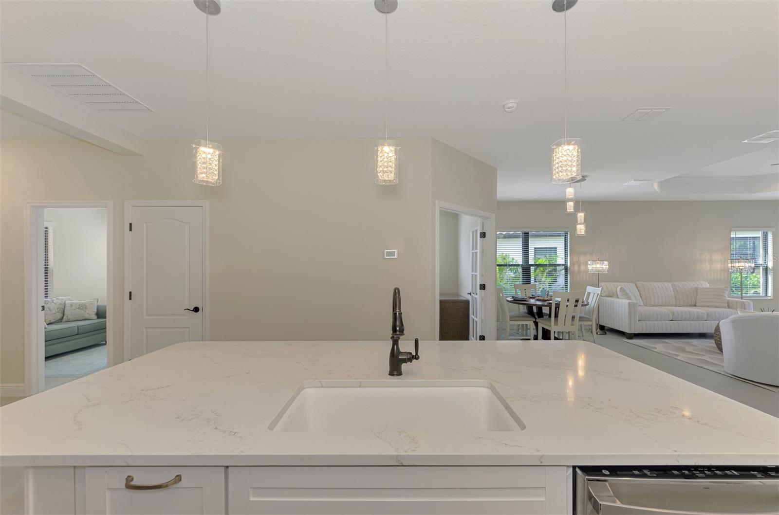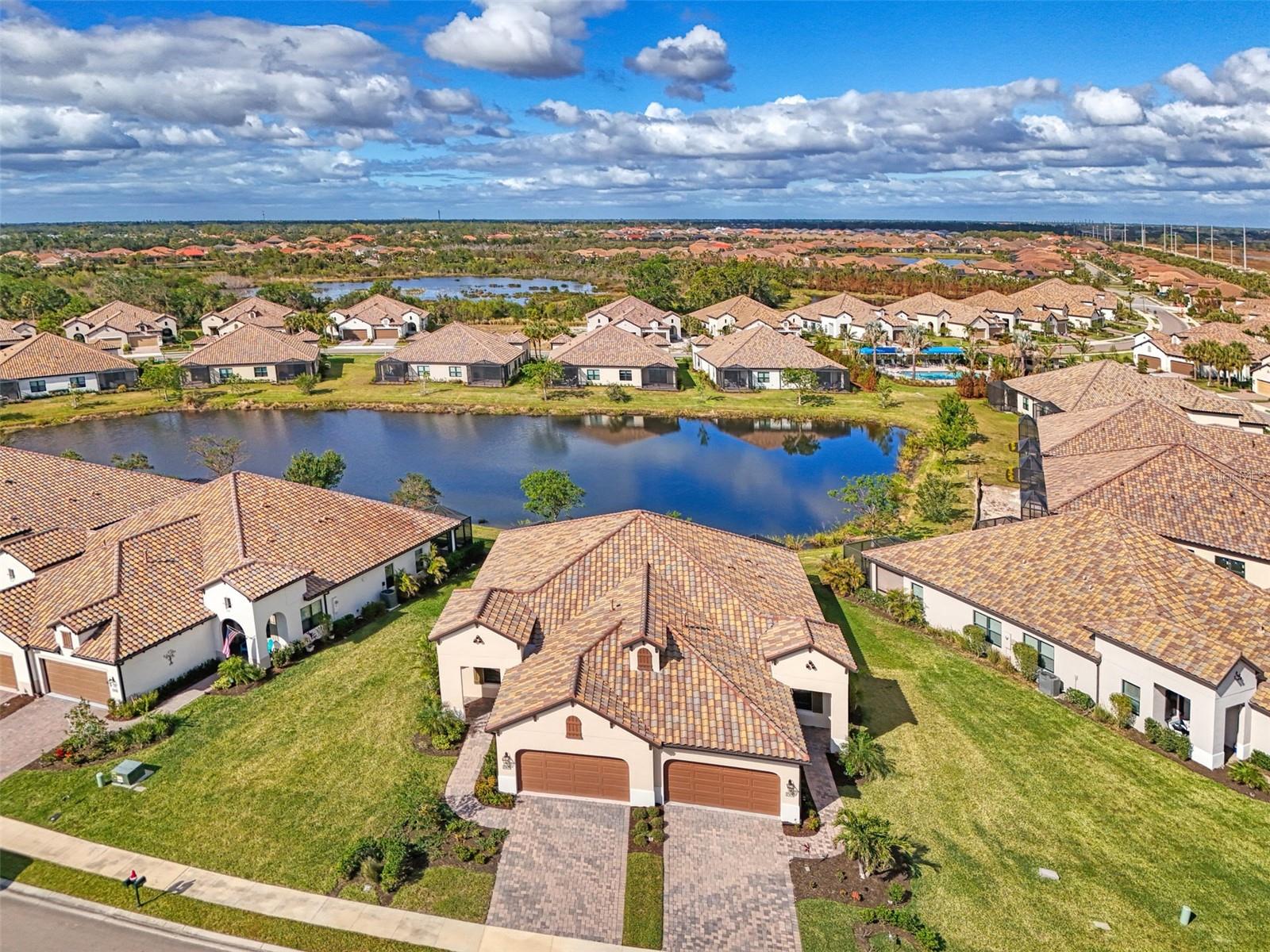 HUGE PRICE ADJUSTMENT!!! NOW PRICED 100K BELOW PURCHASE PRICE in 2023! SELLER SAYS SELL! Discover a stunning opportunity to reside in the exclusive BOCA ROYALE community. NO FLOOD ZONE. This beautifully upgraded, TURNKEY ~ MOVE IN READY 45K IN FURNISHINGS! Just bring your toothbrush! Sandcastle floor plan offers THREE bedrooms, TWO bathrooms, and a versatile DEN/OFFICE, perfectly designed for comfort and elegance. The GORGEOUS gourmet kitchen features light quartz countertops, neutral color cabinets, Under cabinet lighting. Upgraded stainless steel appliances, including a natural gas stove, and a spacious island ideal for entertaining. It seamlessly connects to the Great Room with coffered ceilings, and sliding pocket doors (upgrade) leading to an extended screened lanai with picturesque water views. The luxurious master suite boasts a serene WATER VIEWS, an oversized walk-in closet, and a spa-like ensuite with dual vanities and a glass-enclosed, walk-in tile shower. The additional bedrooms are well-appointed, providing ample space for guests, while the den offers flexibility as a home office or creative space. The home sets perfectly to allow lots of natural light. The inviting home features carefully curated enhancements, including recessed lighting, a 50-gallon gas water heater, and modern pendant lighting. The outdoor space is equally impressive, showcasing upgraded landscaping that complements the home’s elegant design. Perfectly positioned on a premium pond-view lot, this property seamlessly combines style and practicality. With over $70K IN UPGRADES, including MINKE HIGH-END FANS, PENDANT LIGHTING, and GE WASHER-GAS DRYER.. this home is a true standout! (Contact us for the full list of countless upgrades)Even the GARAGE has UPGRADES! Residents of Boca Royale enjoy a wealth of community amenities, including PICKLEBALL, TENNIS, GOLF, a state-of-the-art fitness center, and a REOSRT-LIKE community pool complete with cabanas and an outdoor kitchen for social gatherings. The on-site clubhouse provides a welcoming setting for lunch, dinner, and drinks. Just a short drive away, Manasota Key offers three pristine public beaches where you can soak up the sun and enjoy the sparkling waters of the Gulf. Embrace world-class fishing and boating opportunities right at your doorstep. Discover the unmatched beauty and lifestyle of Florida’s Gulf Coast and make Boca Royale your forever home! CHECK OUT 3D VIRTUAL TOUR!