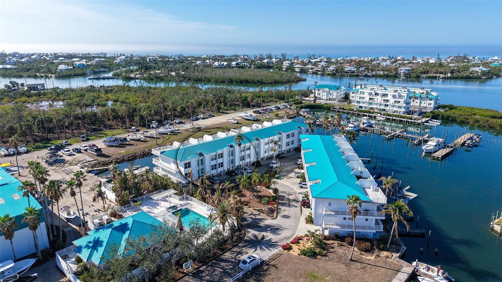 Experience an exceptional lifestyle in this elegantly appointed coastal themed townhouse, perfectly situated above the serene canal leading to the stunning Intercoastal Waterway and onward to the open Gulf waters. This exclusive property is a single family residence, not a condominium. This property also boasts a low-cost flood insurance policy that can be transferred to a new owner. Spread across three luxurious levels with a private garage, this residence features two balconies, a charming ground floor patio, and a rooftop deck—the perfect spot to relish in gorgeous panoramic water views and endless sunsets. Inside, discover a thoughtfully designed layout with three expansive bedrooms, three full baths, and a flexible bonus room located on the ground level with walk out access to the patio. The open-concept living room, dining area, and kitchen boast a stunning cathedral ceiling, creating a spacious and inviting atmosphere complemented by panoramic vistas from every level. The elegant hardwood floors enhance the feeling of coastal luxury. A new sleek metal roof has been installed, ensuring peace of mind. Situated in close proximity to Boca Grande, known for its multi-million-dollar estates and world-class fishing opportunities, this townhouse truly embodies the essence of convenient luxury living in Southwest Florida. Bask in water views of the Intercoastal Waterway and the tranquil canal, with just a short 10-minute journey to the inviting blue waters of the Gulf of Mexico. Conveniently located close to Gulf beaches and world class fishing. The property overlooks Cape Haze Marina, which hosts the renowned Freedom Boat Club—giving you seamless access to boating adventures without the commitment and expense of boat ownership. For boat owners, Cape Haze Marina offers indoor dry storage as well as wet slips for your boat. Bring the entire family to embrace the enchanting lifestyle that awaits—all at an impressive price.