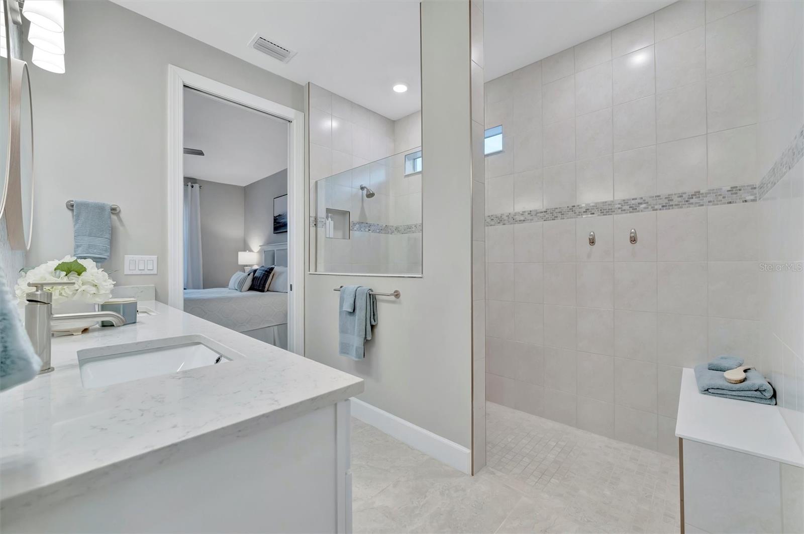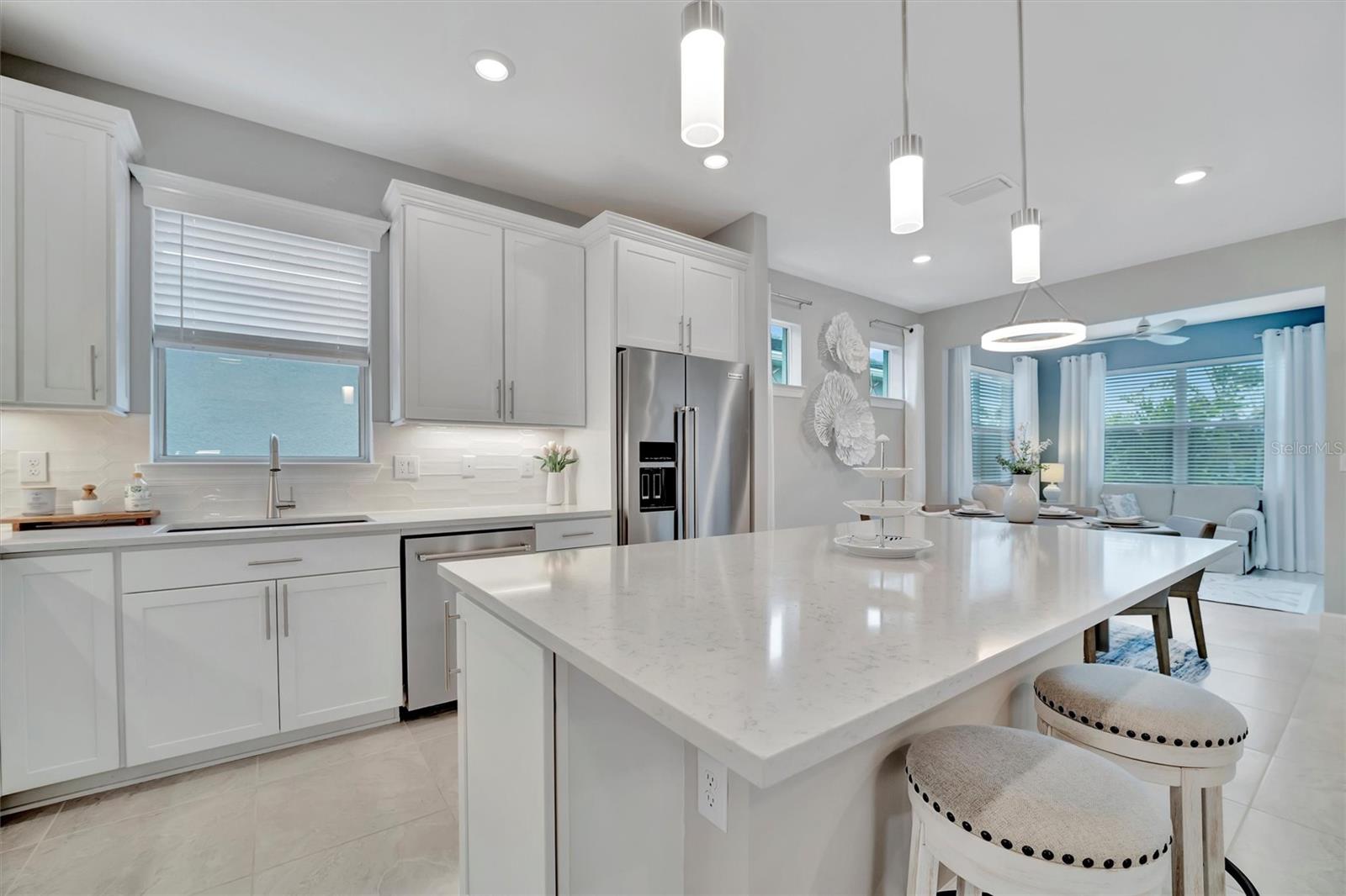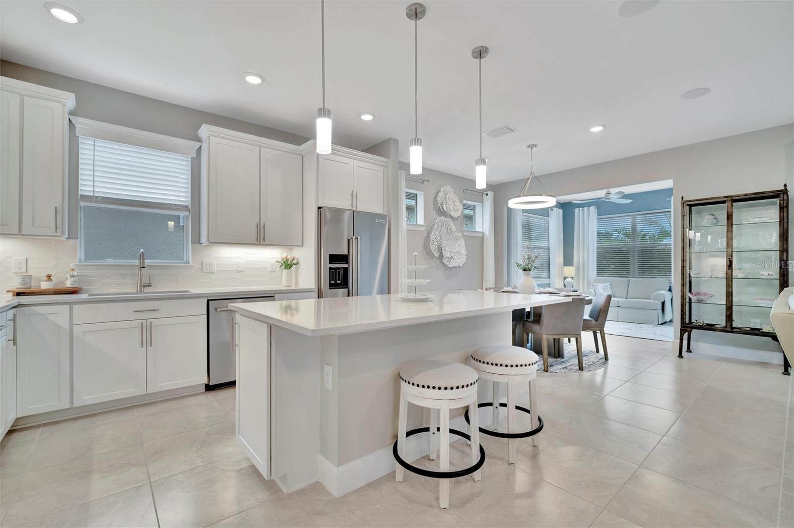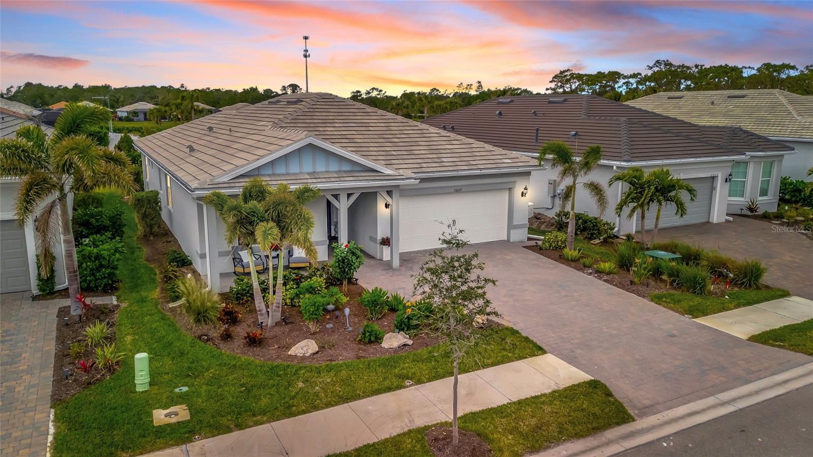 LOCATION, LOCATION, LOCATION! Welcome to your dream home in the highly sought-after BEACHWALK UPSCALE GATED COMMUNITY. It truly is one of a kind. Be sure to ask about the TURNKEY OPPORTUNITY (furniture AND dishes). Just 6 MINUTES TO MANASOTA KEY BEACH, this top-rated resort-style community offers an array of amenities, including 10 PICKLEBALL COURTS, 5 TENNIS COURTS, BOCCE BALL COURTS, a YEAR-ROUND HEATED POOL, a LUXURIOUS CLUBHOUSE, RESTAURANT, TIKI BAR, and much more! You will feel like you are living in a resort! Nestled on a quiet street with a LARGE PRESERVE LOT, this stunning PROSPERITY SINGLE-STORY HOME boasts a WESTERN-EXPOSURE BACKYARD with stunning SUNSETS and overlooking lush greenery. This meticulously designed 2 BEDROOM, FLEX ROOM (Can convert to 3rd bedroom), 2 BATH HOME is MOVE-IN READY. The exterior showcases a blend of stucco and tile roofing, complemented by a contemporary custom etched glass front door. Step inside and be greeted by 8-FOOT TALL INTERIOR DOORS and modern CERAMIC FLOORS throughout the home. The durable flooring adds a touch of elegance and luxury to every room. Upgraded tile in both bathrooms offering elegant walk in showers. The KITCHEN is a chef’s delight, featuring an OPEN FLOOR PLAN, soft-close Modern SHAKER CABINETS, QUARTZ COUNTERTOPS, STAINLESS STEEL APPLIANCES, BUILT IN CONVECTION OVENS and custom DRINK CENTER with WINE COOLER and COFFEE BAR. Additional features include elegant lighting throughout, window treatments, GOURMET KITCHEN, upgraded KITCHENAID appliances, an ENLARGED SINGLE-BOWL KITCHEN SINK, and a 36" GAS COOKTOP. The heart of the home, the FAMILY ROOM, is a cozy yet stylish retreat with HUGE GLASS SLIDING DOORS that open to the BACKYARD OASIS. Adjacent to the family room and kitchen is the SUNROOM, a bright and airy space bathed in natural light with additional GLASS SLIDER DOORS offering serene views of the backyard. This home also features a LARGE TWO-CAR GARAGE with additional storage space for all your needs. In the backyard, TROPICAL LANDSCAPING provide UNPARALLELED PRIVACY and relaxation within the screened LANAI. Enjoy the beautiful landscaping and wildlife while strolling on the NATURE TRAILS throughout, along with a DOG PARK and COMMUNITY GARDEN, where you can enjoy cultivating your own fresh produce year-round. Discover the perfect blend of tranquility, beautiful scenery, and convenience to the amenity center. Schedule your PRIVATE SHOWING today and experience the ultimate in luxurious resort-style living! Pack your bags and be ready to move in! This home has it all!!!! This gorgeous home can be TURNKEY! *Ask about our lender program.