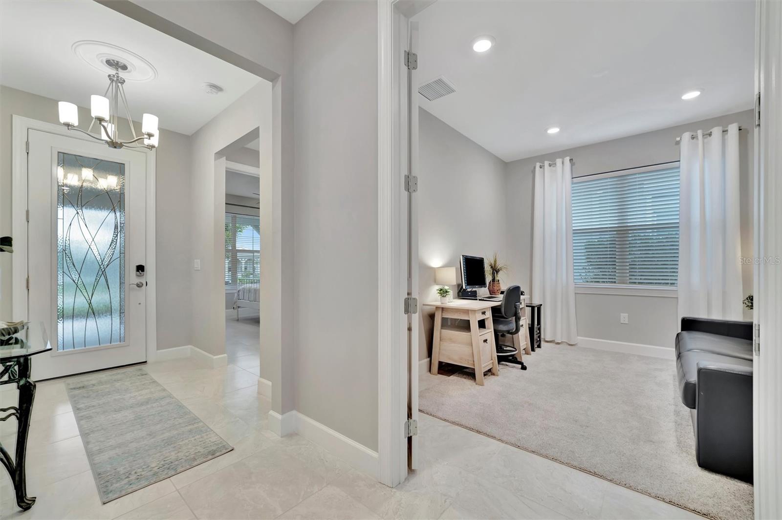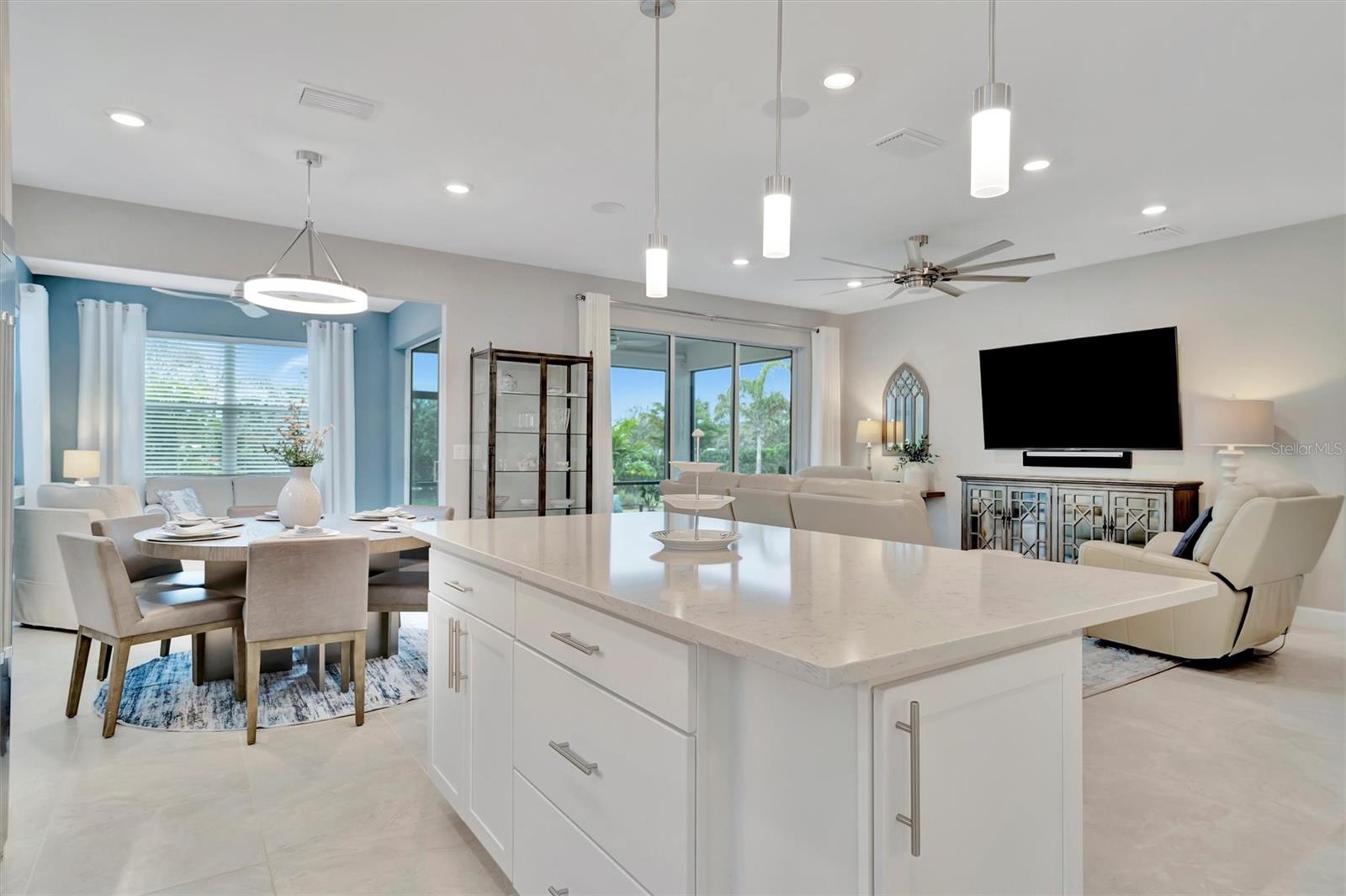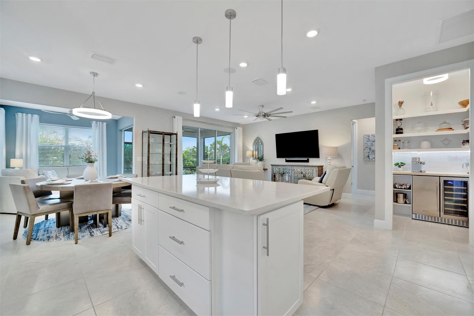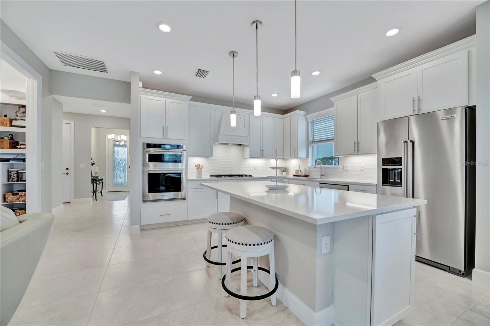 LOCATION, LOCATION, LOCATION! Welcome to your dream home in the highly sought-after BEACHWALK UPSCALE GATED COMMUNITY. It truly is one of a kind. Be sure to ask about the TURNKEY OPPORTUNITY (furniture AND dishes). Just 6 MINUTES TO MANASOTA KEY BEACH, this top-rated resort-style community offers an array of amenities, including 10 PICKLEBALL COURTS, 5 TENNIS COURTS, BOCCE BALL COURTS, a YEAR-ROUND HEATED POOL, a LUXURIOUS CLUBHOUSE, RESTAURANT, TIKI BAR, and much more! You will feel like you are living in a resort! Nestled on a quiet street with a LARGE PRESERVE LOT, this stunning PROSPERITY SINGLE-STORY HOME boasts a WESTERN-EXPOSURE BACKYARD with stunning SUNSETS and overlooking lush greenery. This meticulously designed 2 BEDROOM, FLEX ROOM (Can convert to 3rd bedroom), 2 BATH HOME is MOVE-IN READY. The exterior showcases a blend of stucco and tile roofing, complemented by a contemporary custom etched glass front door. Step inside and be greeted by 8-FOOT TALL INTERIOR DOORS and modern CERAMIC FLOORS throughout the home. The durable flooring adds a touch of elegance and luxury to every room. Upgraded tile in both bathrooms offering elegant walk in showers. The KITCHEN is a chef’s delight, featuring an OPEN FLOOR PLAN, soft-close Modern SHAKER CABINETS, QUARTZ COUNTERTOPS, STAINLESS STEEL APPLIANCES, BUILT IN CONVECTION OVENS and custom DRINK CENTER with WINE COOLER and COFFEE BAR. Additional features include elegant lighting throughout, window treatments, GOURMET KITCHEN, upgraded KITCHENAID appliances, an ENLARGED SINGLE-BOWL KITCHEN SINK, and a 36" GAS COOKTOP. The heart of the home, the FAMILY ROOM, is a cozy yet stylish retreat with HUGE GLASS SLIDING DOORS that open to the BACKYARD OASIS. Adjacent to the family room and kitchen is the SUNROOM, a bright and airy space bathed in natural light with additional GLASS SLIDER DOORS offering serene views of the backyard. This home also features a LARGE TWO-CAR GARAGE with additional storage space for all your needs. In the backyard, TROPICAL LANDSCAPING provide UNPARALLELED PRIVACY and relaxation within the screened LANAI. Enjoy the beautiful landscaping and wildlife while strolling on the NATURE TRAILS throughout, along with a DOG PARK and COMMUNITY GARDEN, where you can enjoy cultivating your own fresh produce year-round. Discover the perfect blend of tranquility, beautiful scenery, and convenience to the amenity center. Schedule your PRIVATE SHOWING today and experience the ultimate in luxurious resort-style living! Pack your bags and be ready to move in! This home has it all!!!! This gorgeous home can be TURNKEY! *Ask about our lender program.