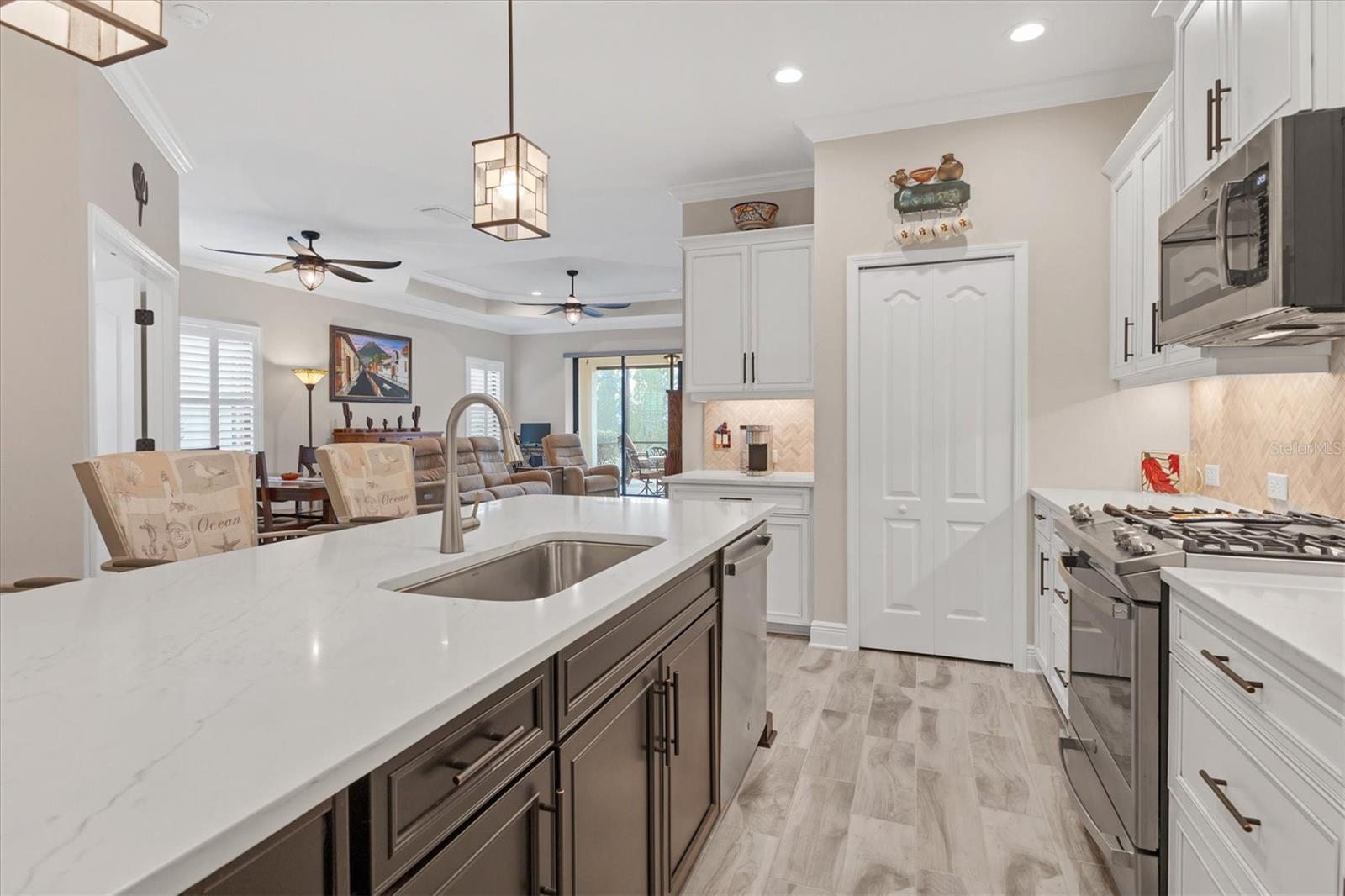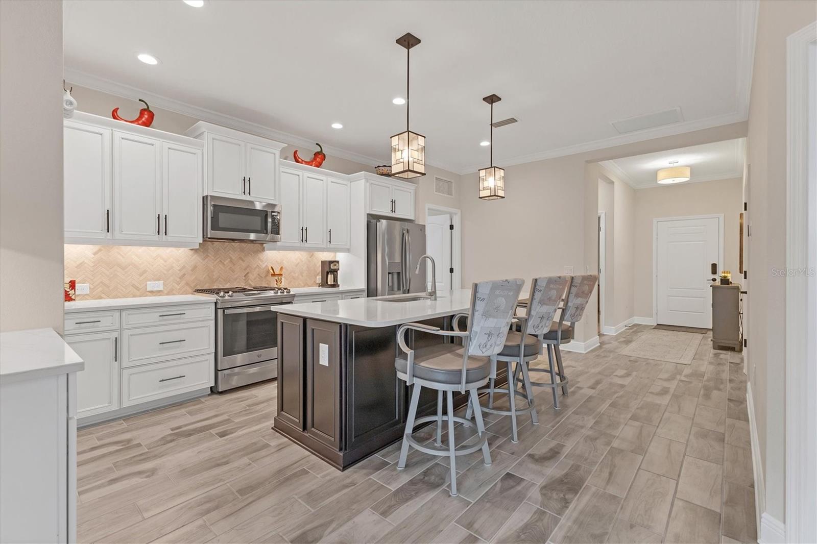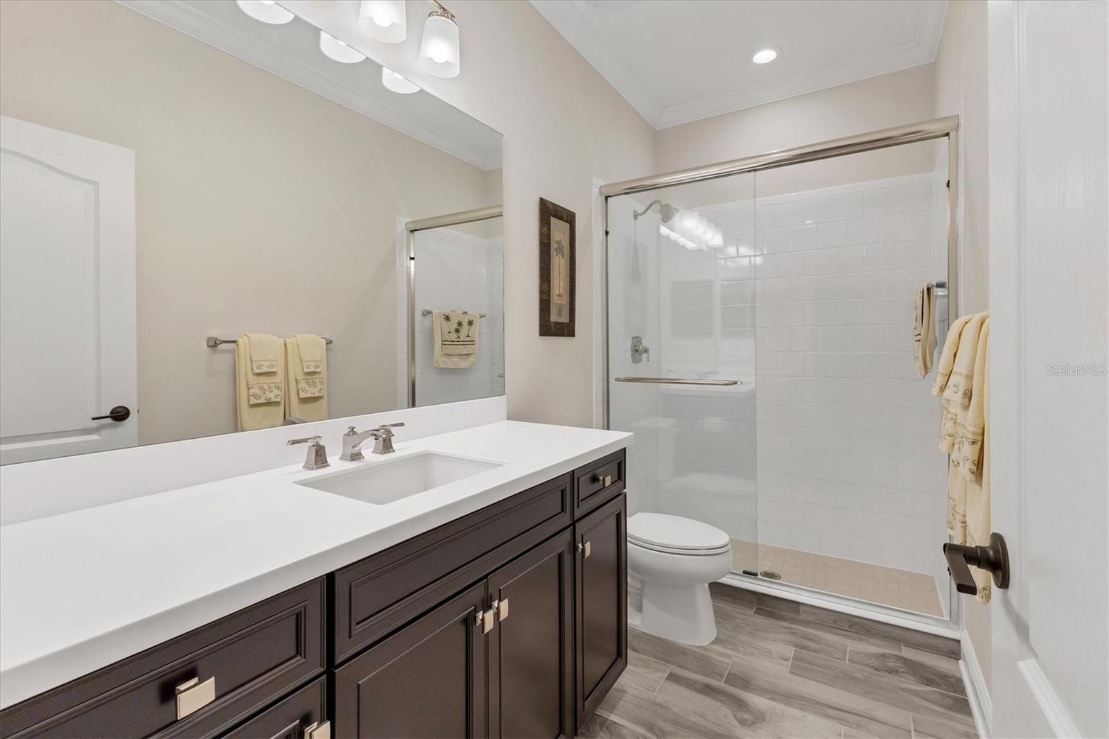 Paradise found! This is the home you've been searching for! This stunning three-bedroom plus den, two-bath Sandcastle floor plan villa in desirable Boca Royale is move-in ready with no need to wait for new construction. On a serene dead-end street, this property boasts an ultra-private lot. As you approach, you’ll find a welcoming recessed front porch leading to a secluded screened entryway. Step inside to a spacious foyer that provides a lovely view of your private backyard. The well-appointed kitchen features upgraded white cabinetry and a gas stove, ideal for entertaining with its open concept layout flowing into the dining area and great room. Both guest bedrooms are at the front of the home, while a generous office/den with double-door entry sits conveniently next to the dining space. The laundry room is discreetly behind the kitchen, and the primary bedroom and bath are at the back for maximum privacy. The primary bath features dual vanities, a large walk-in shower, a private water closet and an expansive walk-in closet. This home is enhanced with crown molding throughout, plantation shutters on every window, accordion hurricane shutters for storm protection and an electric roll-down hurricane curtain on the lanai. For added peace of mind, a whole-house generator is also included. Boca Royale is a gated community with optional golf and tennis memberships, conveniently near beautiful beaches, charming shops and restaurants of Dearborn Street, and just a short drive to historic downtown Venice and more picturesque beaches.