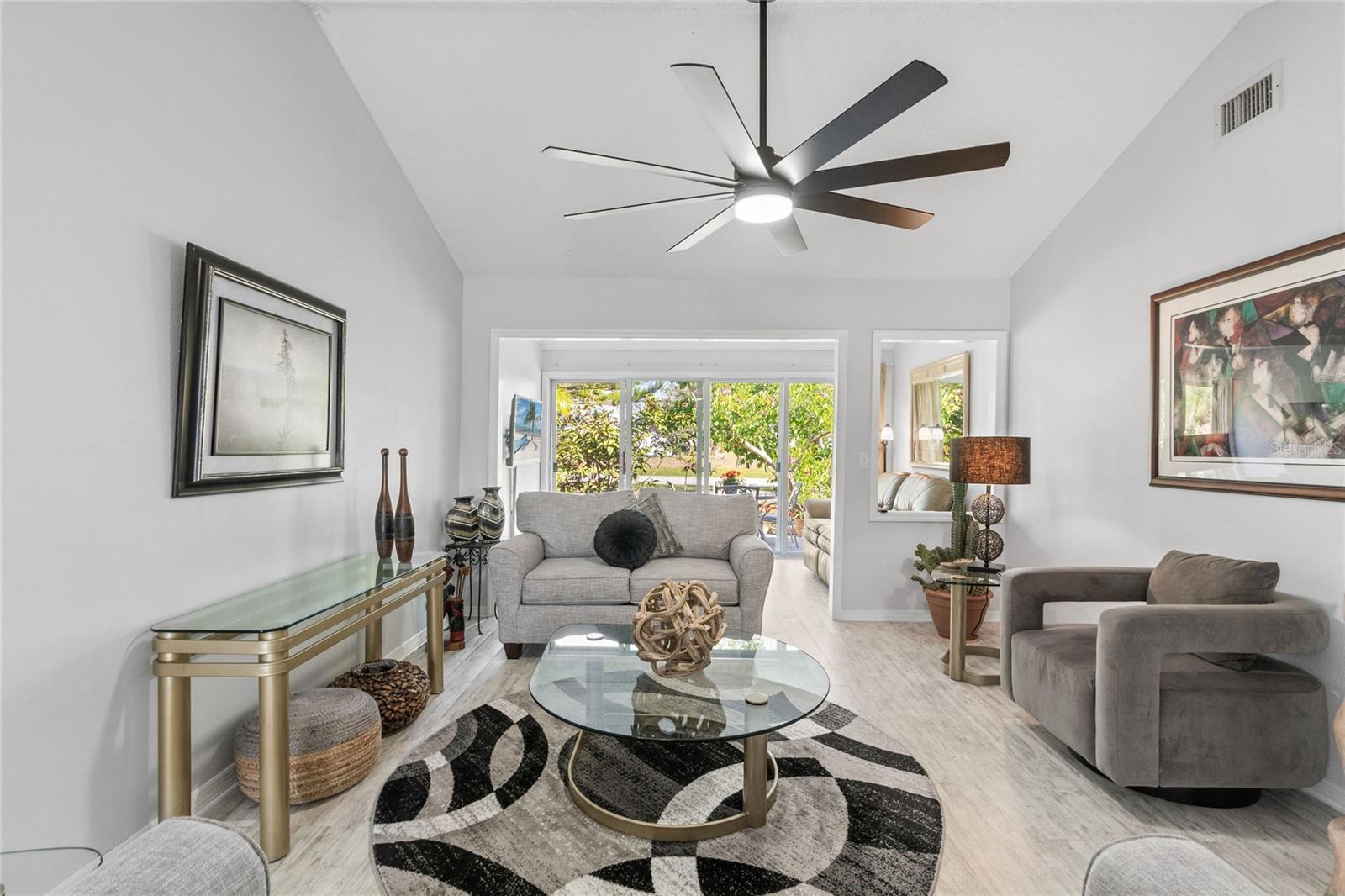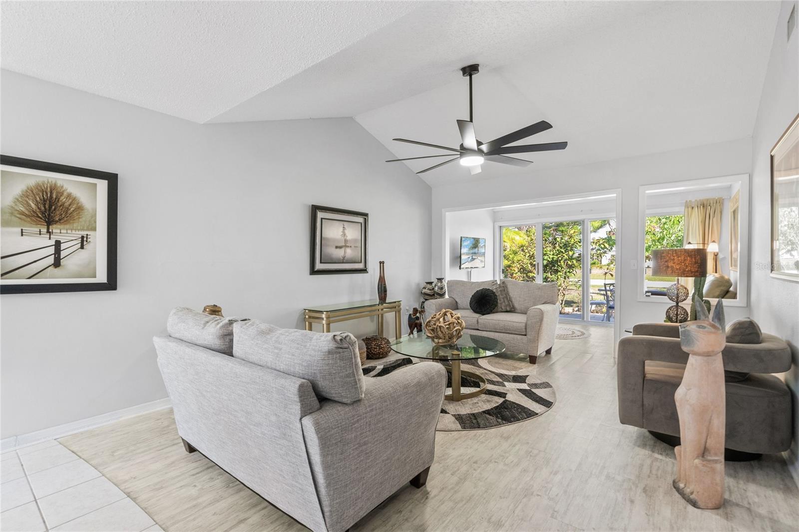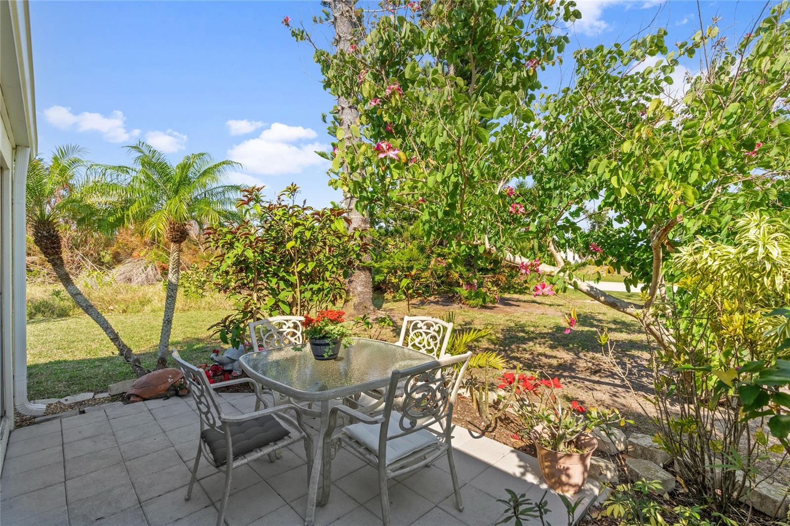 Stunning Maintenance-Free 55+ Condo with Serene Views and Modern Comforts! FLOOD INSURANCE NOT REQUIRED! Casual elegance meets nature in this BEAUTIFULLY FURNISHED end-unit condo with 2 bedrooms and 2 bathrooms. A perfect sanctuary for relaxation and rejuvenation, this PRIVATE and coveted location within the community is just seconds away from the Wildflower Preserve. Inside find an updated open-concept living/dining area with cathedral ceiling and sightlines to the large back wall of sliders that let in a bounty of light. The large dining room window is exclusive to end units. Attractive vinyl plank flooring and premium lighting and fans enhance the modern aesthetic. A standout feature is the 4-season Florida room, which has been enclosed and modified for seamless step-free entry. A galley kitchen provides all the appliances and countertop space you’ll need to prep and cook meals. The spacious primary suite includes an ensuite bathroom with a walk-in shower and a split bedroom plan ensures privacy for all. The patio backs to a lovely blooming orchid tree and is an ideal spot for outdoor entertaining or simply soaking in the tranquil surroundings. Plenty of storage space in the hall closet, interior laundry room and accessible attic space. The dedicated carport and storage shed provide protection for your vehicle and sports gear. The plumbing has already been re-piped overhead, new breaker panel installed in 2024 and a new roof in 2023. The Village at Wildflower community has a heated pool and is located close to Gulf beaches, historic Boca Grande, restaurants, grocery stores, and essential medical services. For those who love outdoor activities, you'll find hiking trails right next door and several golf courses nearby. Enjoy easy access to parks, farmers markets, festivals, and live music on Dearborn Street. Whether you're looking for a permanent residence or a seasonal getaway, this condo offers everything you need for an active lifestyle combined with peaceful living. Schedule your private showing today! (Some décor items do not convey, see list in home).
