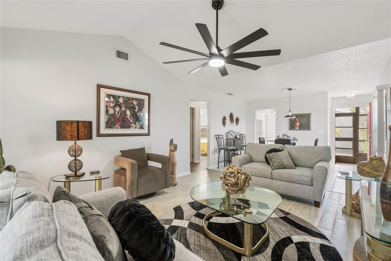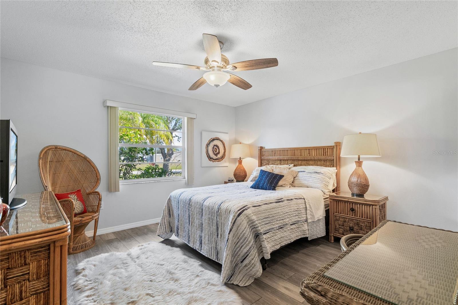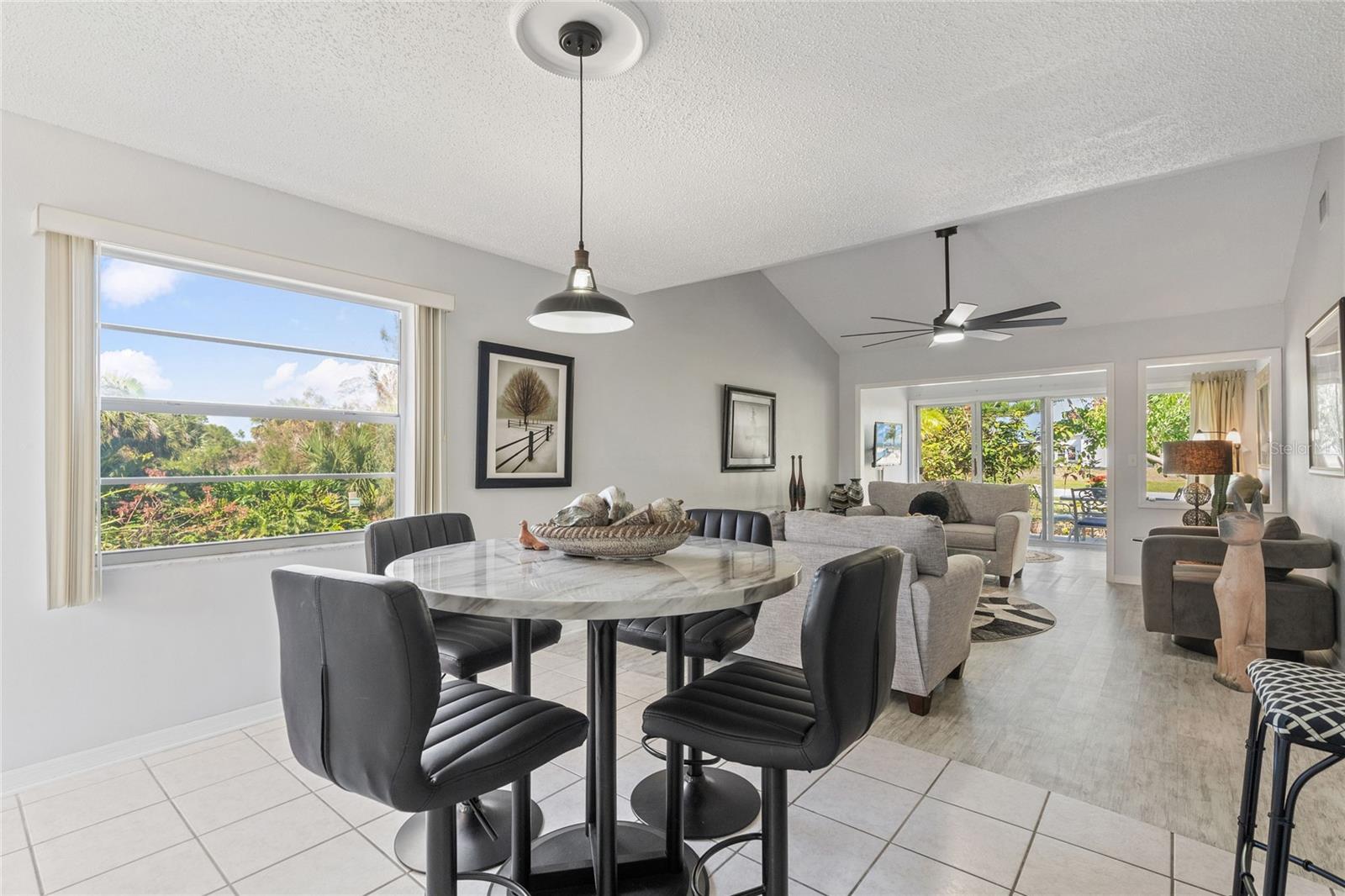 Stunning Maintenance-Free 55+ Condo with Serene Views and Modern Comforts! FLOOD INSURANCE NOT REQUIRED! Casual elegance meets nature in this BEAUTIFULLY FURNISHED end-unit condo with 2 bedrooms and 2 bathrooms. A perfect sanctuary for relaxation and rejuvenation, this PRIVATE and coveted location within the community is just seconds away from the Wildflower Preserve. Inside find an updated open-concept living/dining area with cathedral ceiling and sightlines to the large back wall of sliders that let in a bounty of light. The large dining room window is exclusive to end units. Attractive vinyl plank flooring and premium lighting and fans enhance the modern aesthetic. A standout feature is the 4-season Florida room, which has been enclosed and modified for seamless step-free entry. A galley kitchen provides all the appliances and countertop space you’ll need to prep and cook meals. The spacious primary suite includes an ensuite bathroom with a walk-in shower and a split bedroom plan ensures privacy for all. The patio backs to a lovely blooming orchid tree and is an ideal spot for outdoor entertaining or simply soaking in the tranquil surroundings. Plenty of storage space in the hall closet, interior laundry room and accessible attic space. The dedicated carport and storage shed provide protection for your vehicle and sports gear. The plumbing has already been re-piped overhead, new breaker panel installed in 2024 and a new roof in 2023. The Village at Wildflower community has a heated pool and is located close to Gulf beaches, historic Boca Grande, restaurants, grocery stores, and essential medical services. For those who love outdoor activities, you'll find hiking trails right next door and several golf courses nearby. Enjoy easy access to parks, farmers markets, festivals, and live music on Dearborn Street. Whether you're looking for a permanent residence or a seasonal getaway, this condo offers everything you need for an active lifestyle combined with peaceful living. Schedule your private showing today! (Some décor items do not convey, see list in home).