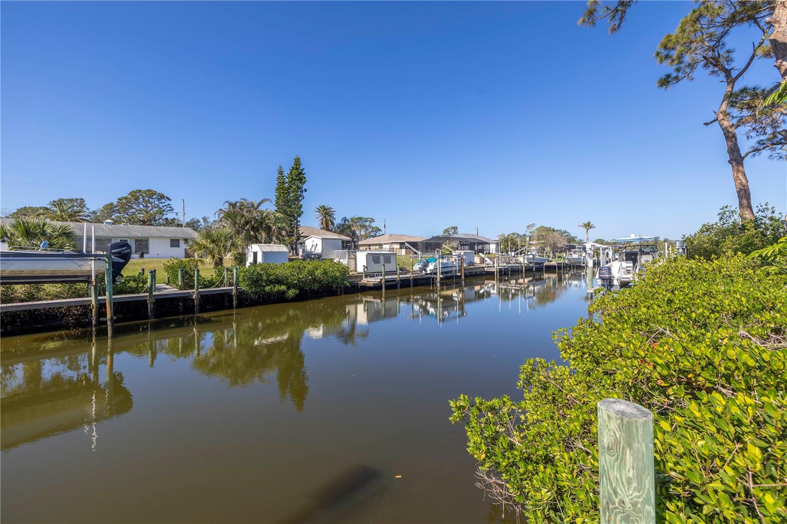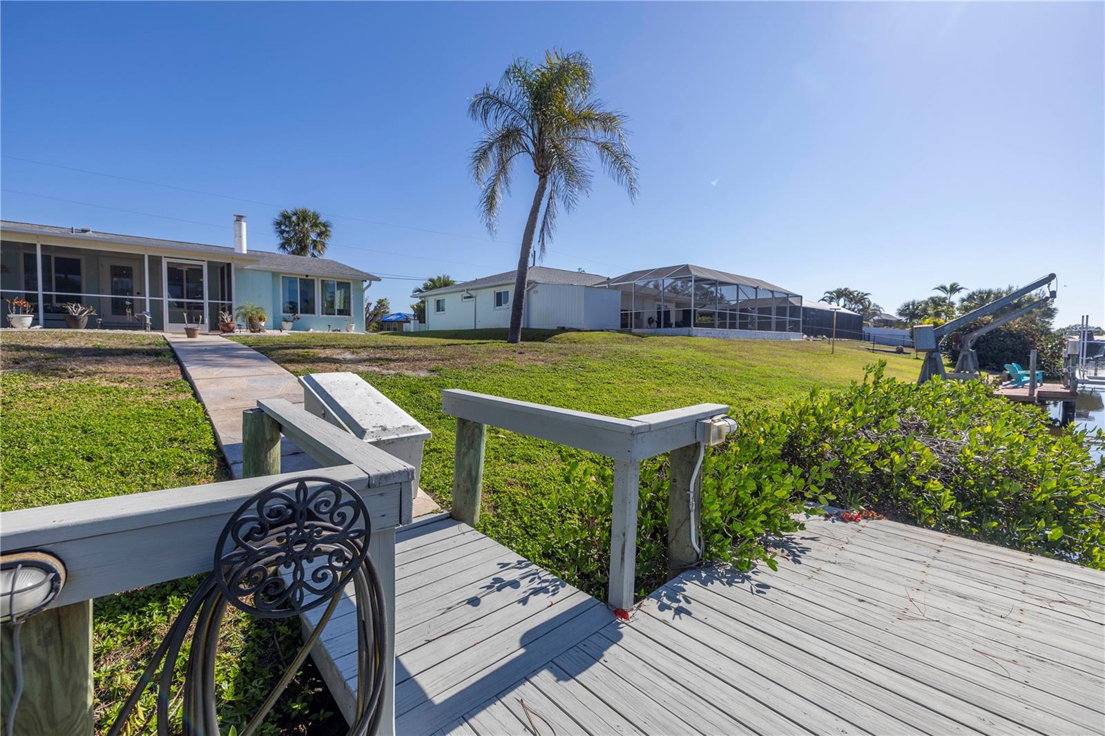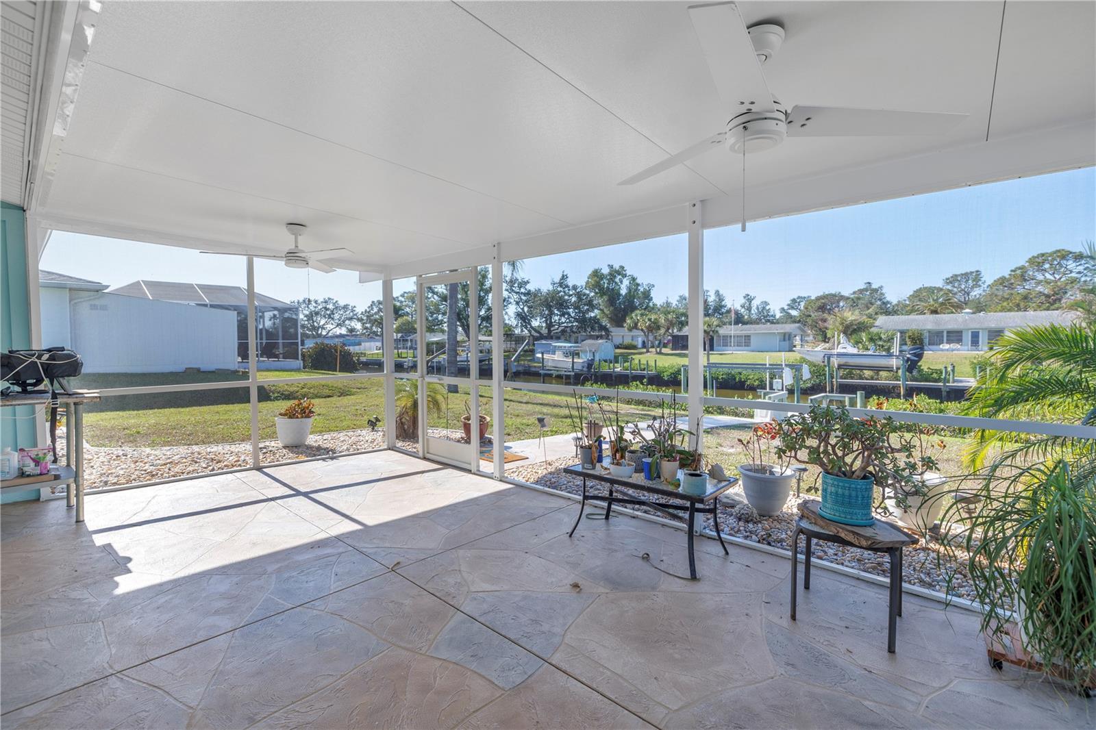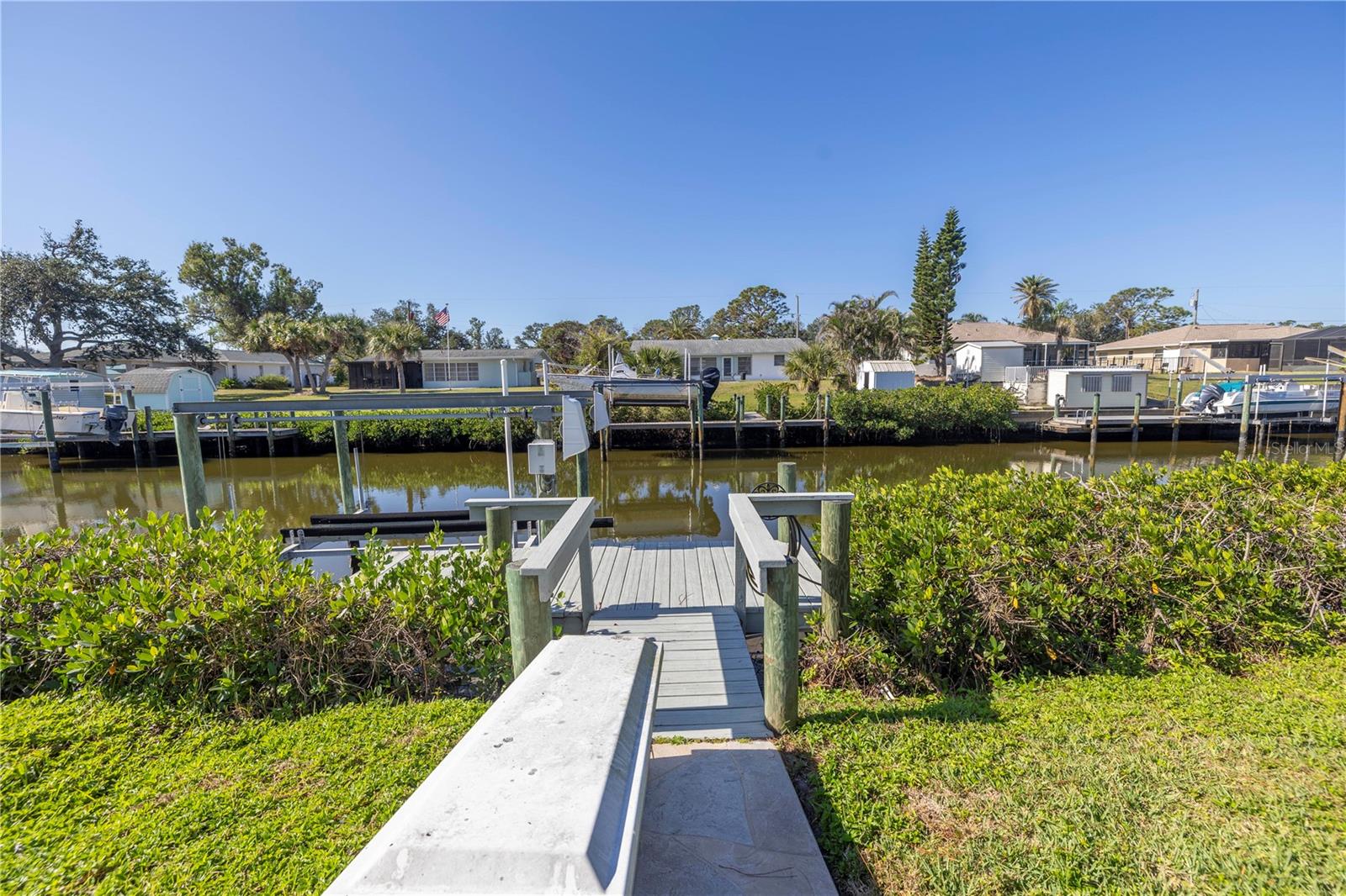 One or more photo(s) has been virtually staged. Nestled along the tranquil Overbrook Canal, this completely renovated and move-in ready 2-bedroom, 2-bath home offers the perfect blend of modern comfort and waterfront convenience. With direct access to Forked Creek and the Intracoastal Waterway, and a location just minutes from Stump Pass and the Venice Inlet, this is a true boater’s paradise! This home boasts 75 feet of water frontage on an 80-foot-wide canal with a depth of 4.5 feet. A private 17' x 6' dock, equipped with water, electricity, and a 10,000-lb lift, makes it effortless to enjoy life on the water. Impact-resistant windows and doors provide peace of mind, and this home has had no hurricane damage from Debbie, Helene, or Milton. Recent upgrades include a new roof and soffits (2015), a new A/C system (2018), and a water heater replacement (2020). Inside, every detail has been thoughtfully updated and freshly painted, creating a bright and inviting atmosphere. The spacious living area features an operational wood-burning brick fireplace, adding character and warmth. The screened-in back patio with stamped concrete flooring seamlessly extends to the driveway and walkway leading to the canal, offering a perfect outdoor retreat. A recent appraisal (8/2/24) and Four Point & Wind Mitigation Inspections (8/1/24) are available, making this waterfront home that’s ready for you to move in and start enjoying. Don’t miss this rare opportunity—schedule your private showing today!