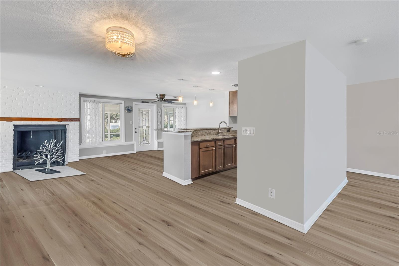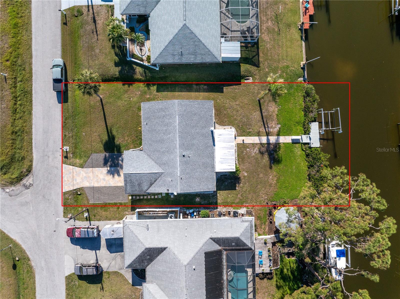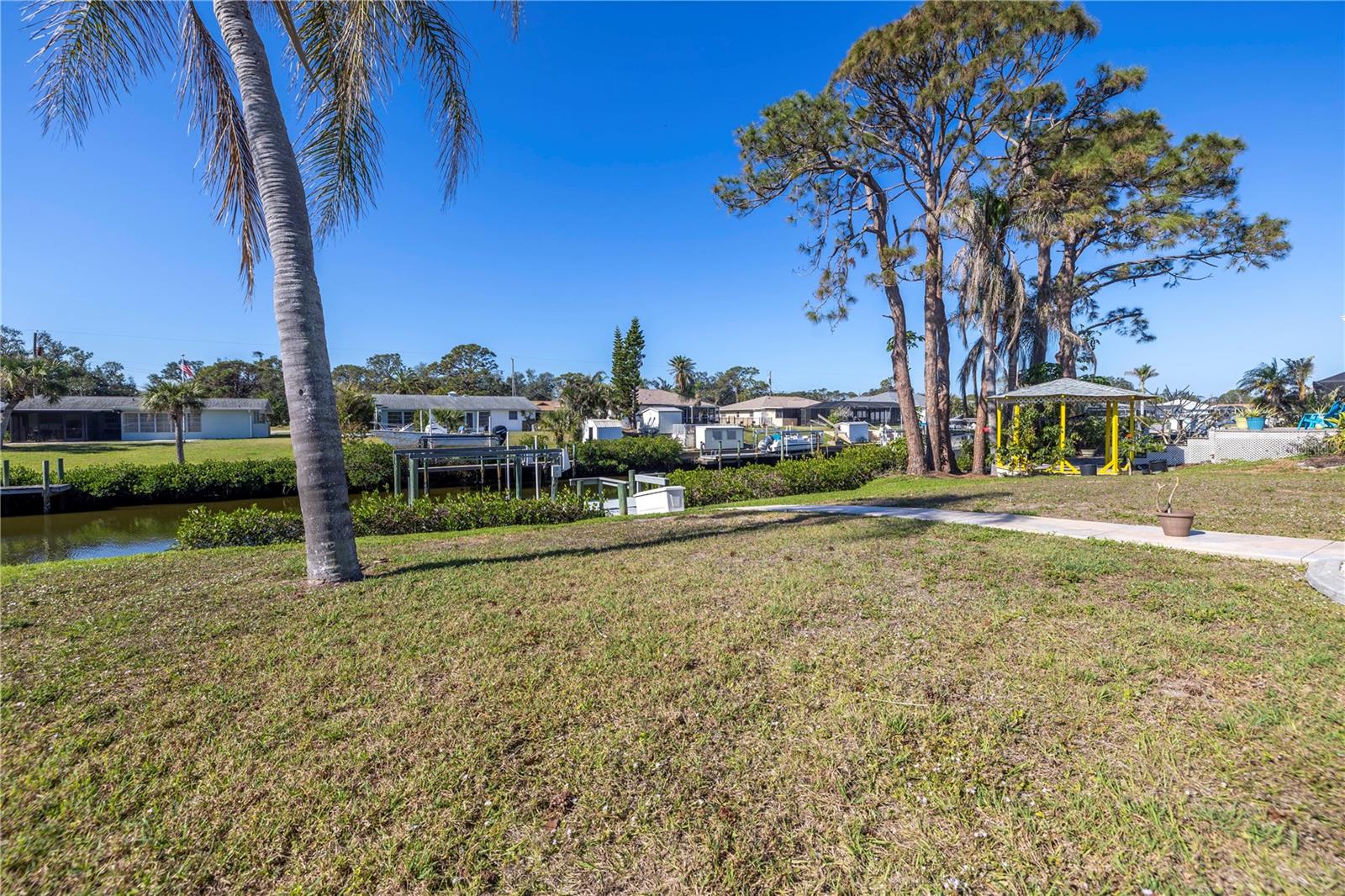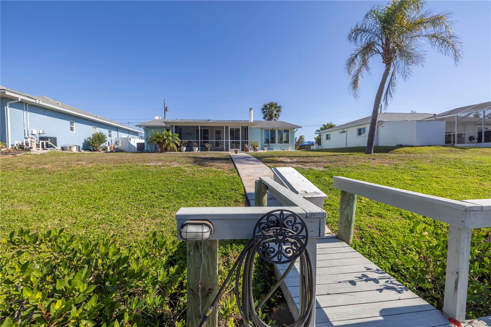 One or more photo(s) has been virtually staged. Nestled along the tranquil Overbrook Canal, this completely renovated and move-in ready 2-bedroom, 2-bath home offers the perfect blend of modern comfort and waterfront convenience. With direct access to Forked Creek and the Intracoastal Waterway, and a location just minutes from Stump Pass and the Venice Inlet, this is a true boater’s paradise! This home boasts 75 feet of water frontage on an 80-foot-wide canal with a depth of 4.5 feet. A private 17' x 6' dock, equipped with water, electricity, and a 10,000-lb lift, makes it effortless to enjoy life on the water. Impact-resistant windows and doors provide peace of mind, and this home has had no hurricane damage from Debbie, Helene, or Milton. Recent upgrades include a new roof and soffits (2015), a new A/C system (2018), and a water heater replacement (2020). Inside, every detail has been thoughtfully updated and freshly painted, creating a bright and inviting atmosphere. The spacious living area features an operational wood-burning brick fireplace, adding character and warmth. The screened-in back patio with stamped concrete flooring seamlessly extends to the driveway and walkway leading to the canal, offering a perfect outdoor retreat. A recent appraisal (8/2/24) and Four Point & Wind Mitigation Inspections (8/1/24) are available, making this waterfront home that’s ready for you to move in and start enjoying. Don’t miss this rare opportunity—schedule your private showing today!