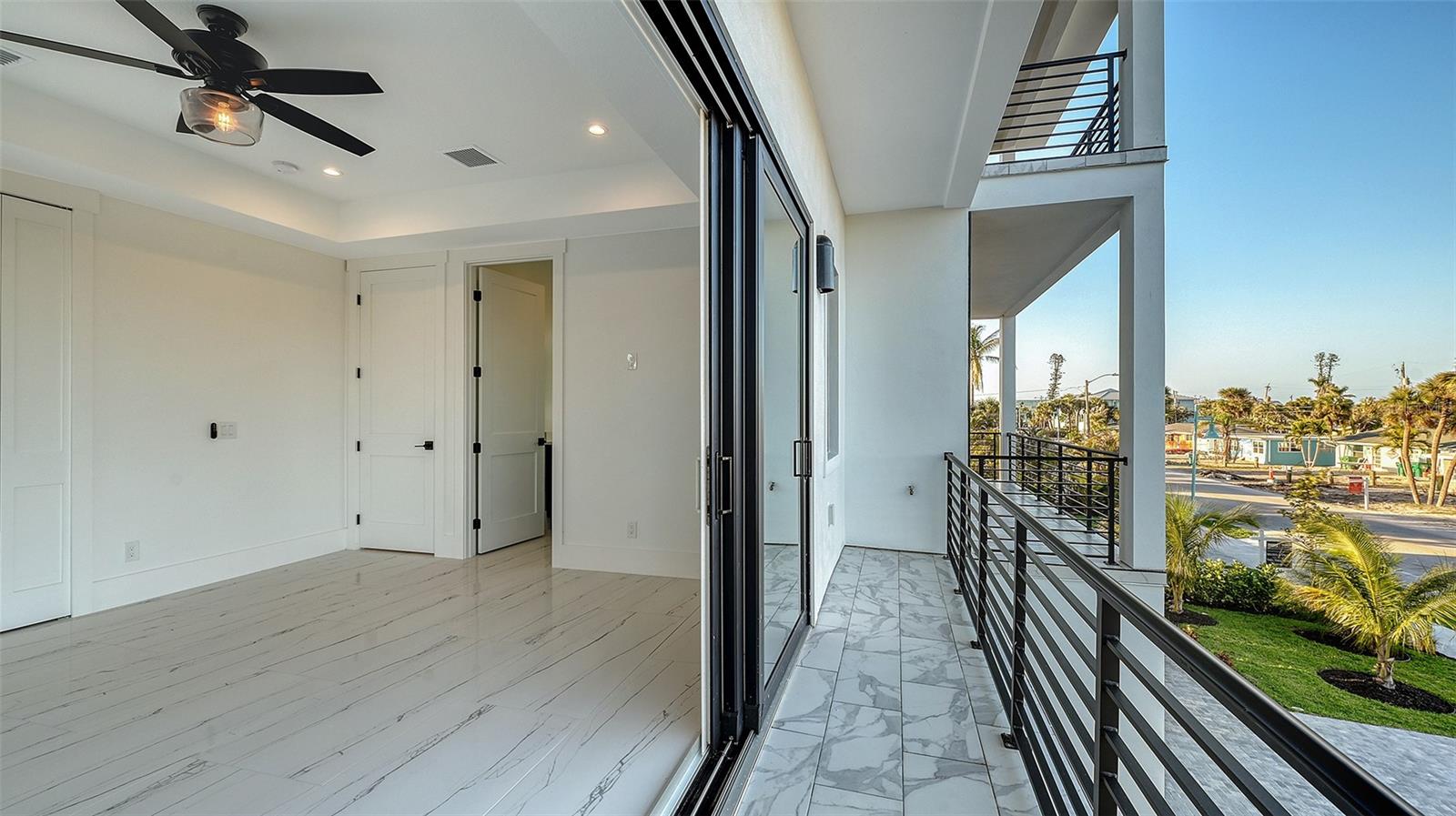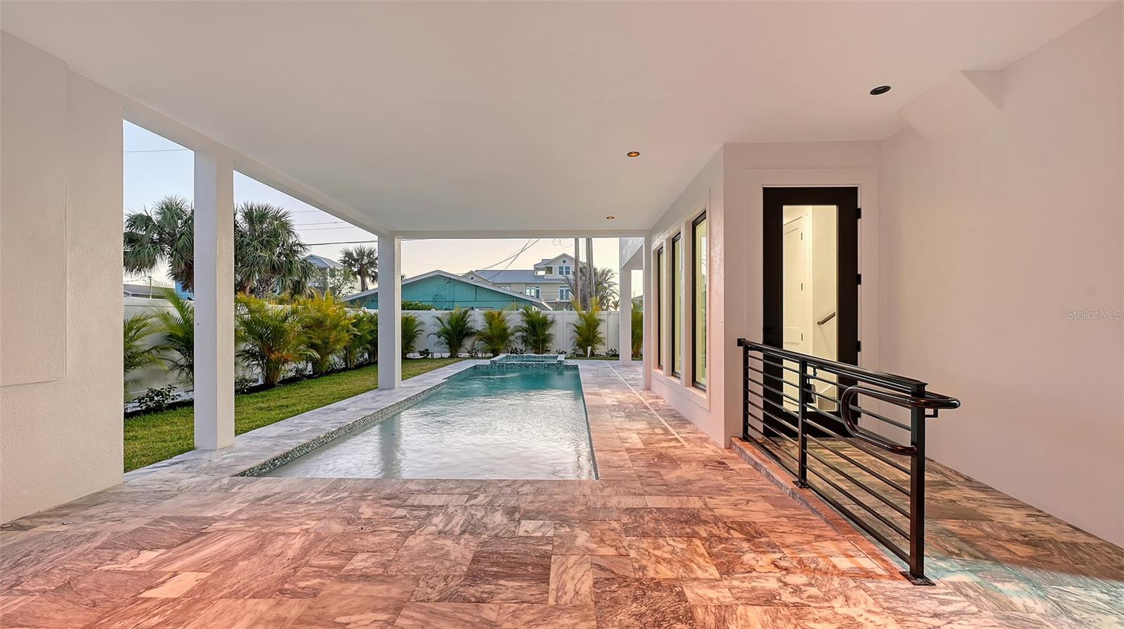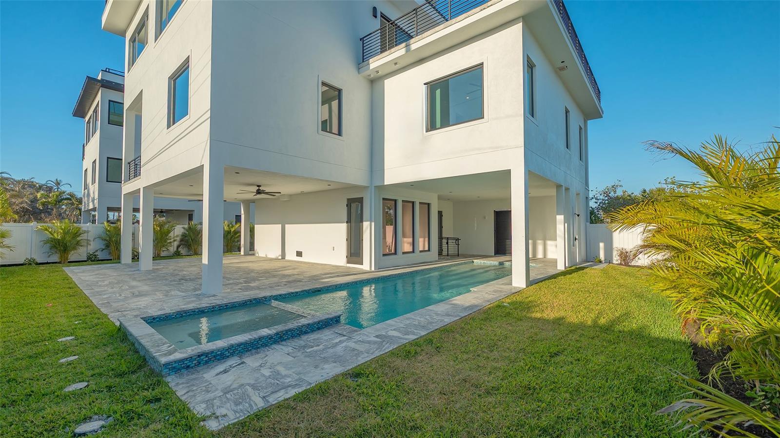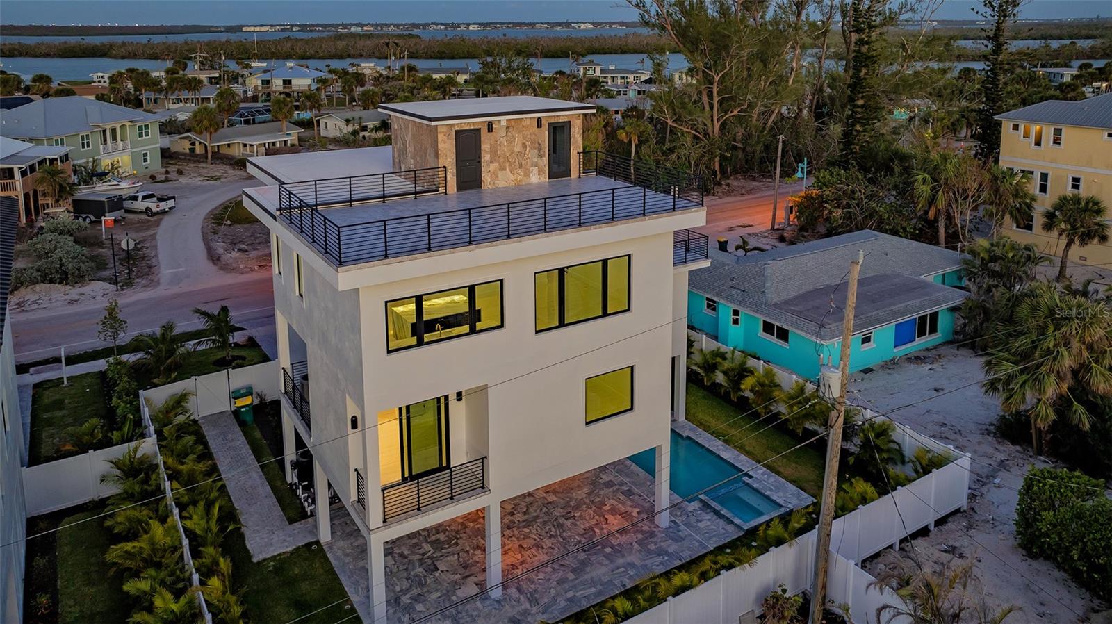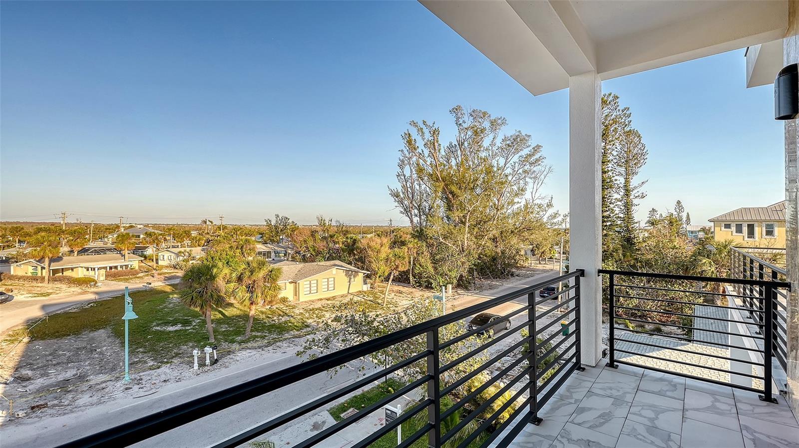Introducing a rare and remarkable offering on prestigious Manasota Key—an architecturally elevated, newly completed coastal residence that seamlessly blends sophisticated design with enduring quality. This four-story, all-concrete-block home rises to an impressive 16-foot baseline elevation and offers captivating Gulf views, two deeded beach easements just moments away, and an elevated lifestyle that’s as functional as it is refined. A paver-lined drive and West Indies-inspired façade welcome you to a low-maintenance, beautifully landscaped property that was thoughtfully designed for effortless island living. The breezeway guides you to a private, fully fenced outdoor sanctuary featuring a heated saltwater pool and spa framed by sleek travertine pavers, shaded lounges, and an expansive covered patio with cooling fans—creating a versatile retreat for all seasons. The oversized two-car garage, finished with epoxy floors and ample storage, includes elevator access to every level of the home. Inside, the elevated first level hosts five generous bedrooms, including a serene primary suite with a private balcony and spa-style bath adorned with LED mirrors, a walk-in shower, and matte gold fixtures. A second ensuite bedroom also enjoys a private balcony, while the remaining bedrooms offer peaceful Gulf-facing vistas. All four and a half baths are finished with soft-close pine cabinetry, premium designer tile, and hand-selected surfaces that reflect understated elegance. Upstairs, panoramic views unfold from the open-concept living and entertaining level, where Gulf and Lemon Bay vistas serve as a striking backdrop. The chef’s kitchen is anchored by Café appliances, marble countertops, custom jellyfish-inlaid pendant lights, and a generous island for gathering. A built-in wet bar with wine fridge enhances the space, while sliding glass doors extend the living area to a deep, west-facing balcony—your front-row seat to nightly sunsets and the sounds of the sea. A private secondary primary suite completes this level, offering its own east-facing balcony, walk-in closet, and spa-inspired bath with dual vanities and coastal-chic finishes. The rooftop terrace crowns the home, offering an awe-inspiring 360-degree panorama stretching from the Gulf of Mexico to Lemon Bay—an unrivaled space for stargazing, sunset toasts, and intimate gatherings. Crafted for both resilience and beauty, this home features hurricane-impact windows and sliders, soaring ceilings, modern lighting, porcelain tile flooring, and solid hickory staircases. With public water and sewer, no HOA or CDD fees, and eligibility for nightly rentals, this property delivers a rare combination of low-cost ownership and exceptional income potential. Perfectly positioned in the heart of South Manasota Key, you’re just minutes from Englewood Beach—accessible via two exclusive deeded easements—and surrounded by an array of waterfront dining and entertainment, including The Waverly, Lock ‘N Key, and Farlow’s on the Water. Nearby marinas provide effortless boating access to the Intracoastal and open Gulf, while championship golf awaits at Boca Royale and Lemon Bay Golf Club. Whether envisioned as a luxurious personal residence, a beachside escape, or a high-yield investment, this extraordinary home offers an unparalleled opportunity to enjoy the essence of coastal living—rare access, timeless design, and enduring value.