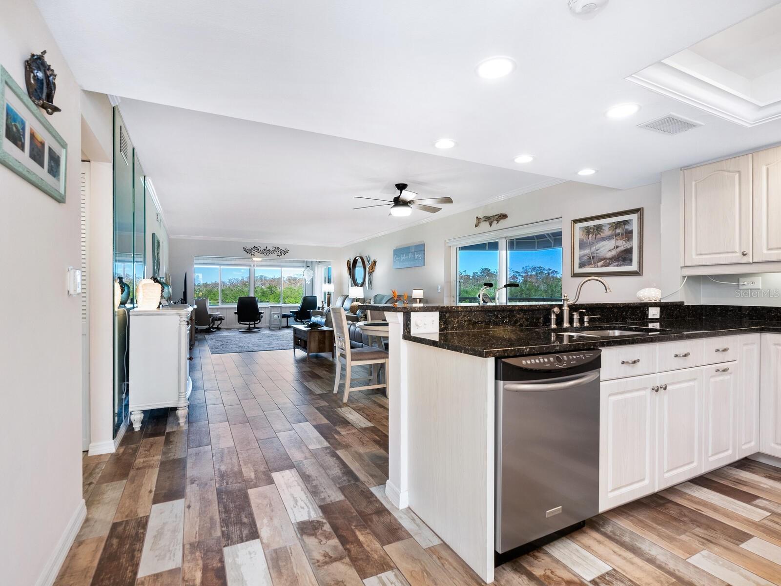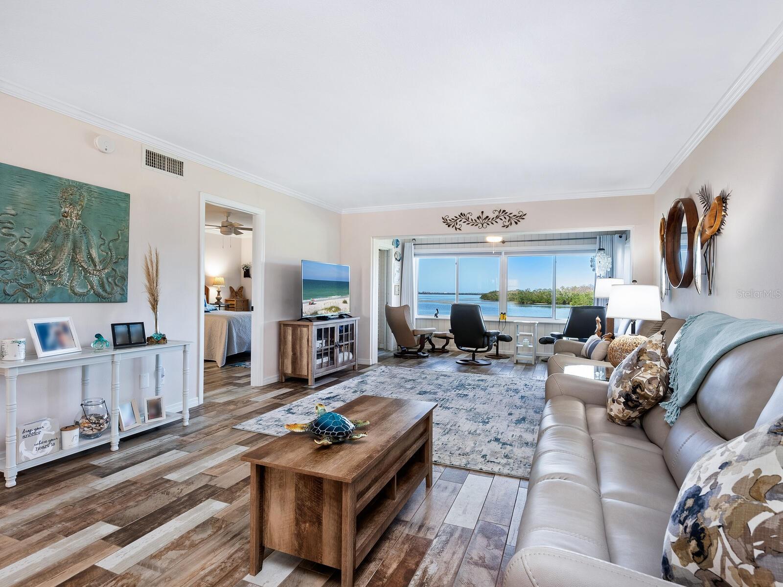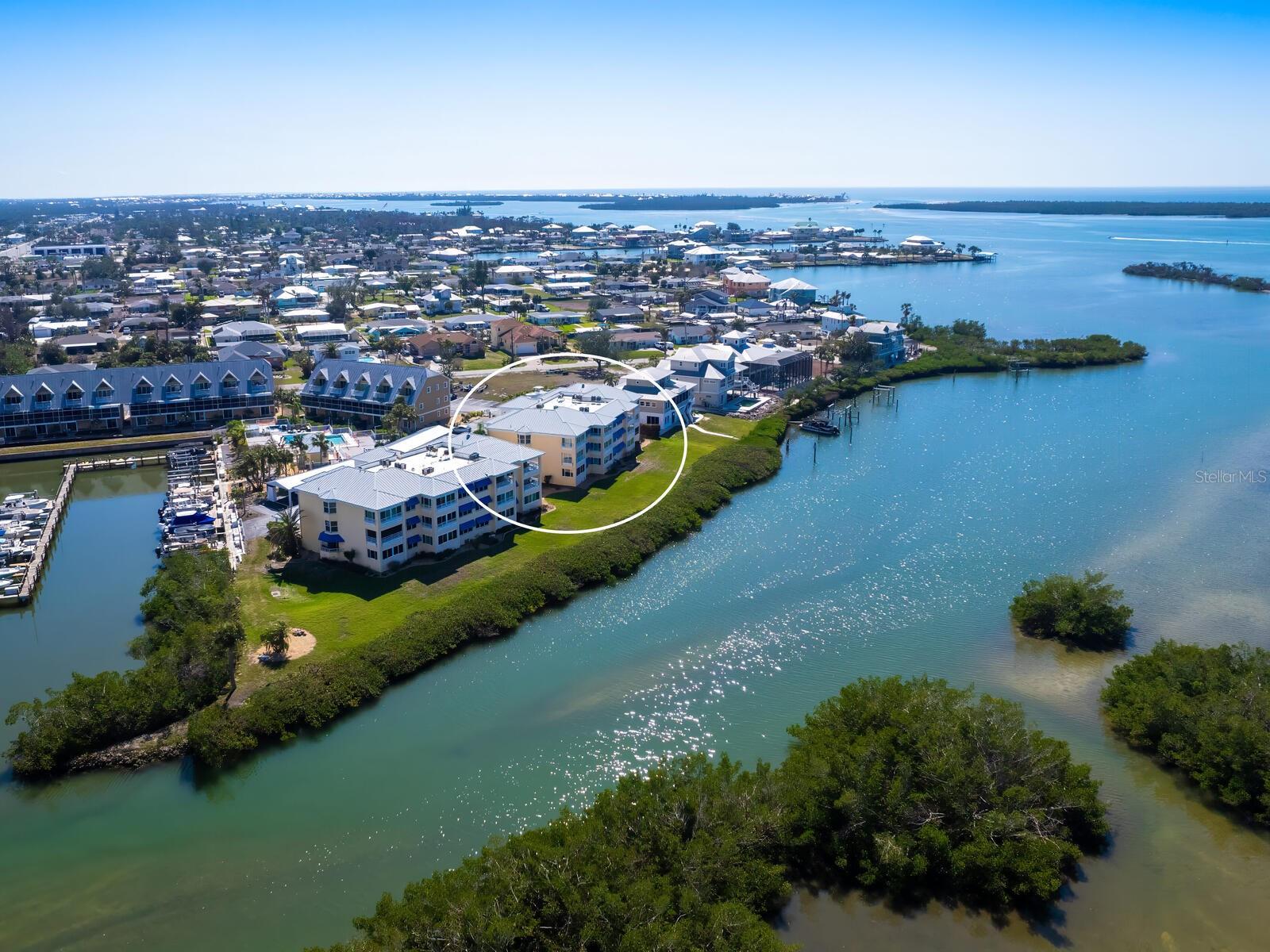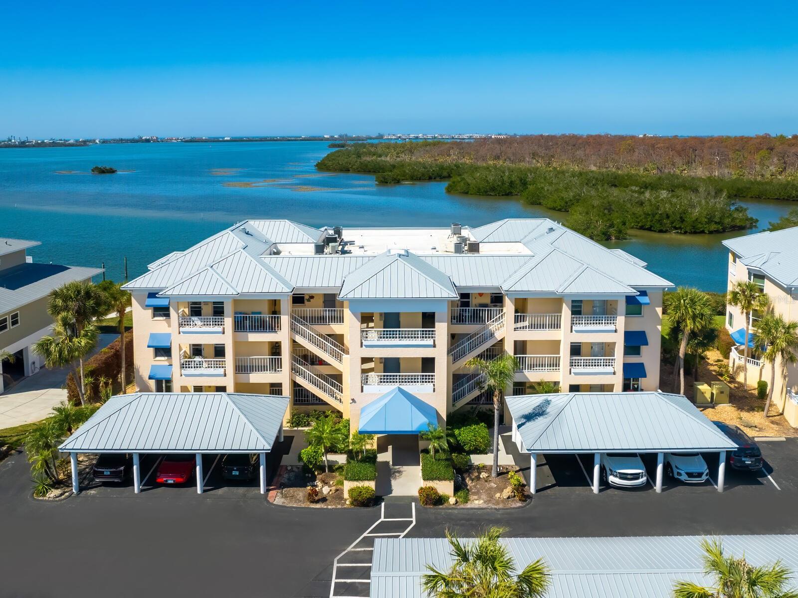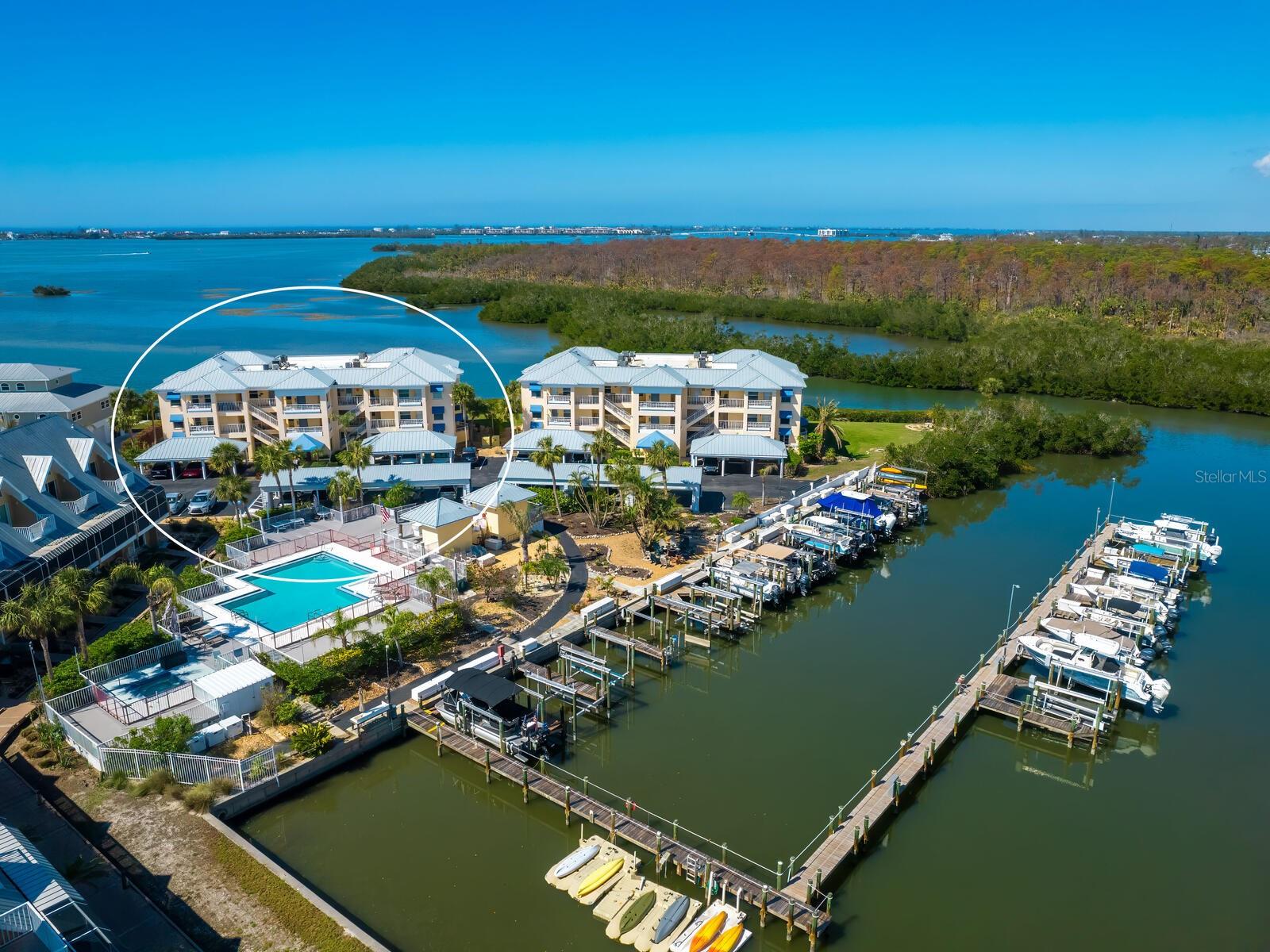 Price Reduction! Assigned lift/dock space included in asking price on this updated unit located in a Boater's paradise, with private Marina, million dollar + views, with no bridges to the bay, ICW or Gulf! No Dock Waiting List For Your Or Your Boat!!! No damage to the unit during the 2024 storm season! Milestone and reserve studies complete with no deficiencies, repairs or assessments! Pet friendly building! First floor unit with adjoining covered parking space! Serendipity. A once-in-a-lifetime find, beyond compare, awaits you. Few condominium complexes embody the laid-back ambiance of Gulf Coast living as it is meant to be lived. This exquisite, unique, first-floor end unit embraces and epitomizes it. As only one of four ground floor end units in the community, it is one of the rarest and sought-after units available in the Landings On Lemon Bay. Completely modernized inside and in building C, closer to ICW, it features 180-degree bay, preserve and Manasota Key views, extra windows and additional side balcony with all hurricane-impact glass allowing for more natural light, and peace of mind. Additionally, the unit has its own walkway up to a private entrance and front porch, adding more privacy and outside space for your enjoyment. Your covered parking is conveniently right behind your front entrance way, and your assigned boat lift slip #5, is close by in the first row of the community marina! It is rare to find a community in this area of Florida with a private marina and assigned dockage/slip/lift included with the unit and in the monthly dues (not in addition to) at this price point in the tri-county area. Inside the unit, you will find an updated kitchen and baths, easy-care tile flooring throughout, and a first floor only end-unit exclusive side porch with room for two chairs and a table. Your enclosed and under air back porch offers expansive views from which to marvel at native Florida wildlife including manatees, fish, dolphins, Ospreys, Roseate spoonbills, bald eagles, pelicans and maybe even an occasional flamingo. Sunsets are an evening ritual not to be missed, that add to the tranquil end of your day. This whole package creates a picture-perfect backdrop for serene relaxation and living. Join a desirable lifestyle that can only be had at the Landings on Lemon Bay in Englewood. There is nothing quite like this ultimate and unparalleled boater's and fisherman's paradise on Florida's Gulf Coast.